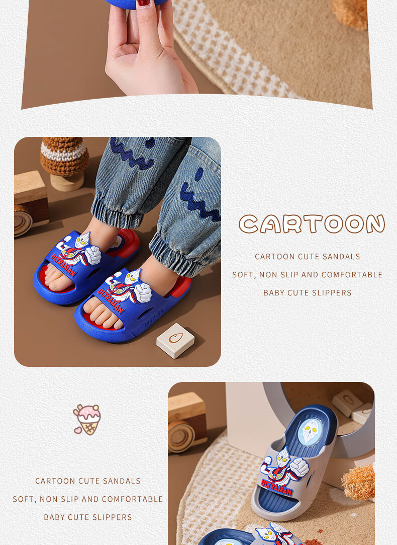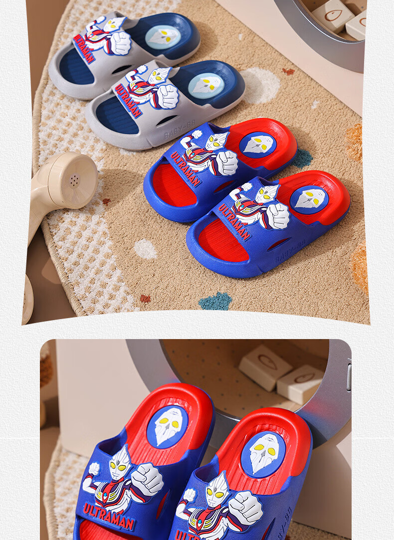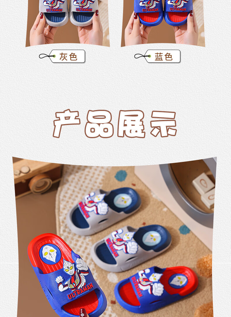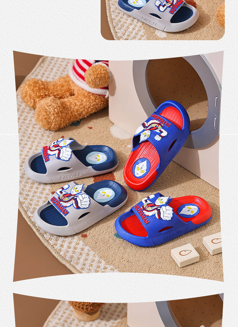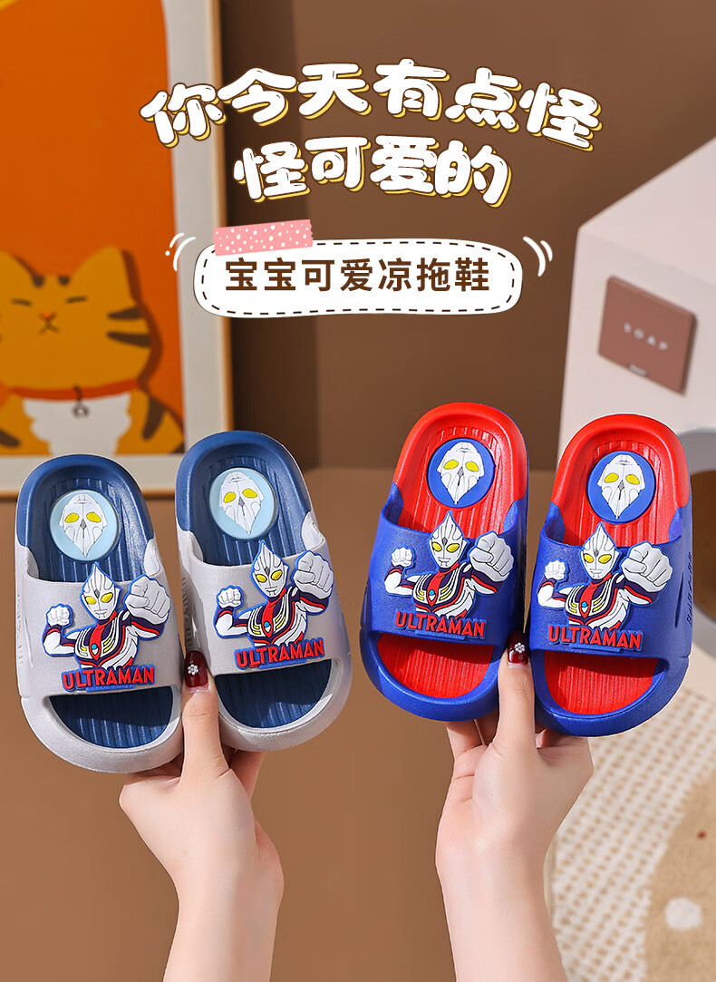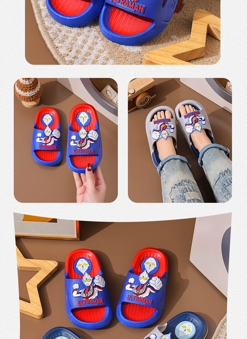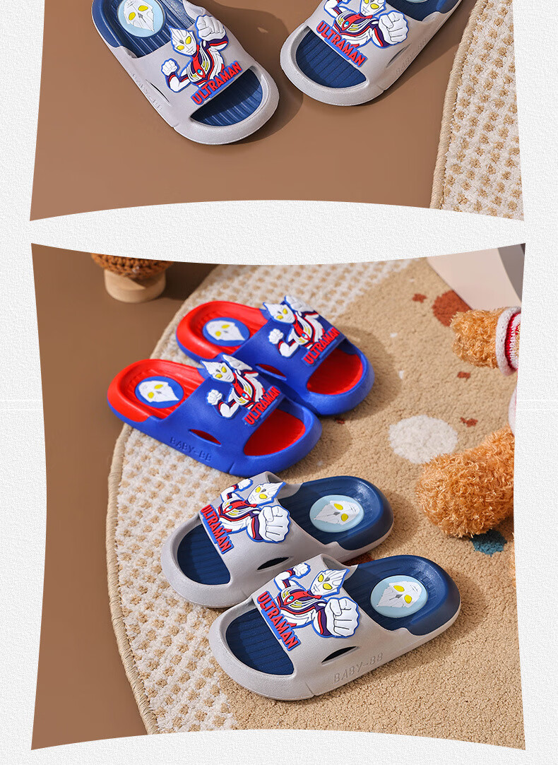 Ultraman Slippers for Children and Boys Summer 2025 New Style Blue Size 32 33 Inner Length 19.5cm