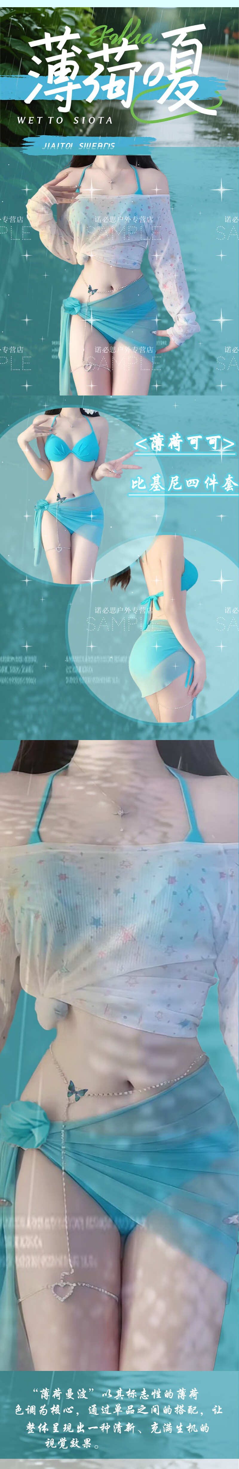 Bai Qixin swimsuit women's hot spring bikini high-end atmosphere four-piece sexy split beach vacation swimsuit mint cocoa bikini four-piece set 85-115Jin Jin equals 0.5 kg