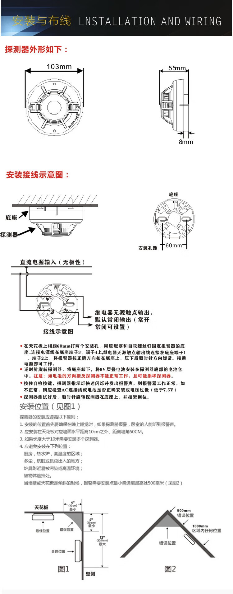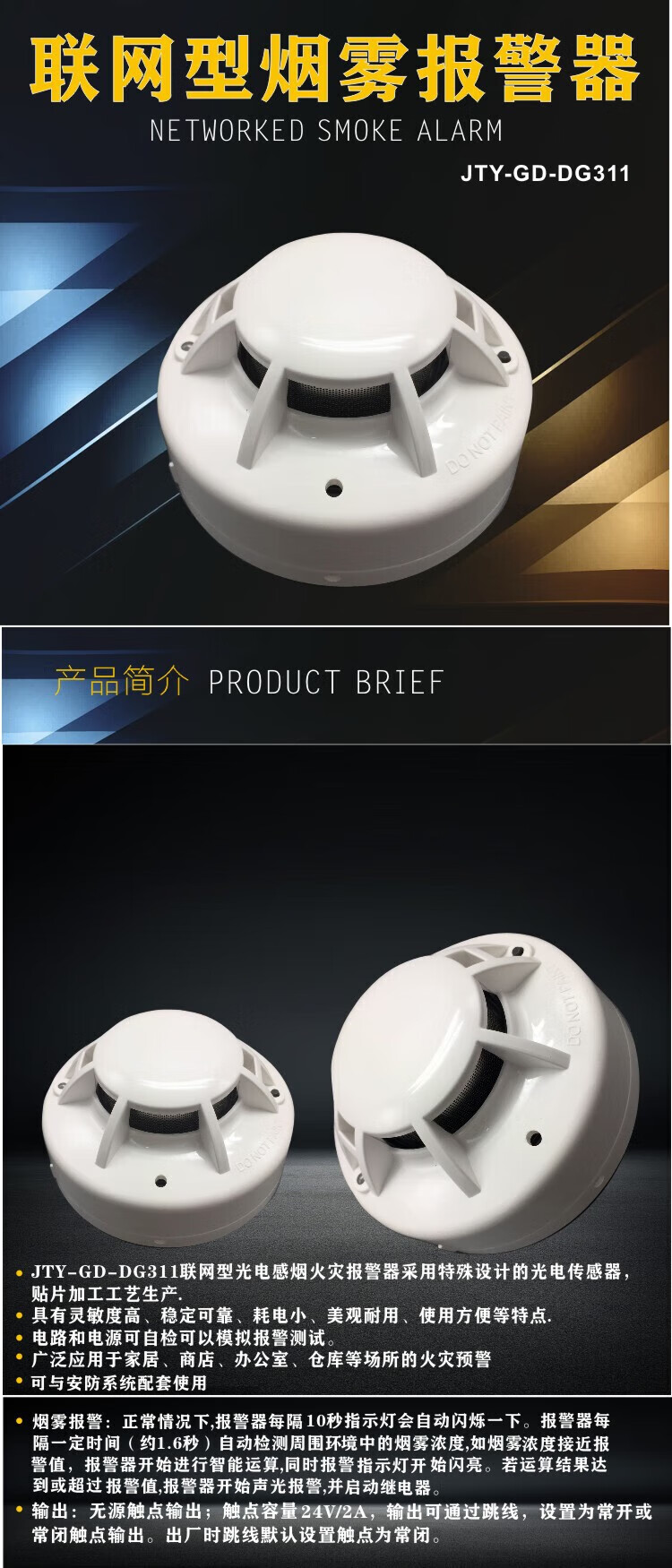 JTY-GD-DG311 smoke alarm switch smoke sensor switch smoke sensor DC24V relay passive contact signal output