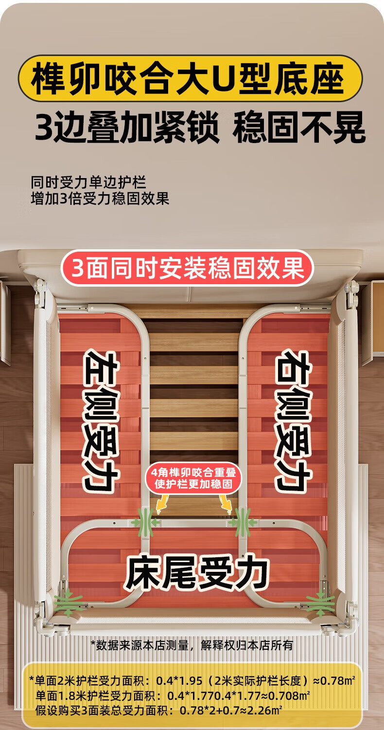 Beeio bed fence baby bed guardrail baby bedside anti-fall bed bezel bed fence safety guardrail no punching spliced rainbow cloud 1.8m U-shaped base no punching single-sided installation