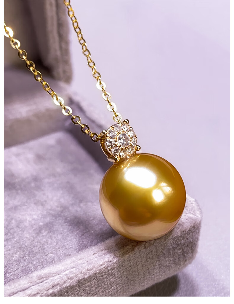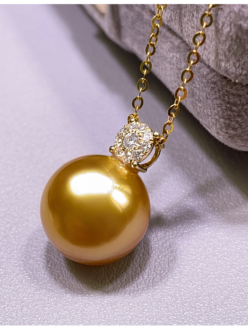 Moh's Jewelry South Sea Pearl Nine-nine Return to One Pendant Gold Pearl Seawater Pearl Neck Ornament 18k Inlaid Temperament Economic Style 11-12mm