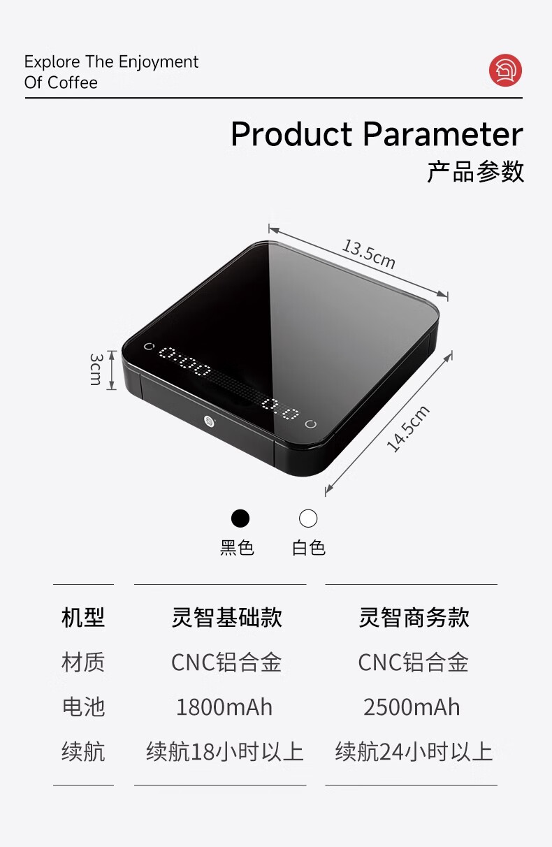 Hero Lingzhi coffee electronic scale hand brewing scale home kitchen smart scale rechargeable timer espresso weighing Lingzhi 3.0 white-1800 mAh physical switch