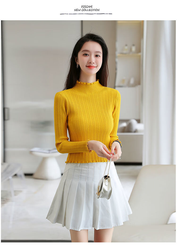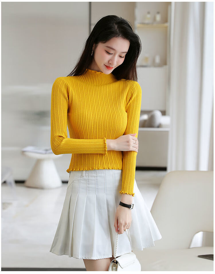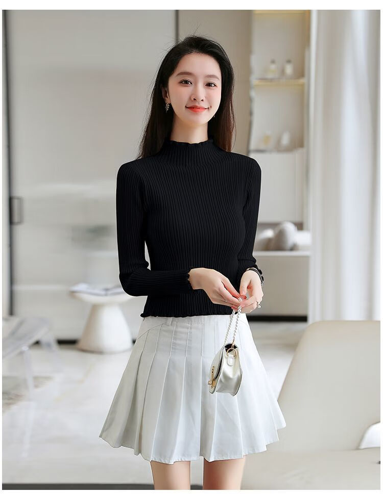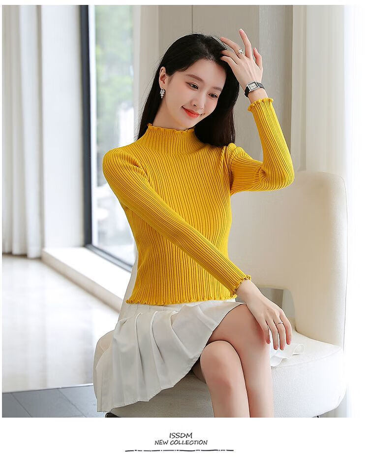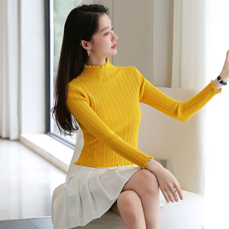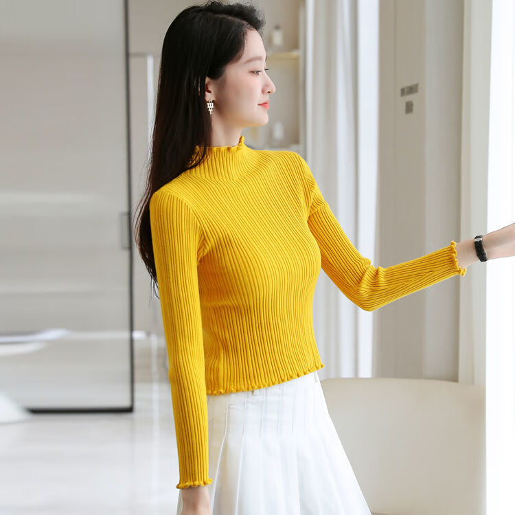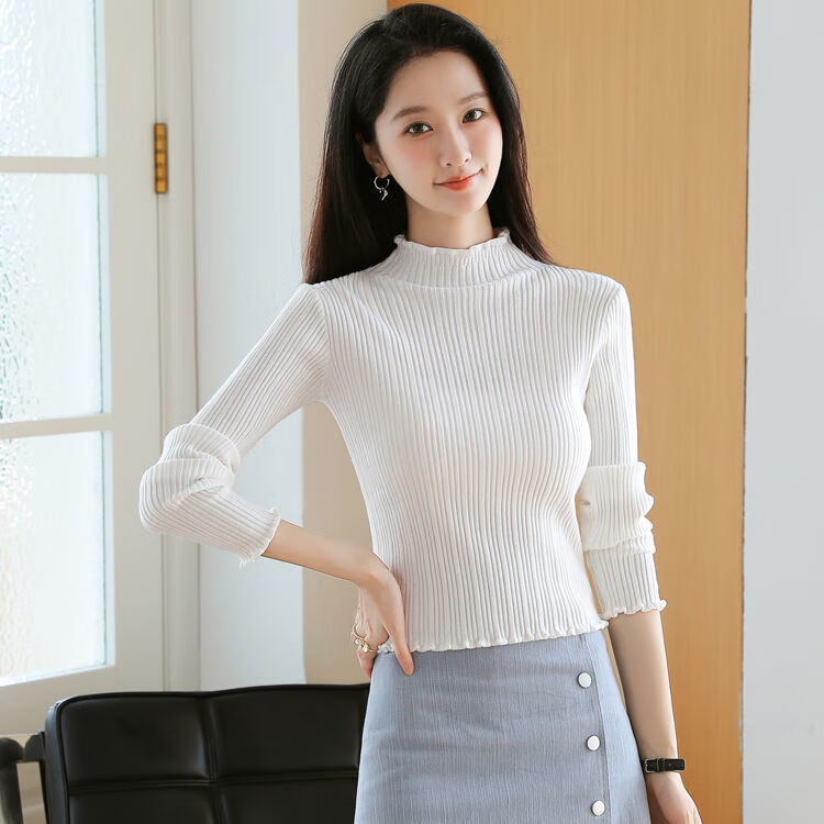 EDJCVTT Half turtleneck pullover sweater for women 2025 spring, autumn and winter new style sweater, fashionable, slim, slim bottoming shirt, white M, recommended 85-95Jin Jin is equal to 0.5 kg