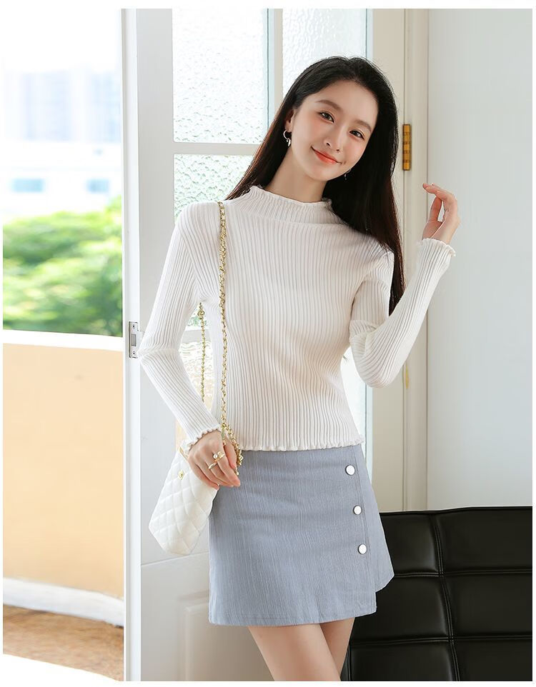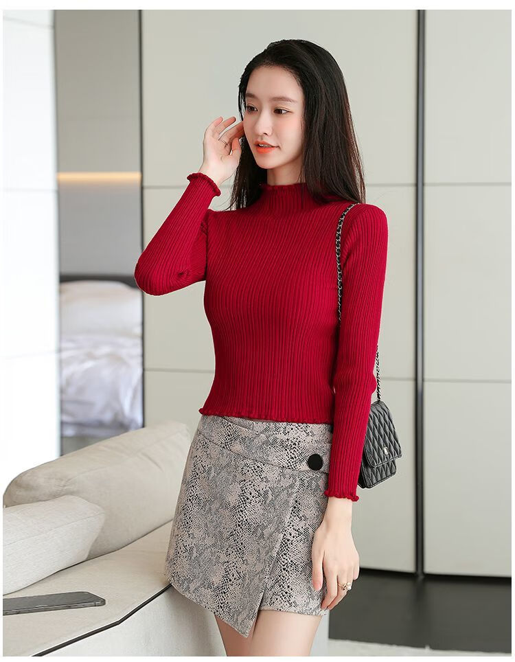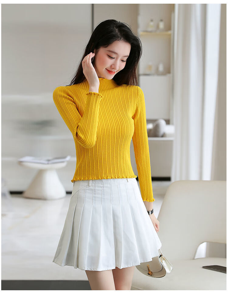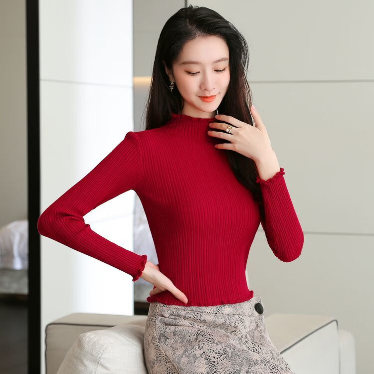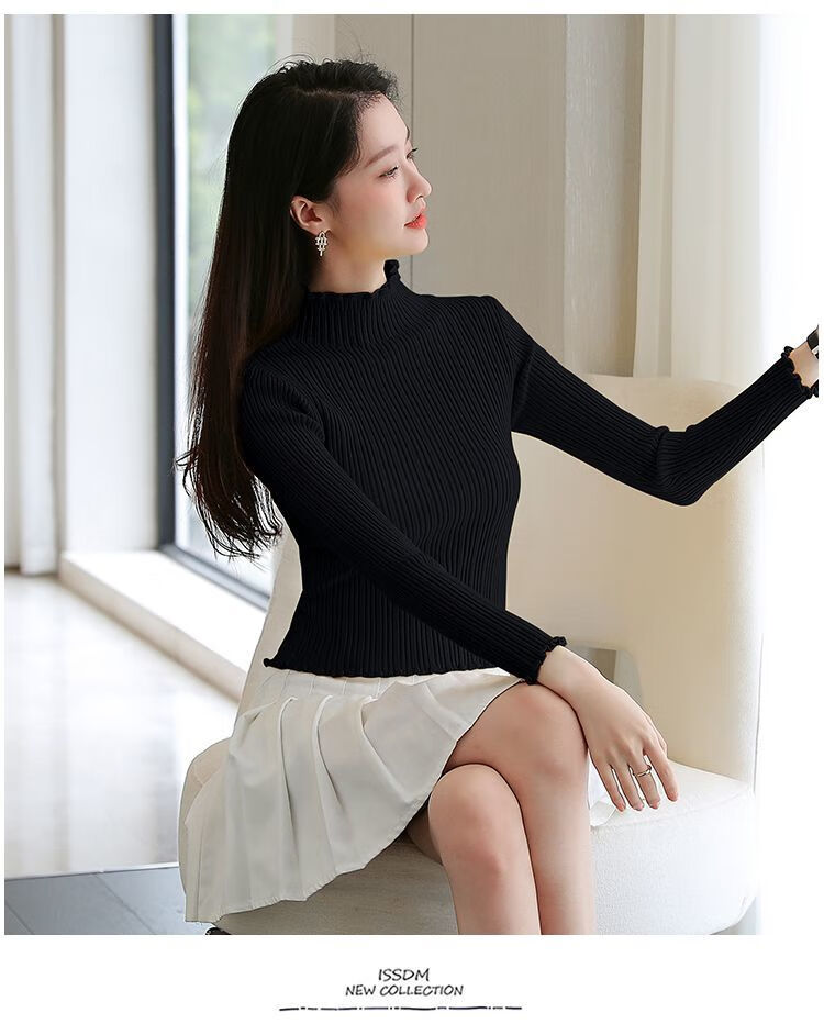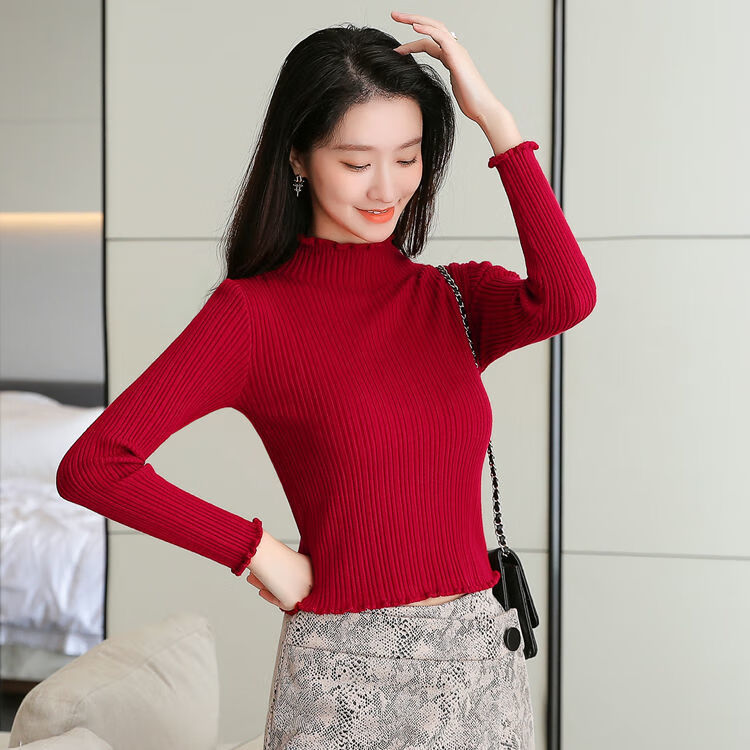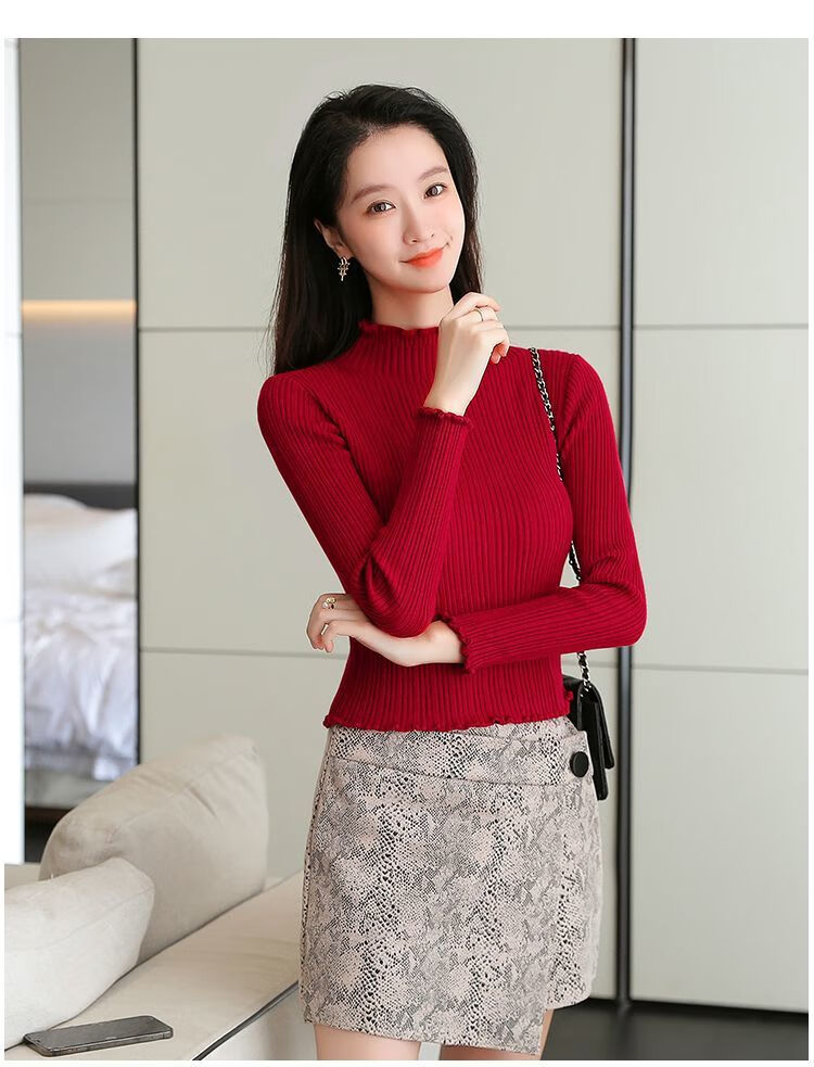 EDJCVTT Half turtleneck pullover sweater for women 2025 spring, autumn and winter new style sweater, fashionable, slim, slim bottoming shirt, white M, recommended 85-95Jin Jin is equal to 0.5 kg