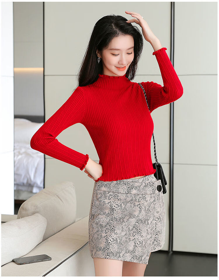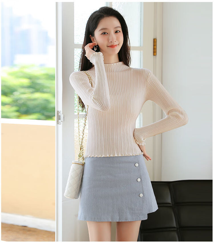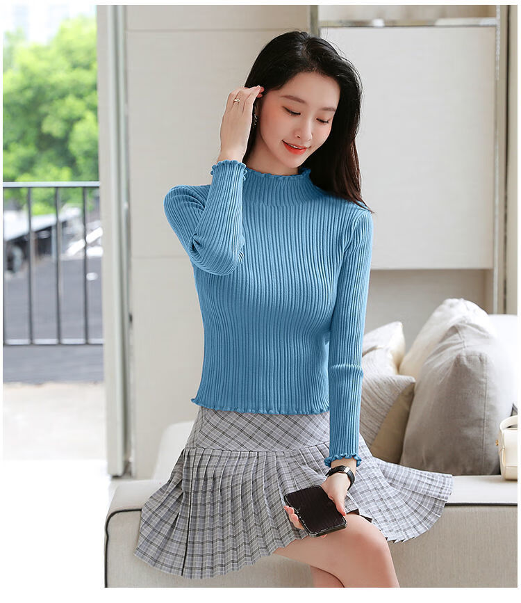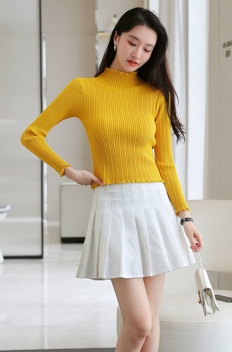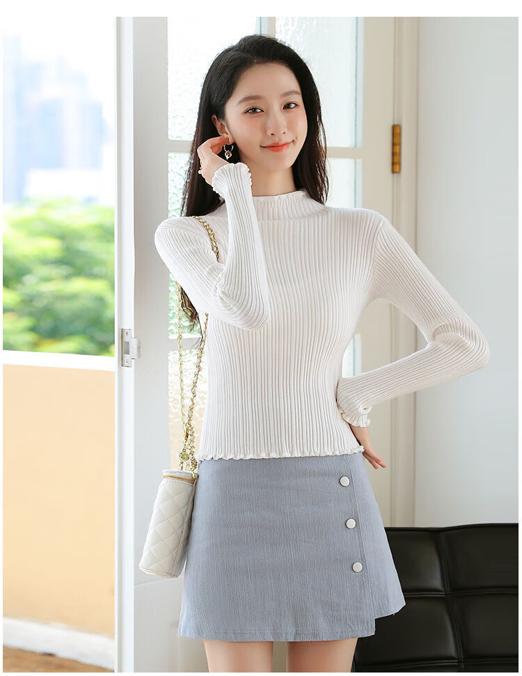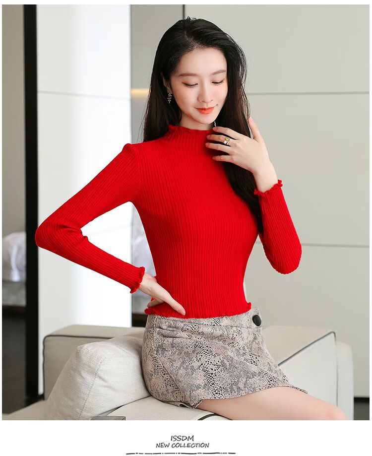 EDJCVTT Half turtleneck pullover sweater for women 2025 spring, autumn and winter new style sweater, fashionable, slim, slim bottoming shirt, white M, recommended 85-95Jin Jin is equal to 0.5 kg