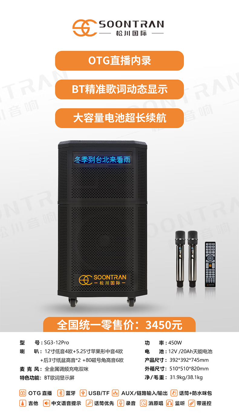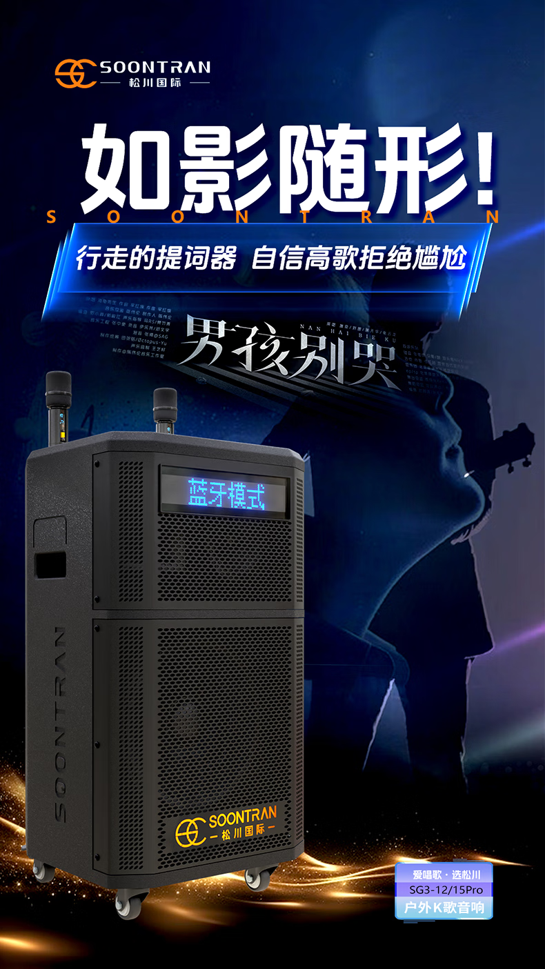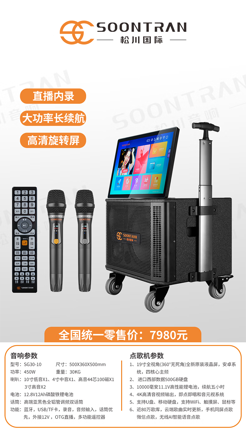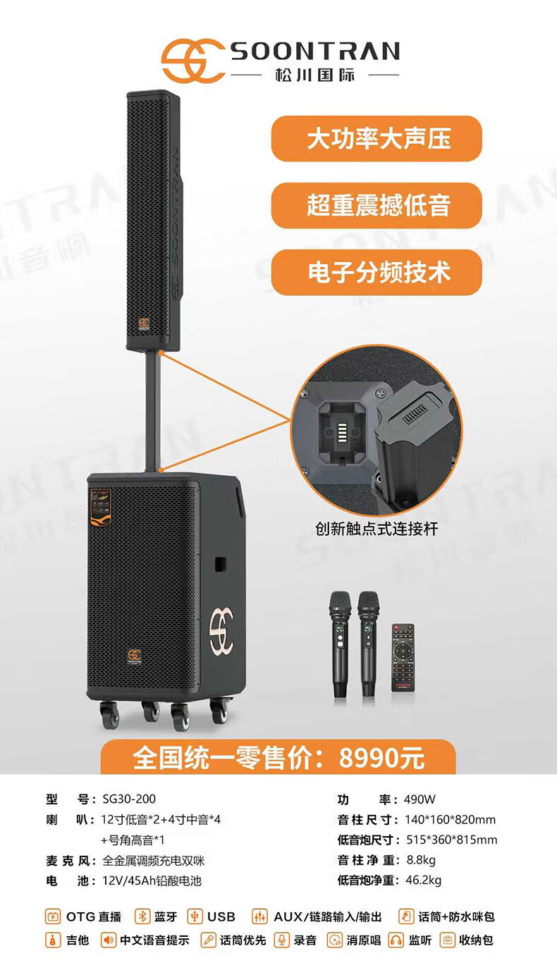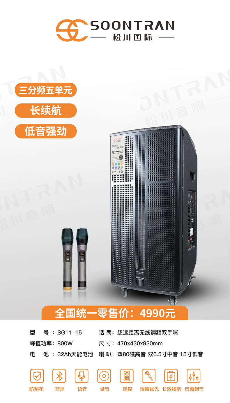 Songchuan International SG30-12/18-inch square dance high-power audio outdoor karaoke lever karaoke speaker professional live broadcast with sound card all-in-one Bluetooth audio KTV Songchuan International Audio SG3-15Pro (480W) metal rechargeable microphone*2