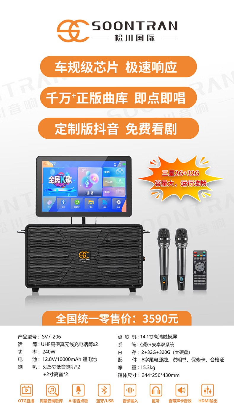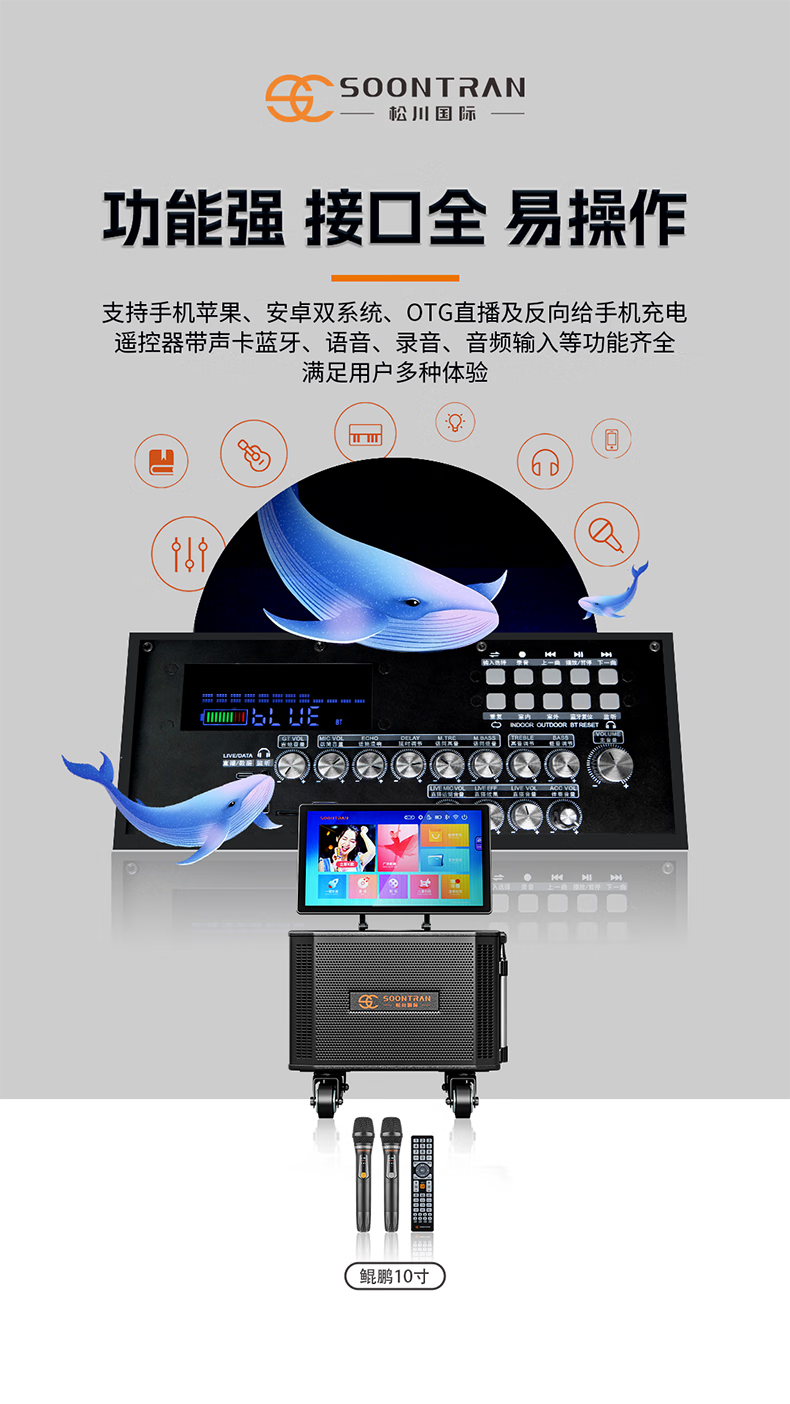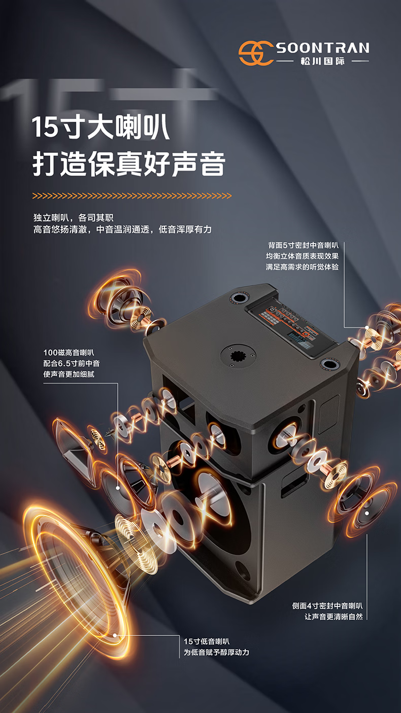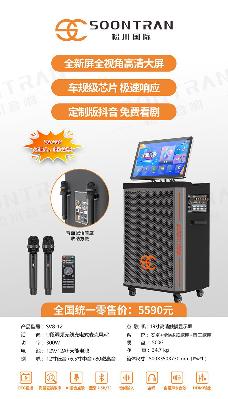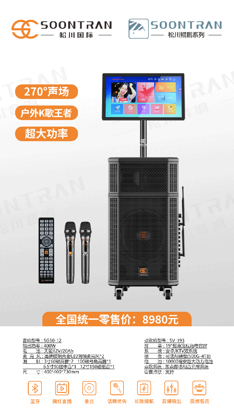Songchuan International SG30-12/18-inch square dance high-power audio outdoor karaoke lever karaoke speaker professional live broadcast with sound card all-in-one Bluetooth audio KTV Songchuan International Audio SG3-15Pro (480W) metal rechargeable microphone*2