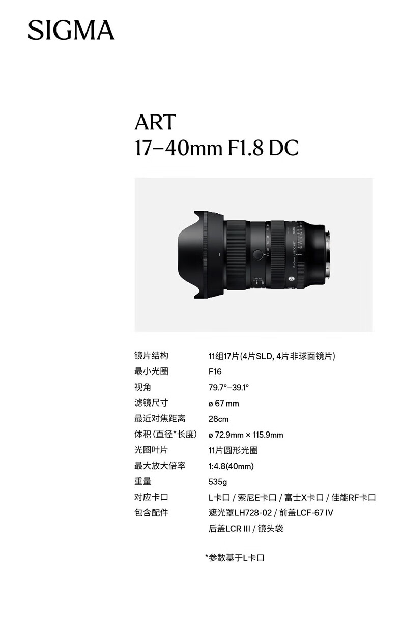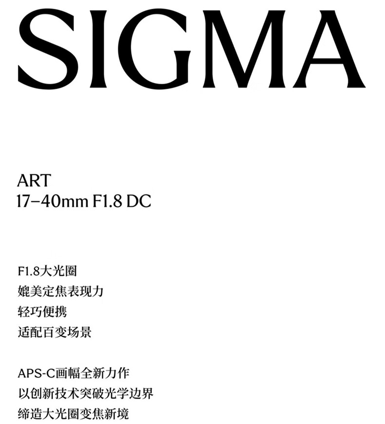 SIGMA 17-40mm F1.8 DC Art constant F1.8 aperture APS-C format mirrorless standard zoom lens Sony E-mount