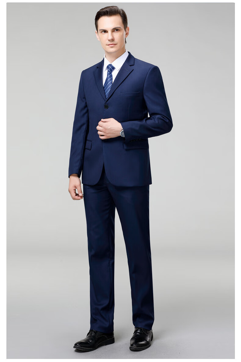 ROMON high-end wool suit suit for middle-aged men, no ironing, anti-wrinkle, business casual, professional formal wear, dad's wedding suit, navy blue - two buttons - middle slit two-piece set M 165 size