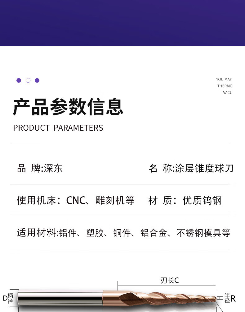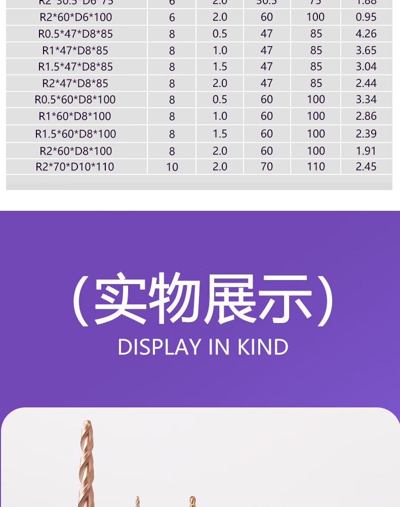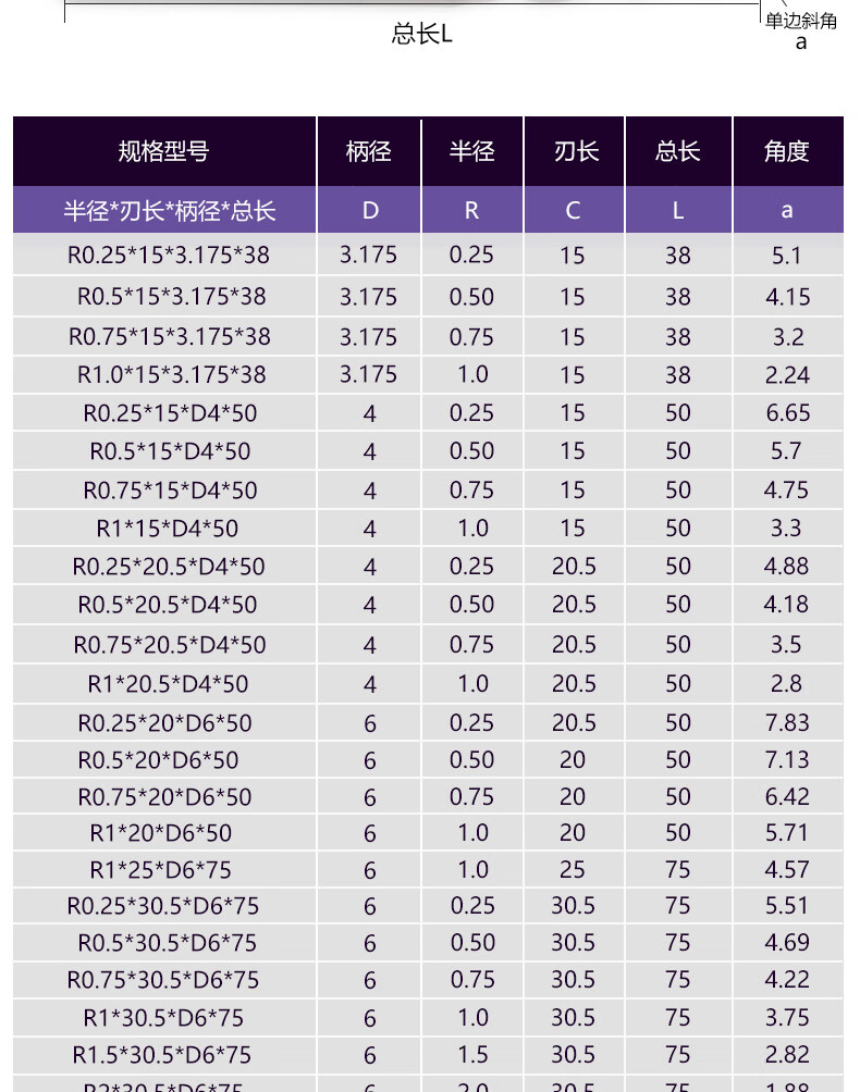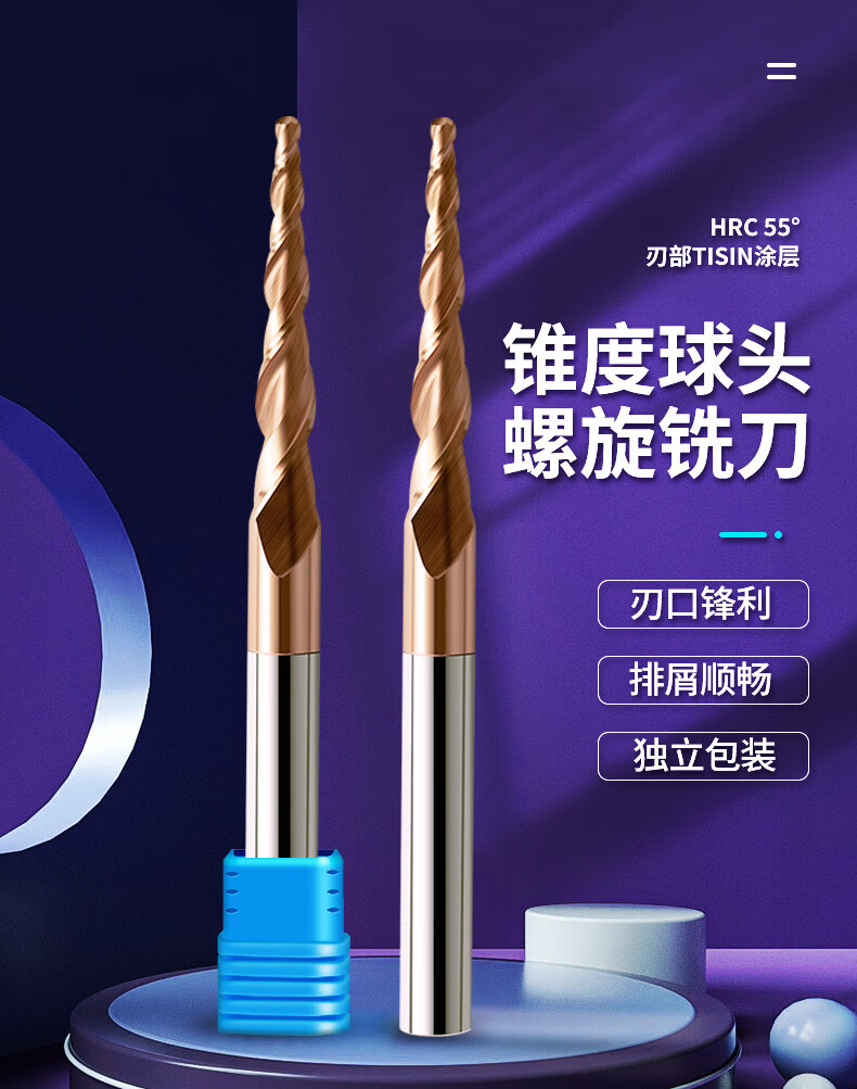 Panxiao 55 degree taper ball cutter carbide knife CNC CNC tool engraving knife 2-edge ball head tungsten steel ball head end mill R1.0*60*D8*100*2.86