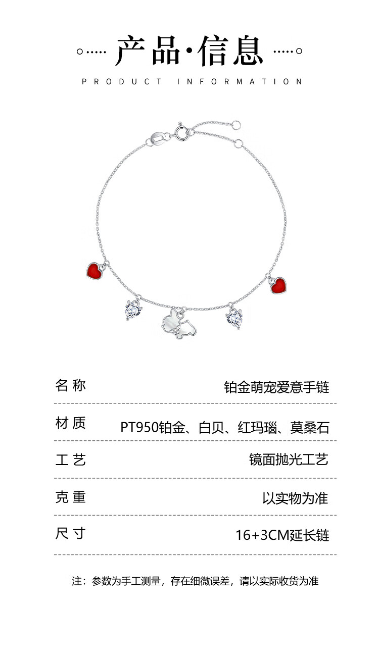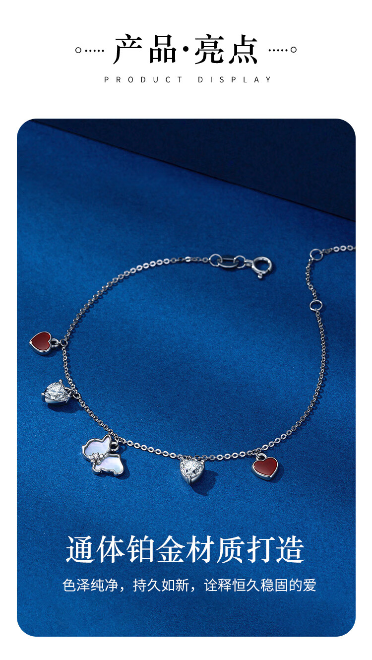 Grace Girl Platinum Love Puppy Bracelet Female Cute Pet Fashion Design Bracelet Heartfelt Gift for Girlfriend Birthday Gift for Valentine's Day Platinum Cute Pet Love Bracelet + Light Luxury Gift Box