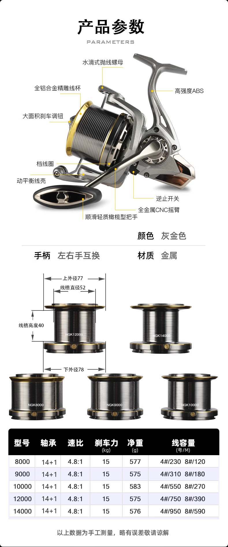All-metal big-object fishing reel, long-range cast anchor fish spinning wheel, large-capacity, high-smooth fishing reel, sea pole fishing reel, long-range cast, seawater-proof, 12000-type large-object fishing reel