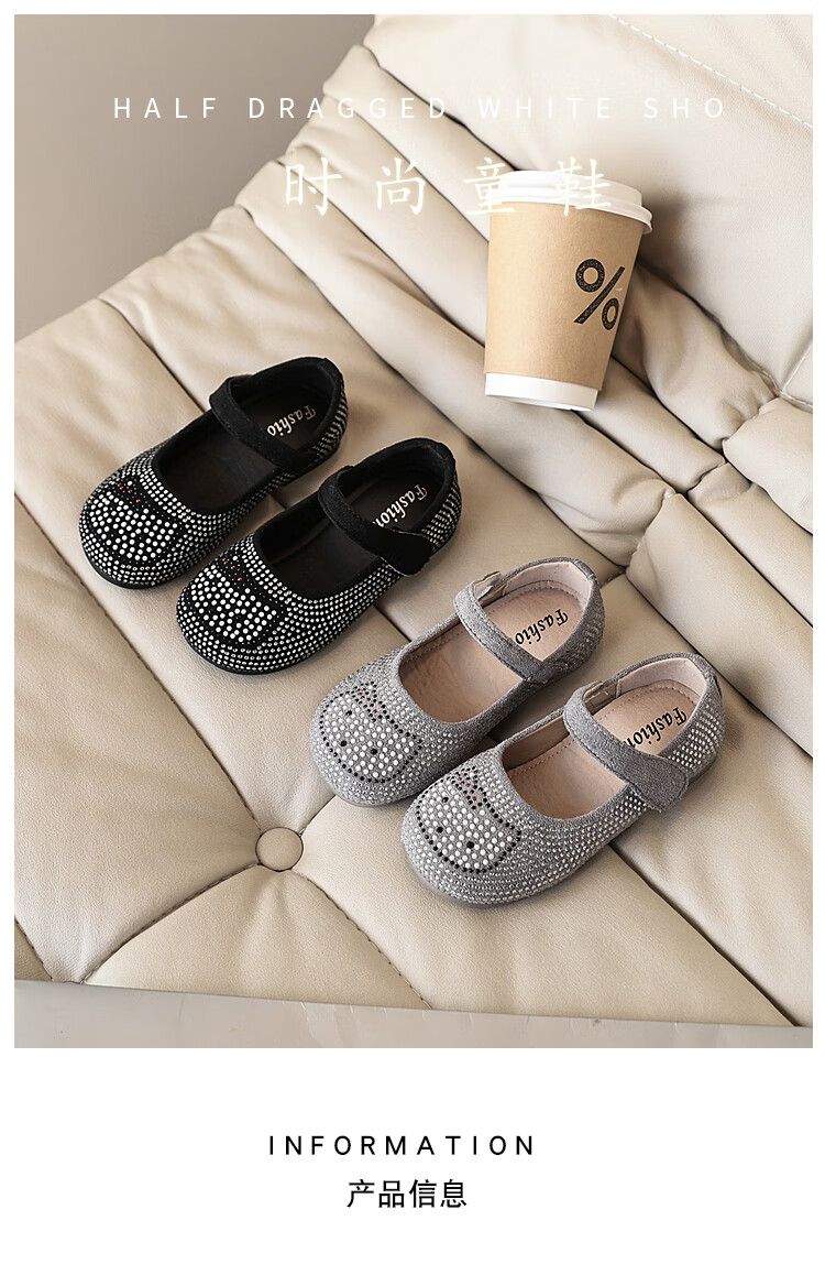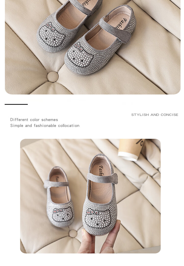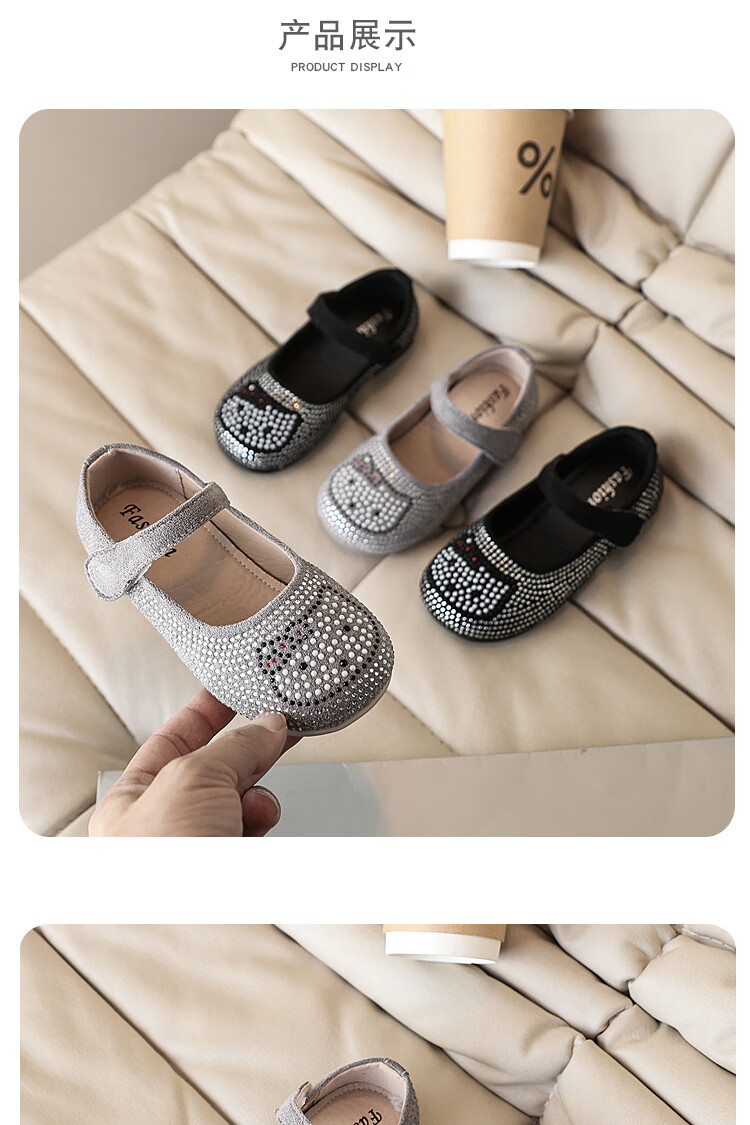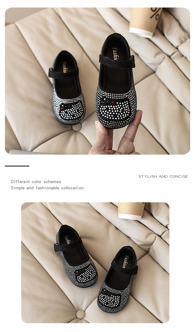 Girls Fashion Rhinestone Princess Shoes 2025 Spring and Autumn New Children's Leather Shoes Performance Shoes Single Shoes Little Girls Soft Sole Shoes Black 23 Inner Length 15cm