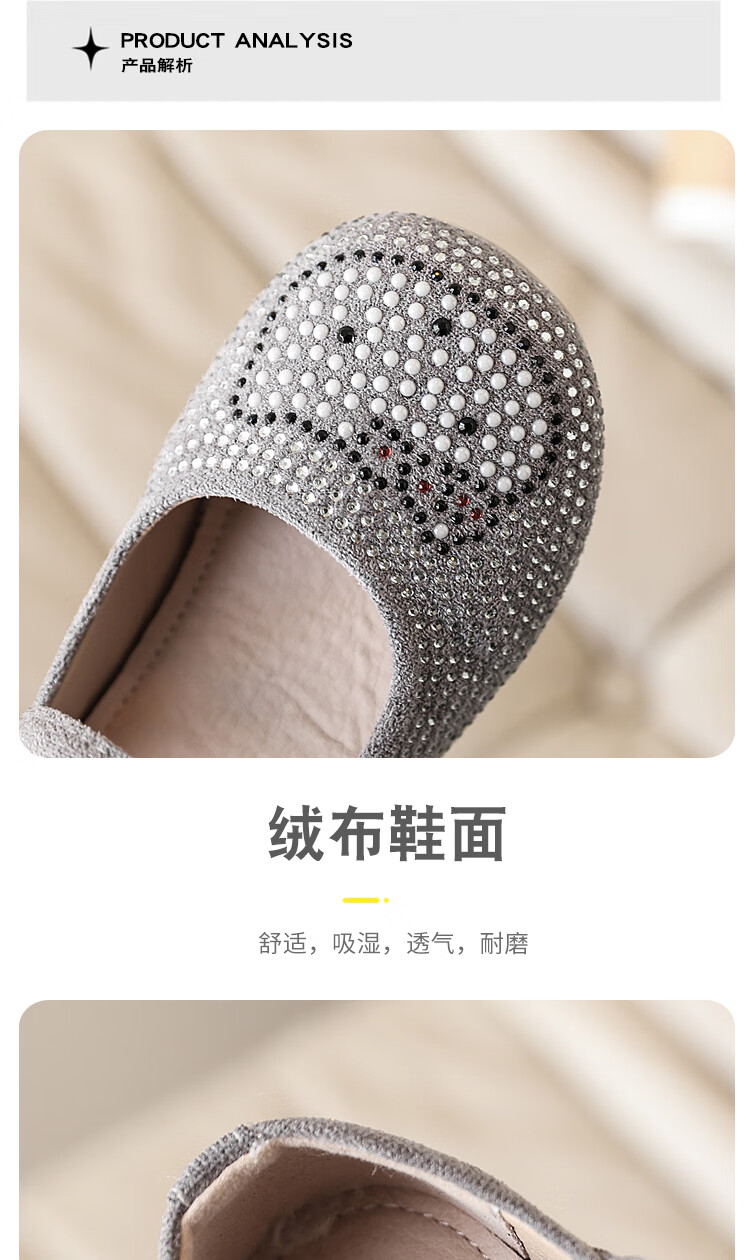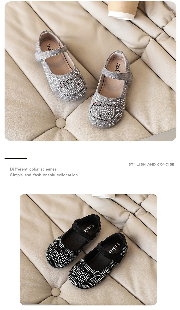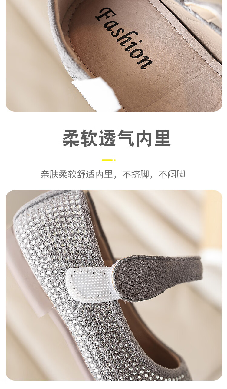 Girls Fashion Rhinestone Princess Shoes 2025 Spring and Autumn New Children's Leather Shoes Performance Shoes Single Shoes Little Girls Soft Sole Shoes Black 23 Inner Length 15cm