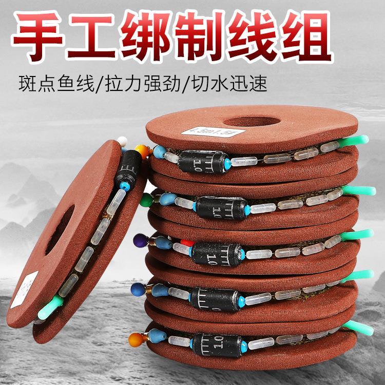 Spotted line set, large object main line set, Taiwan fishing genuine tied finished fishing line set, complete set of fishing gear supplies, 5.4 meters - strong eight-character ring 3 rolls, main line - 1.5#