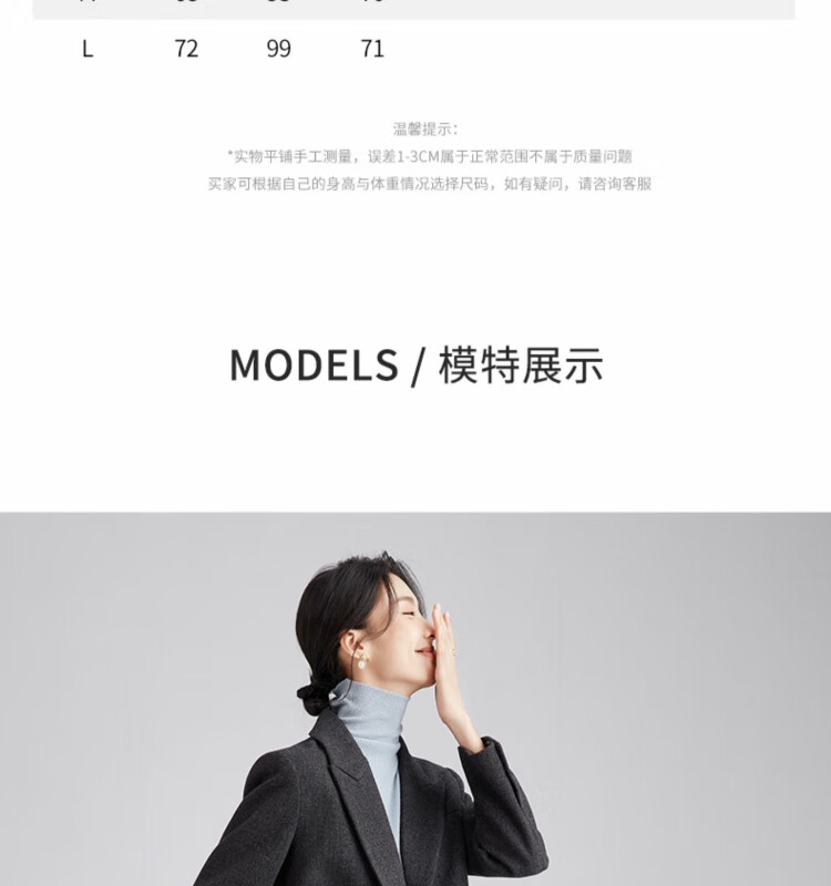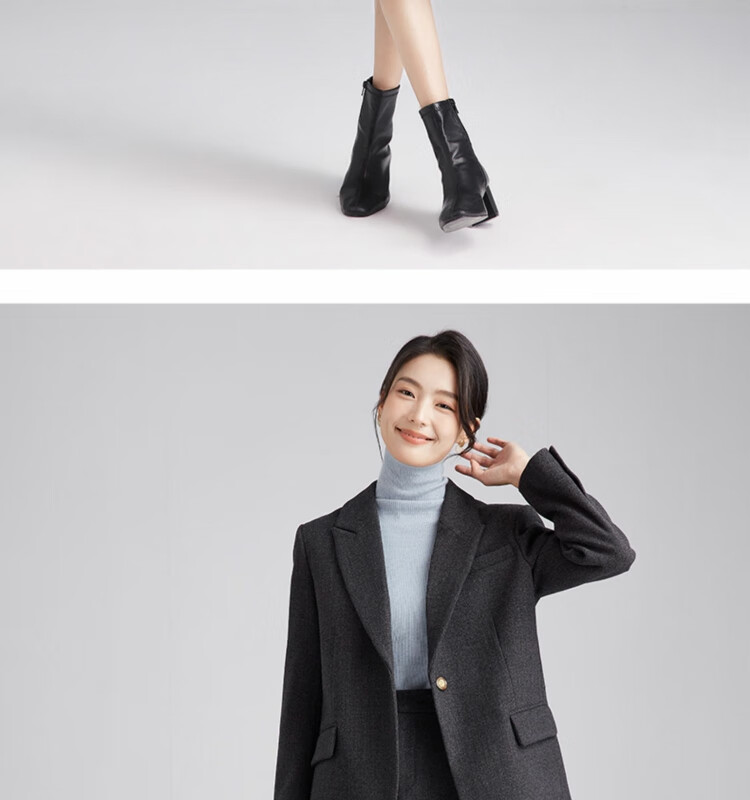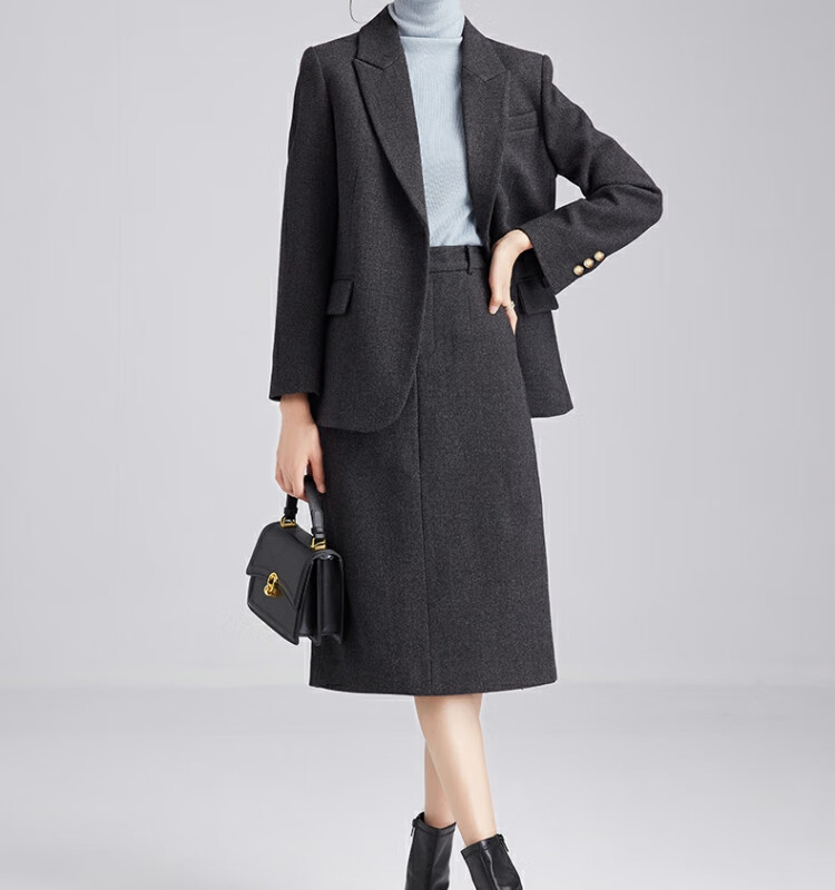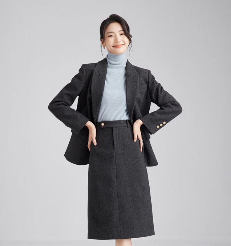 Tumando woolen blazer, new feminine style, small, short, small style suit, commuting interview, professional formal wear, dark gray blazer, long version, the length is pleasing and not picky S