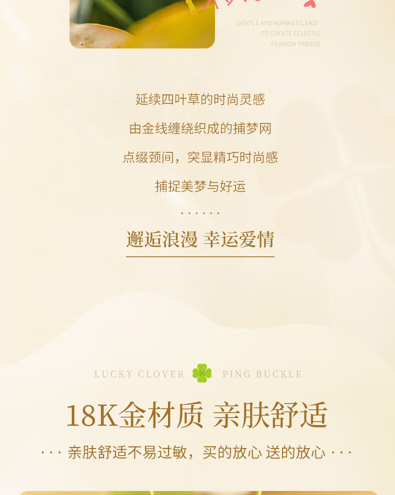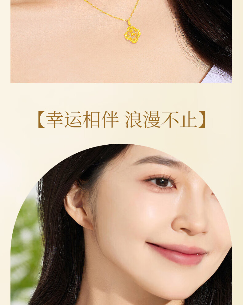 China Gold (CHINA GOLD) Four-leaf clover gold necklace women's 18K gold pendant birthday gift for girlfriend and wife anniversary wedding anniversary Dreamcatcher four-leaf clover pendant - free S925 silver chain