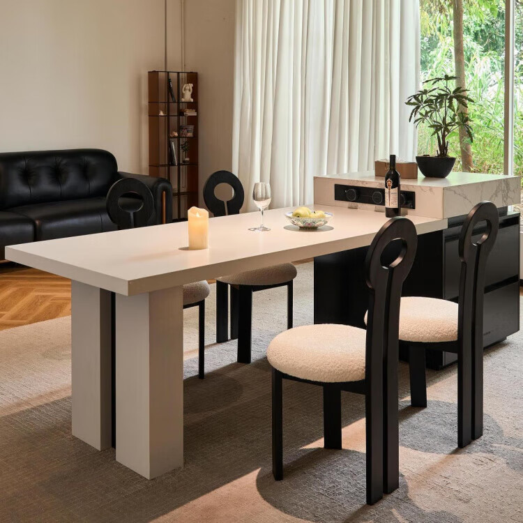 Platinum Italian style simple white slate island and dining table integrated small household multi-functional retractable kitchen island standard model (without socket function) + 4 chairs 50cm (retractable) length 1.8-2.3m