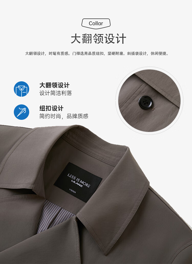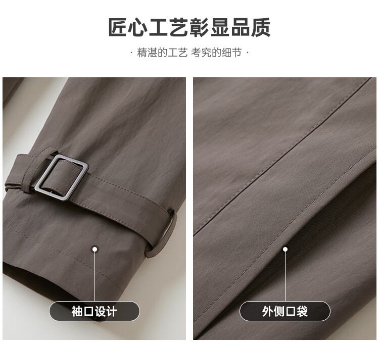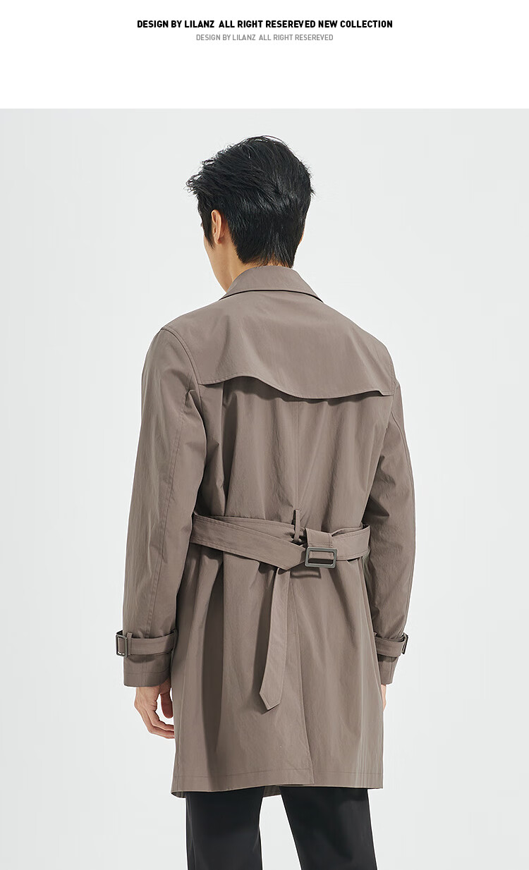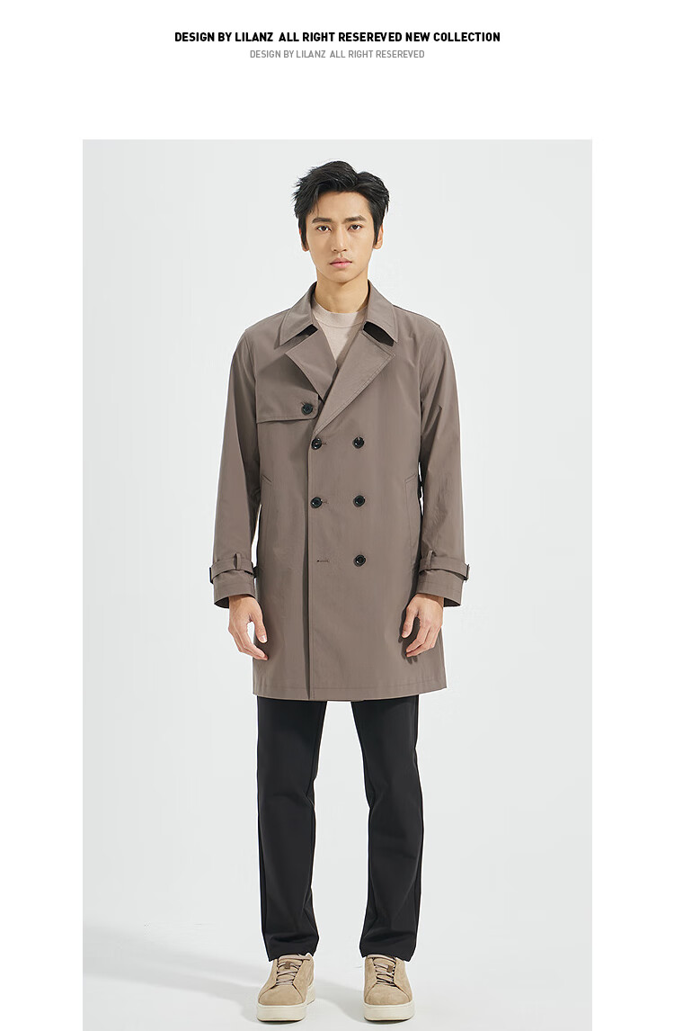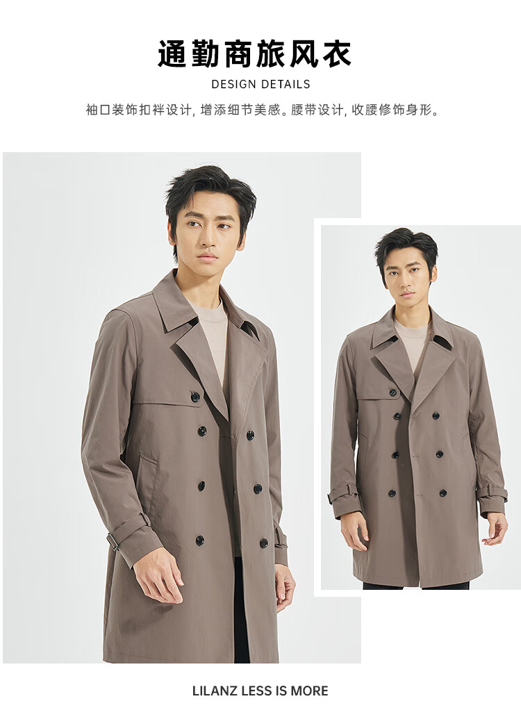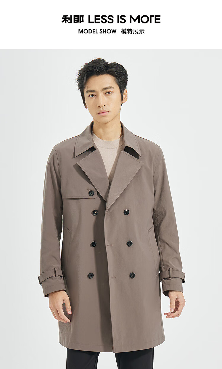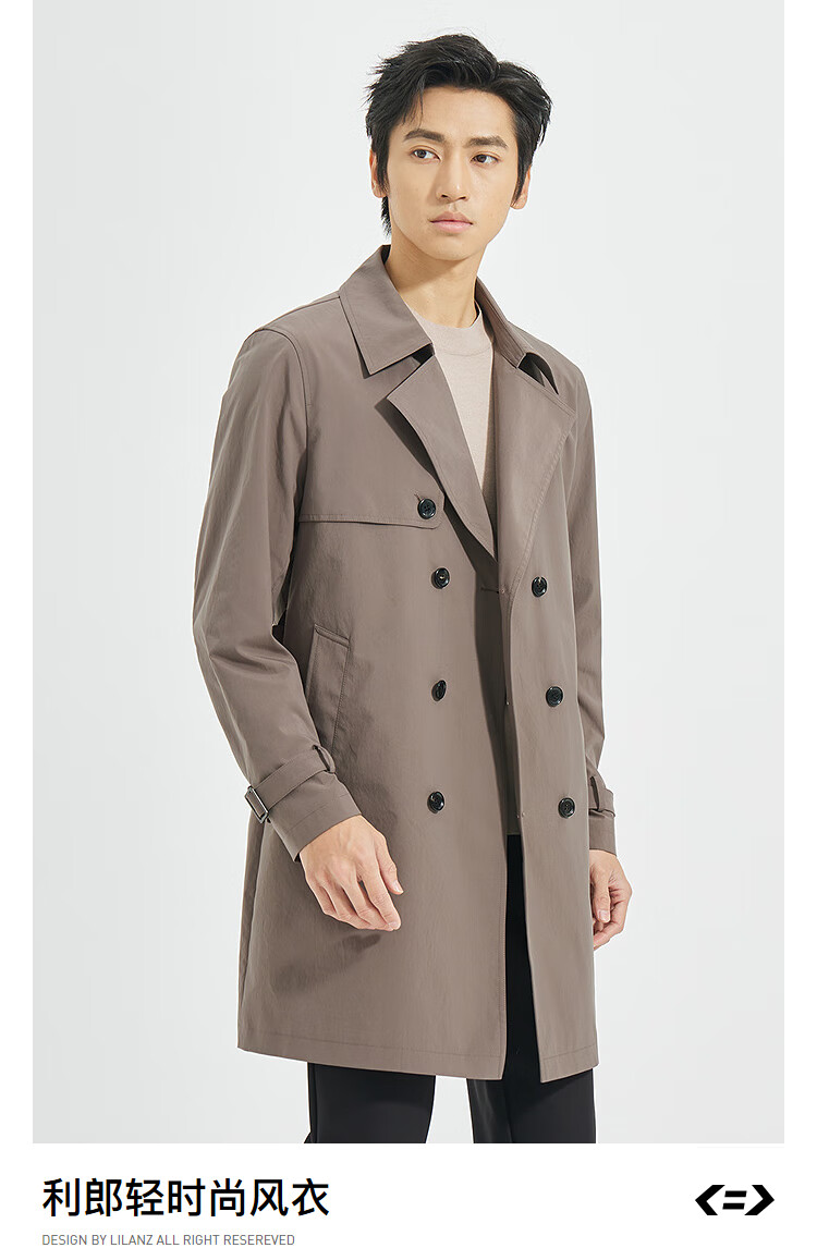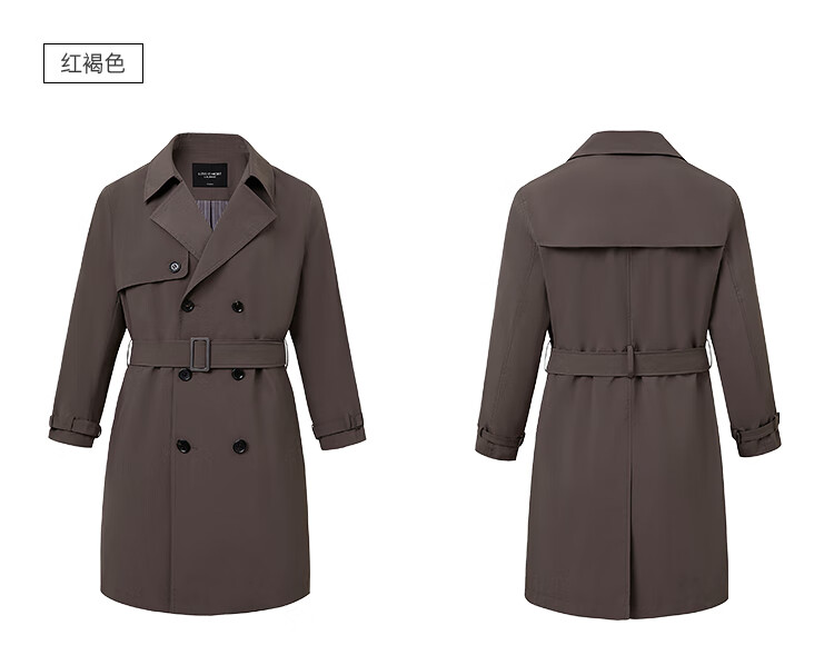 LiLang Youth Business Men's Suit Collar Windbreaker Men's Long Double-Breasted Easy-Care Commuting Windproof Executive Jacket Red Brown (1H) XL (175)