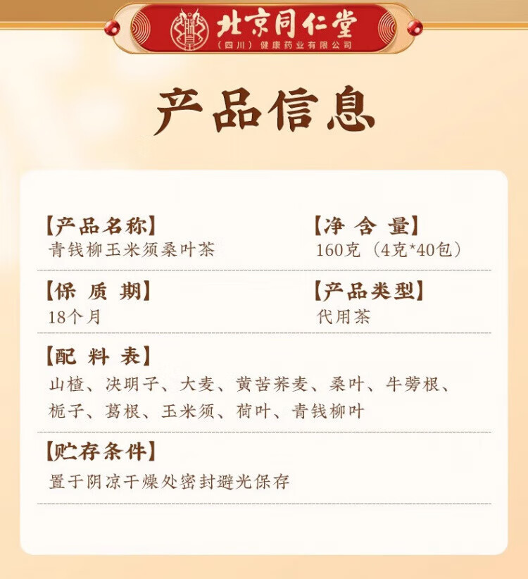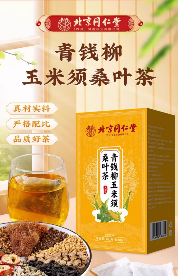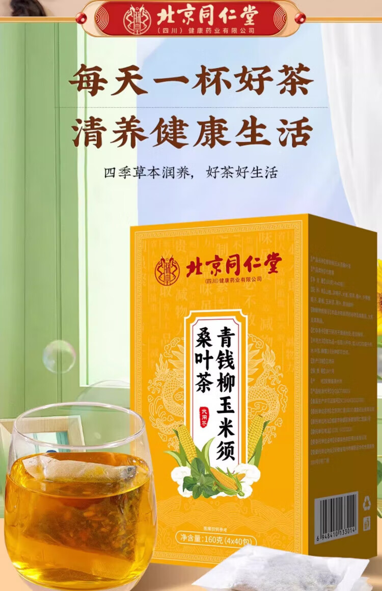 Tongrentang Beijing Tongren Qingqianliu, corn silk and mulberry leaf tea individually packaged Tongrentang genuine Qingqianliu, corn and mulberry leaves 5 boxes, maintenance pack 200 bags, 11 flavors