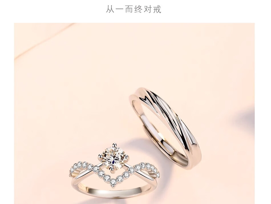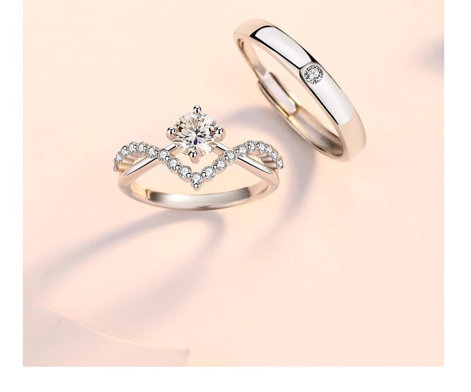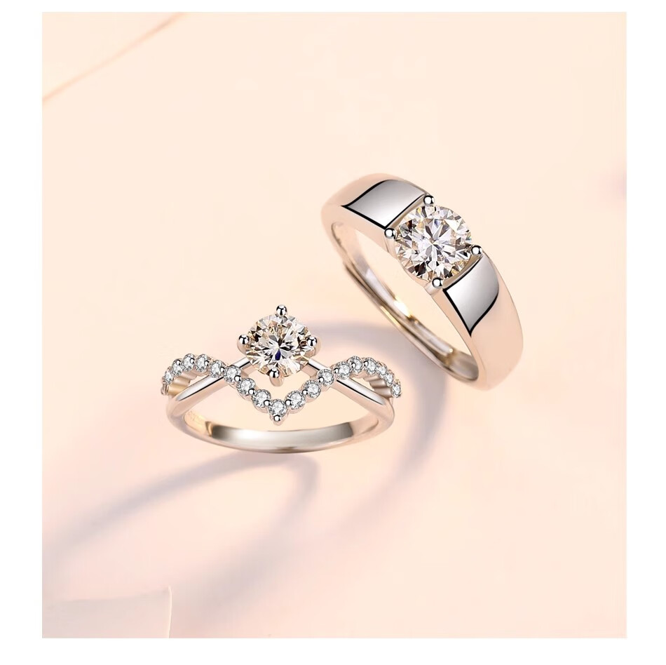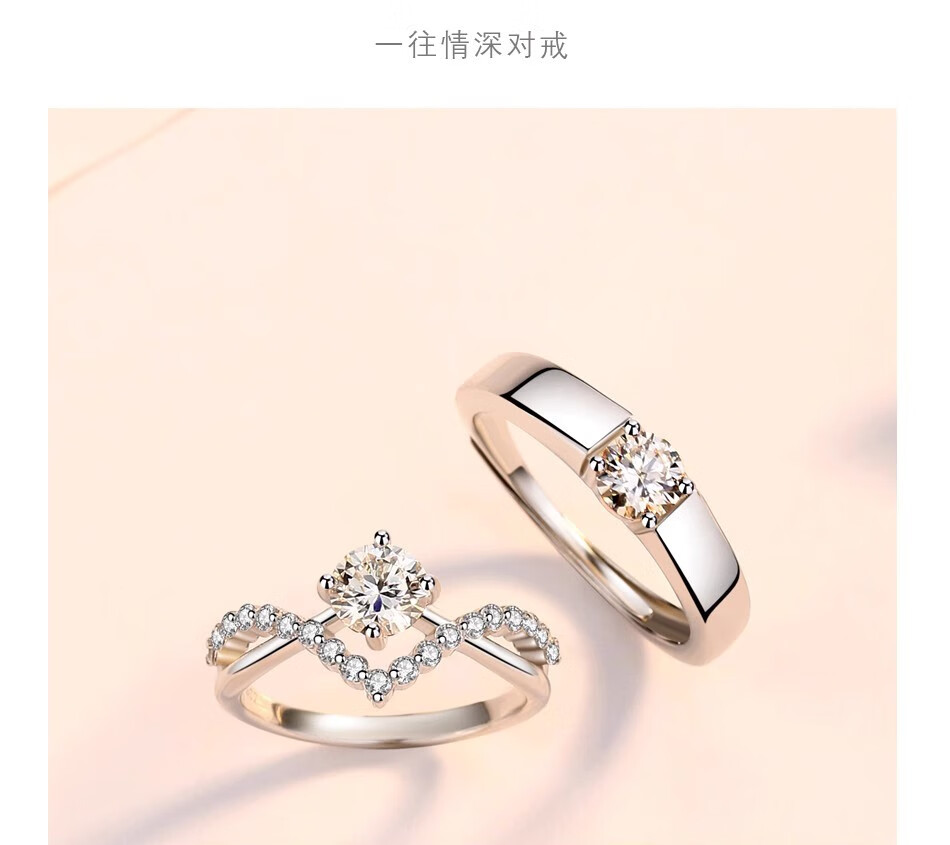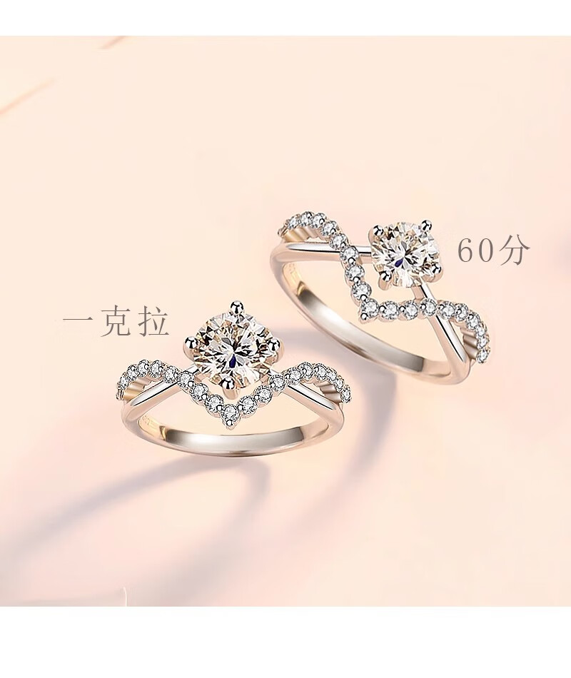 Moissanite diamond ring, a man and woman getting married, pair of rings, Chinese Valentine's Day proposal, sterling silver, platinum-plated pt950 ring, light luxury model - Crown women's ring 60 points - rose gift box