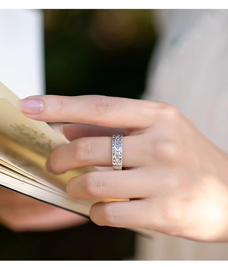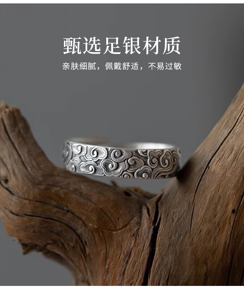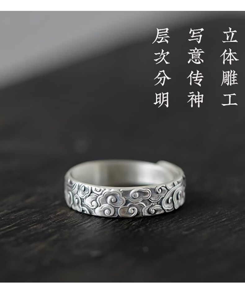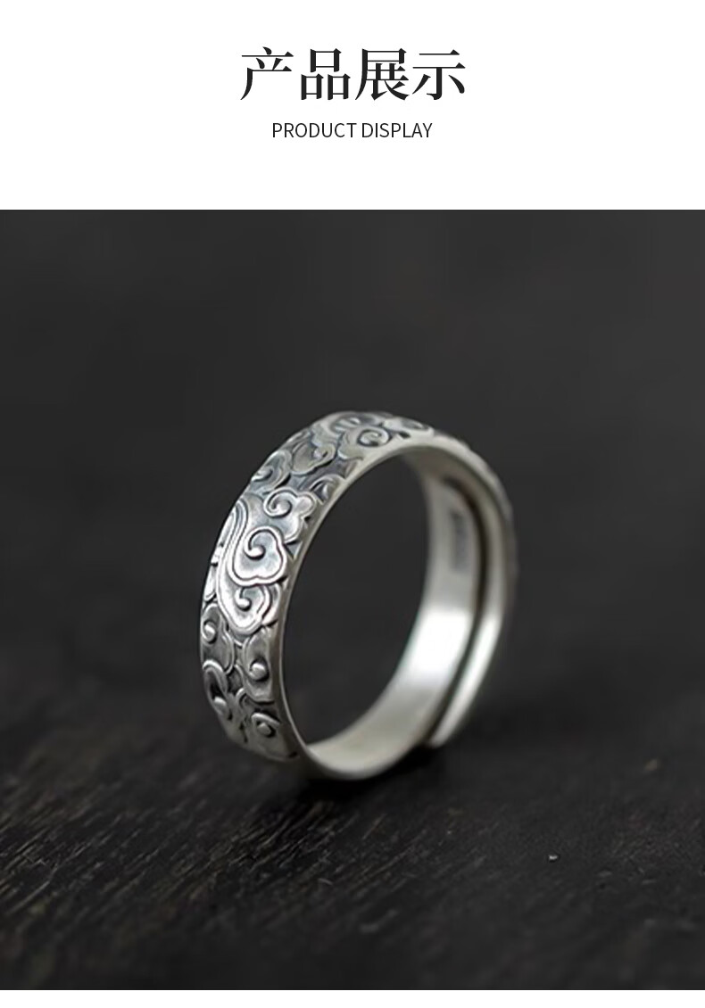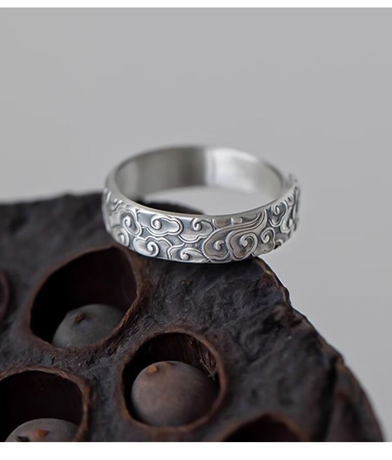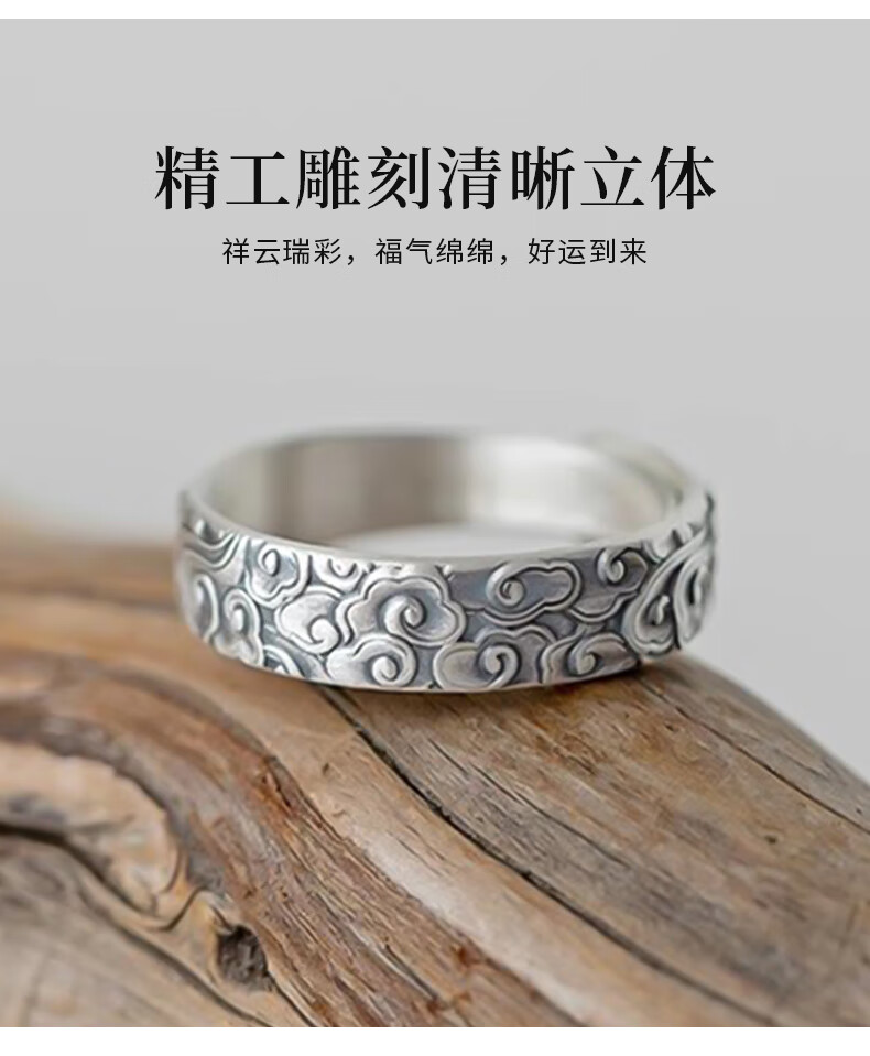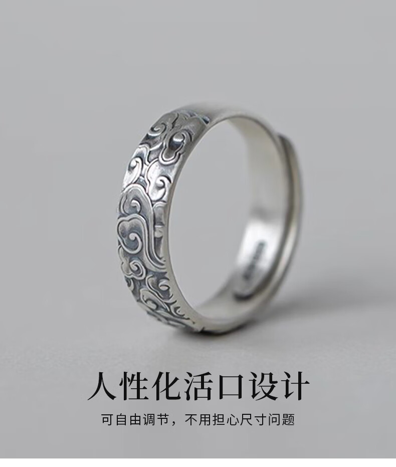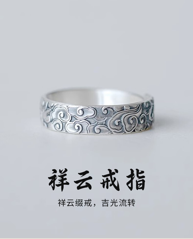 Chinese gold pure silver auspicious cloud ring for men and women, retro Chinese style single ring, practical birthday gift for boys to send to boyfriend, classic red gift box *shipping from Yagura* same day/next day delivery