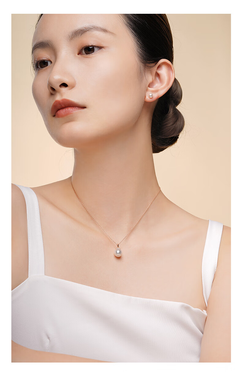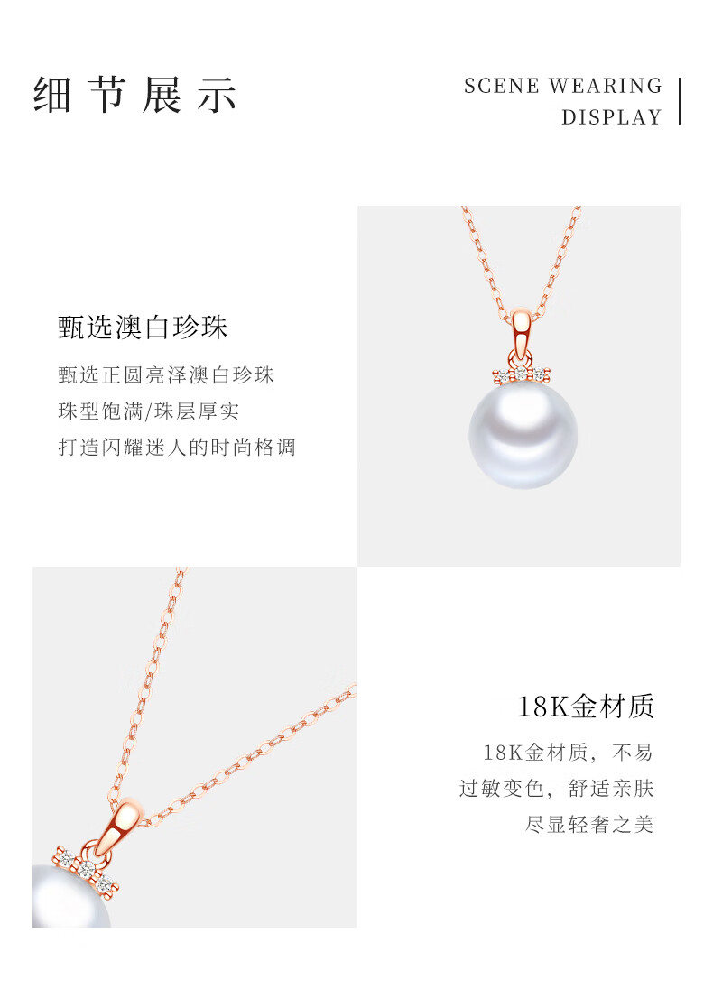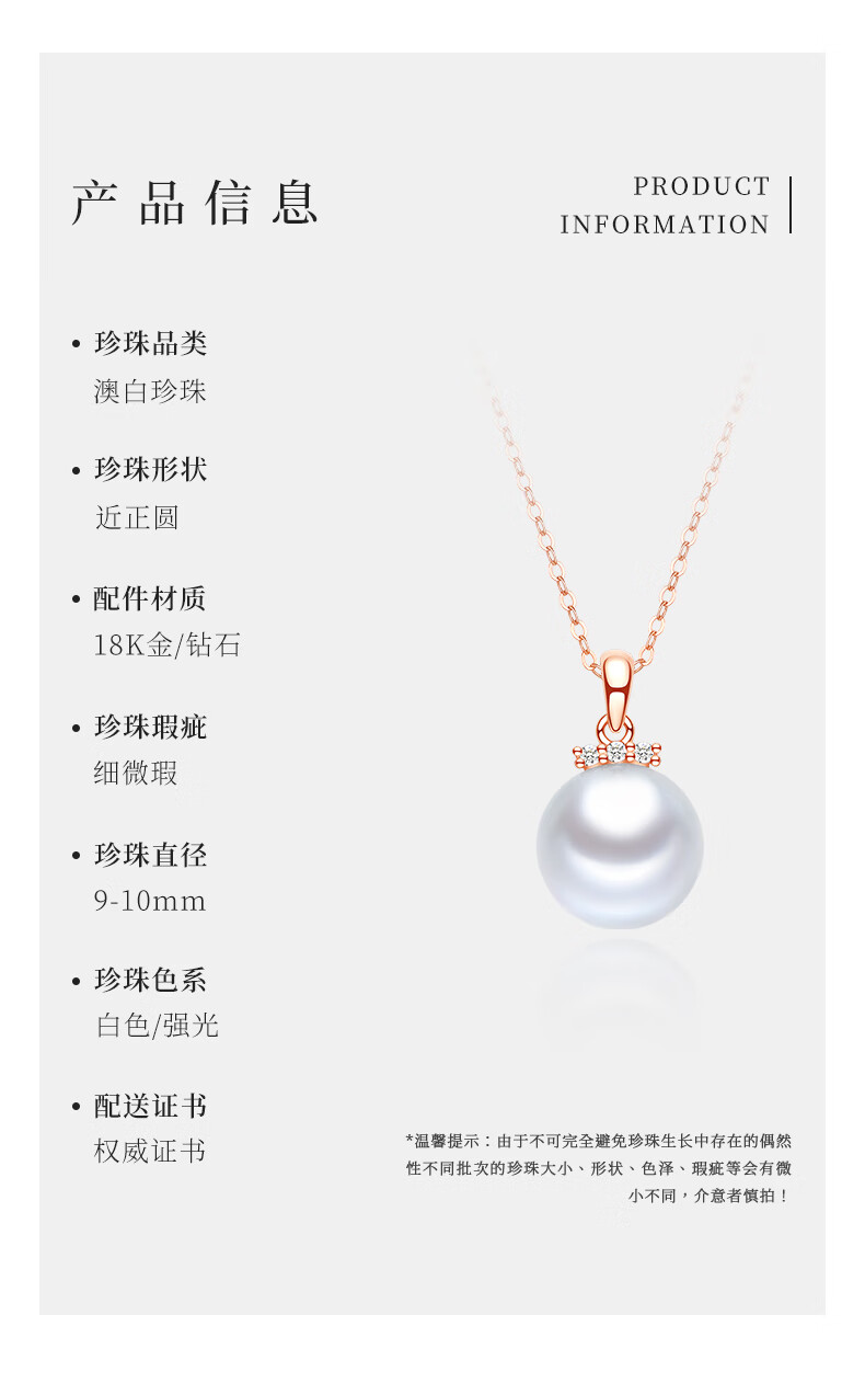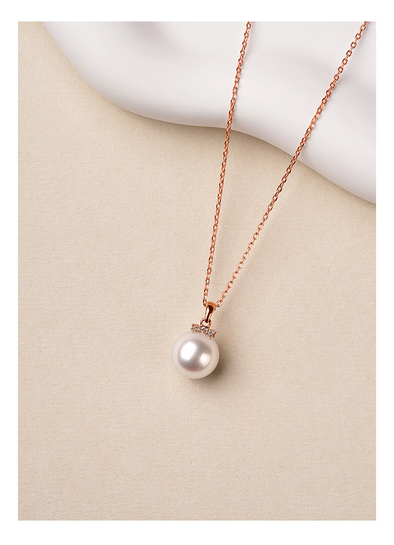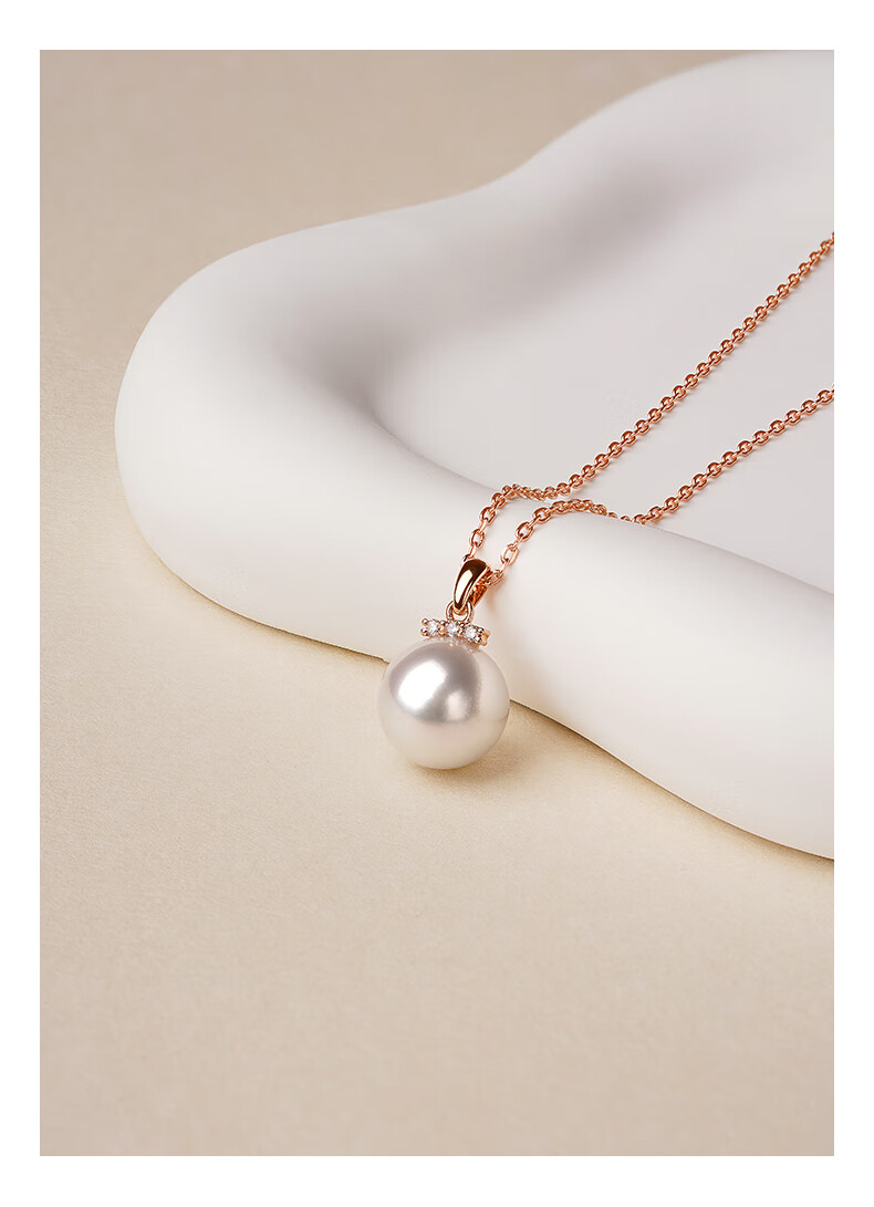 Tahitian Australian White Pearl Pendant 18K Gold Diamond Saltwater Pearl Necklace Australian White Pendant 9-10mm+925 Silver Chain