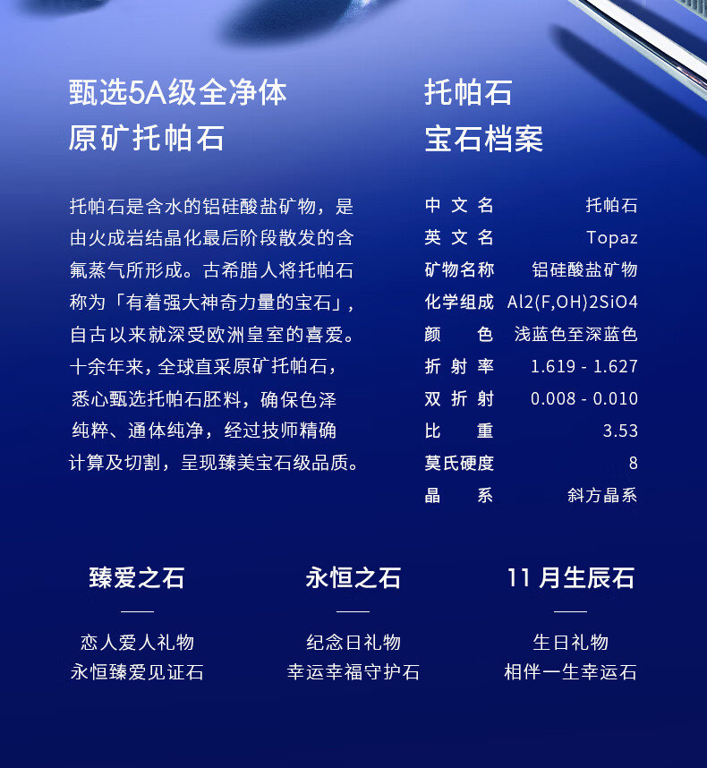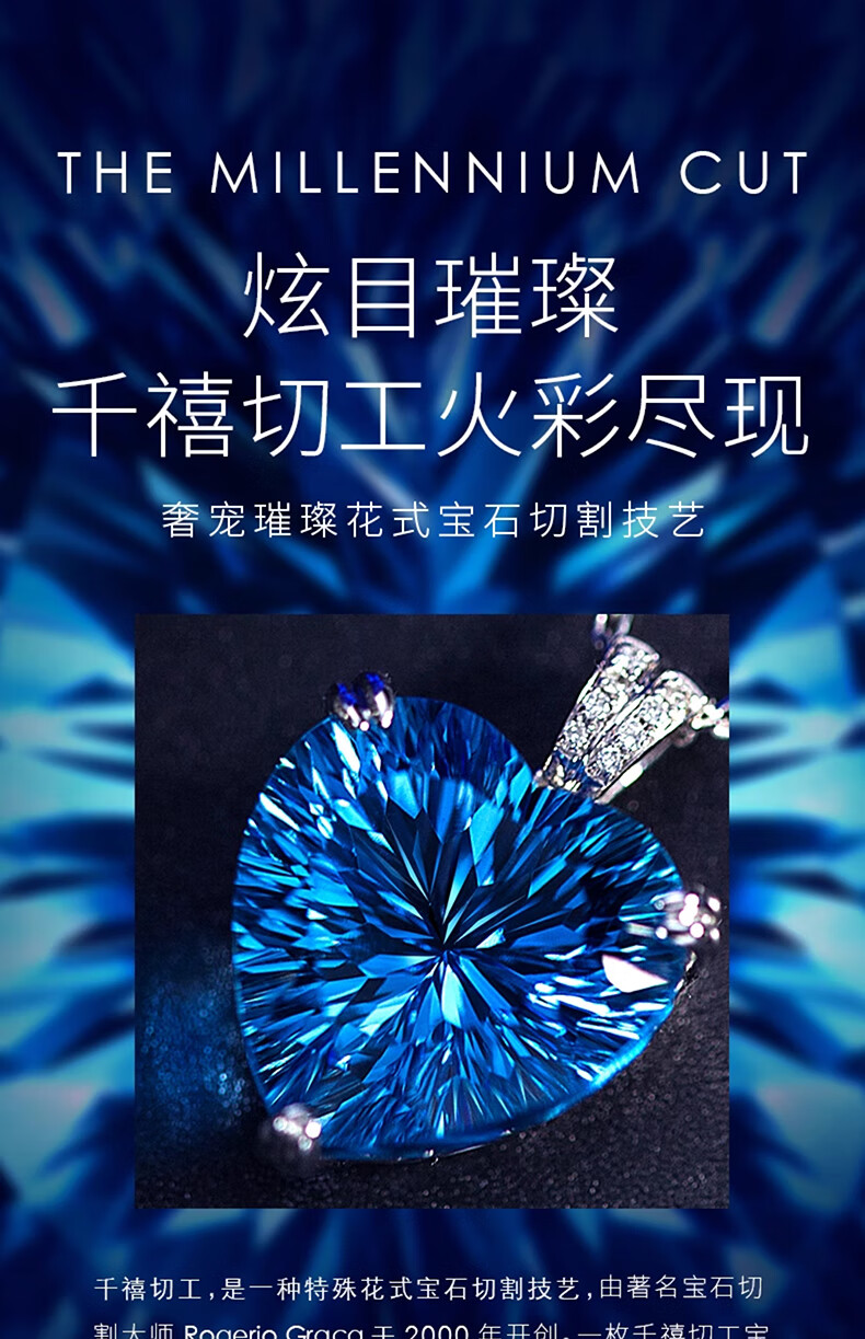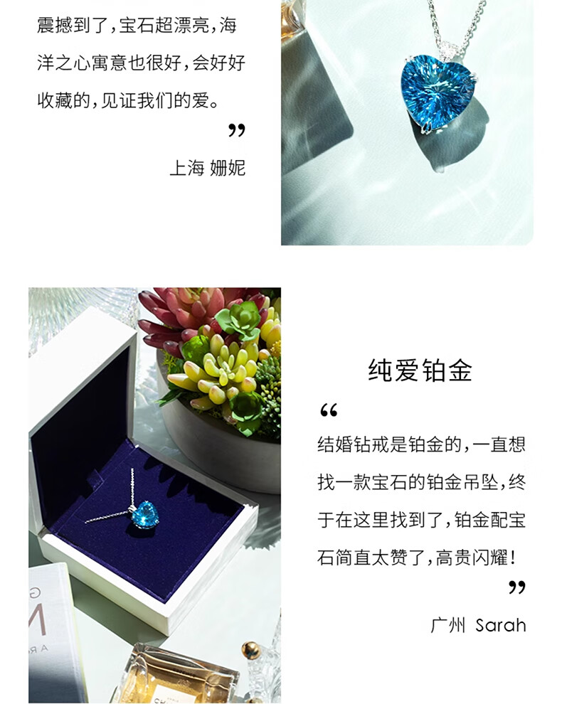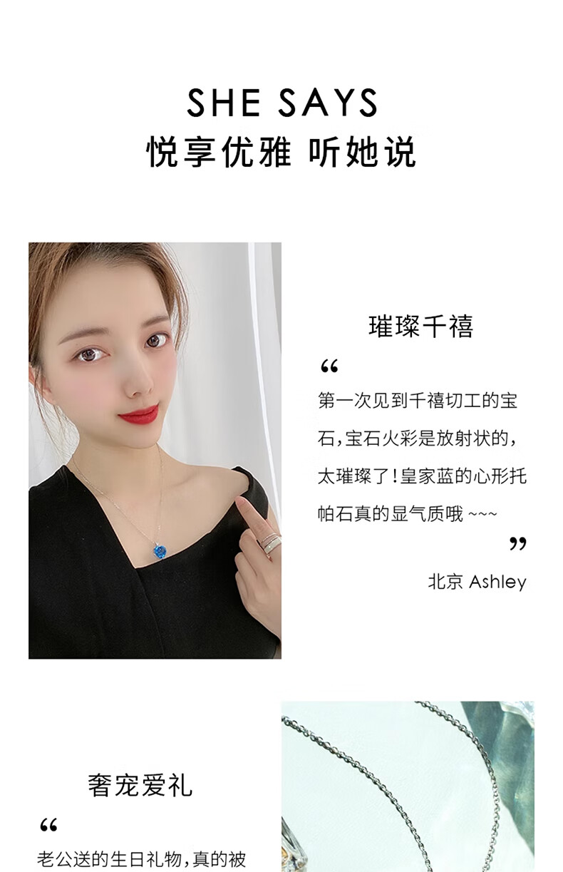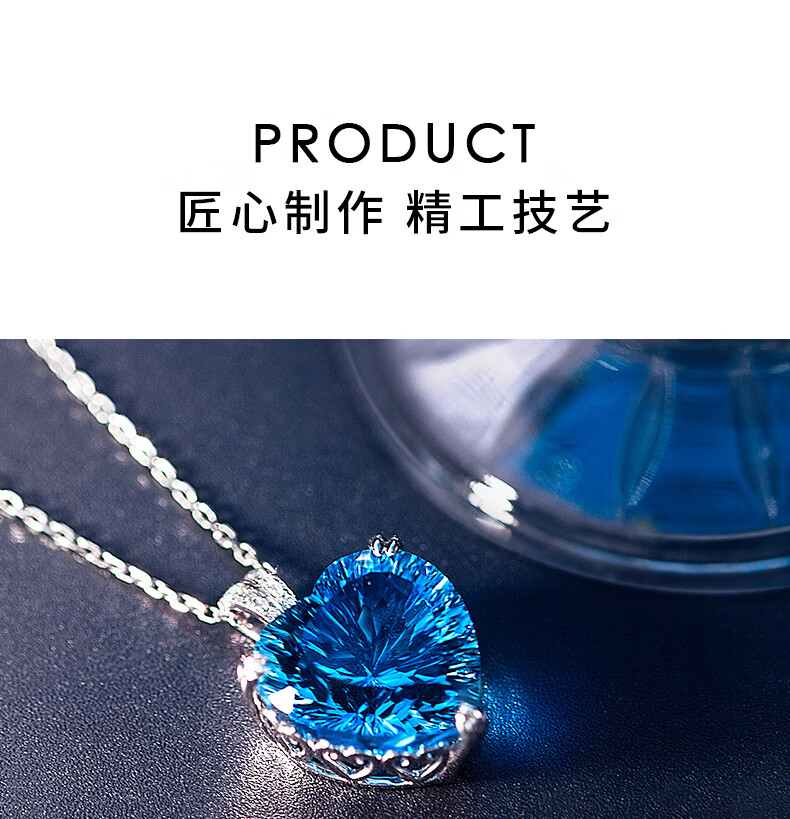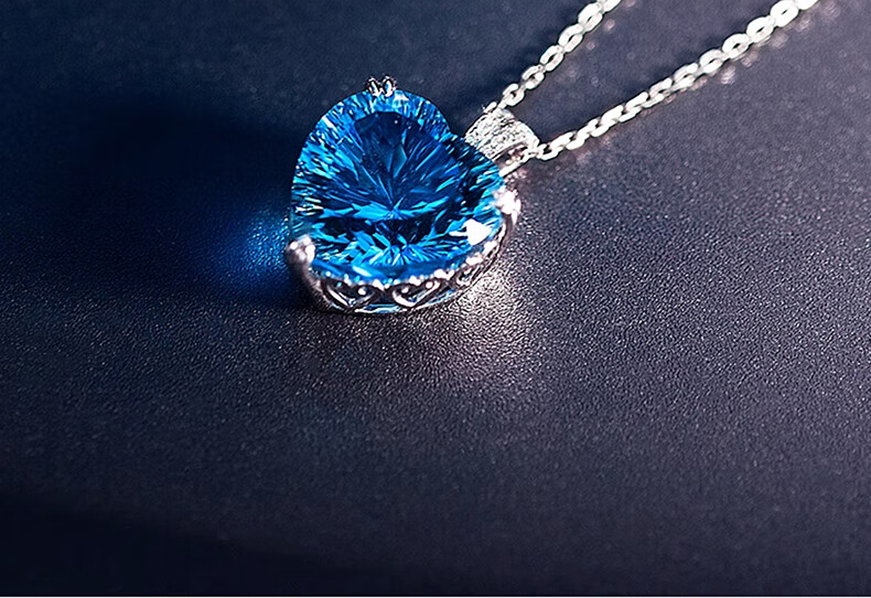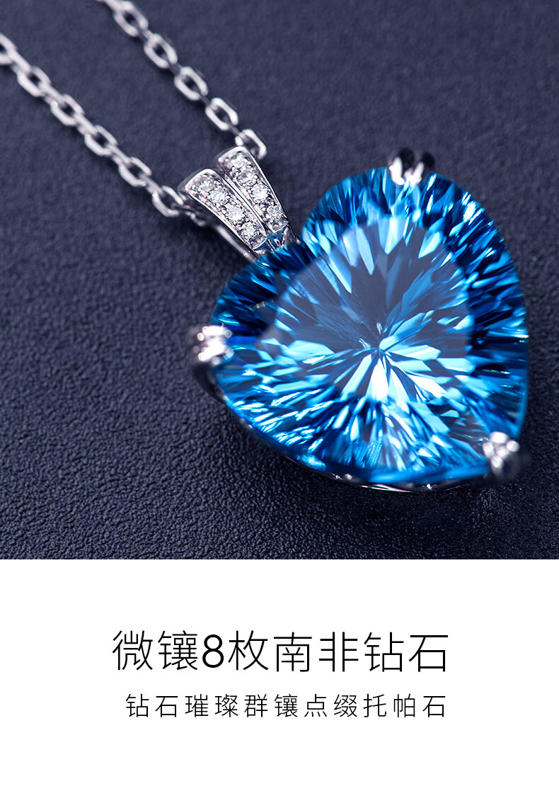 BOBANGSHI Necklace Women's Heart of the Ocean Pendant Blue Gemstone Luxury Jewelry Commemorating Valentine's Day Birthday Gift for Wife Platinum Topaz Pendant + Platinum Chain