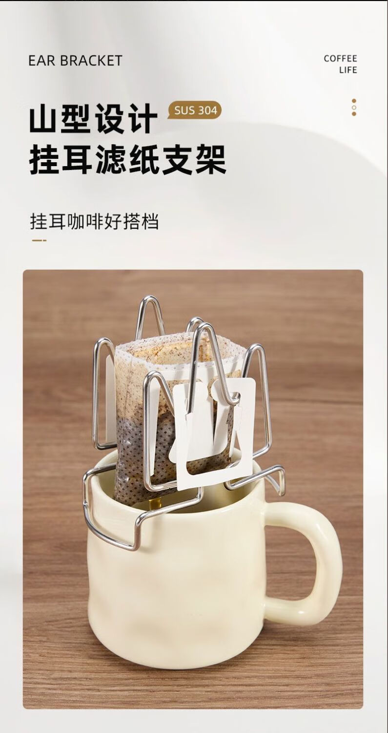 Rihan cat ear Japanese hanging ear coffee holder filter paper bag holder stainless steel hanging ear bag supports hand brewed coffee filter paper holder 304 stainless steel hanging ear coffee holder cat ear coffee holder classic style