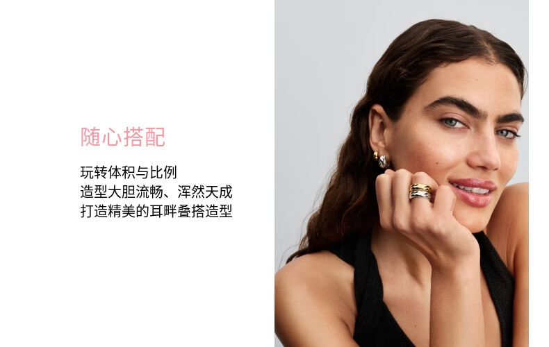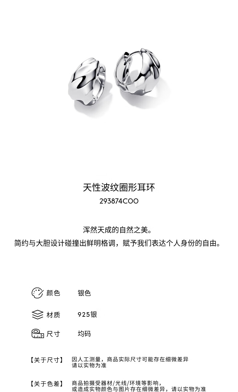 PANDORA (PANDORA) ESSENCE Natural Wave Hoop Earrings Textured Silver Personalized Minimalist European and American Style Birthday Gift Gold One Size