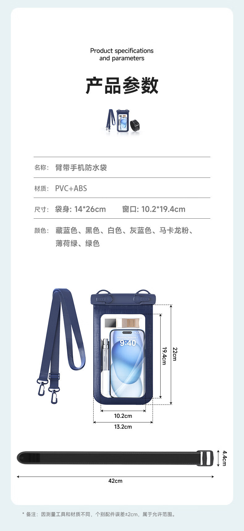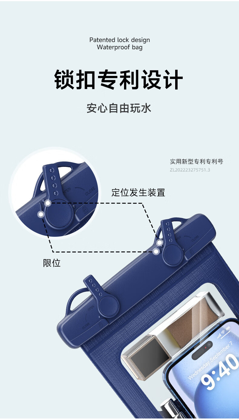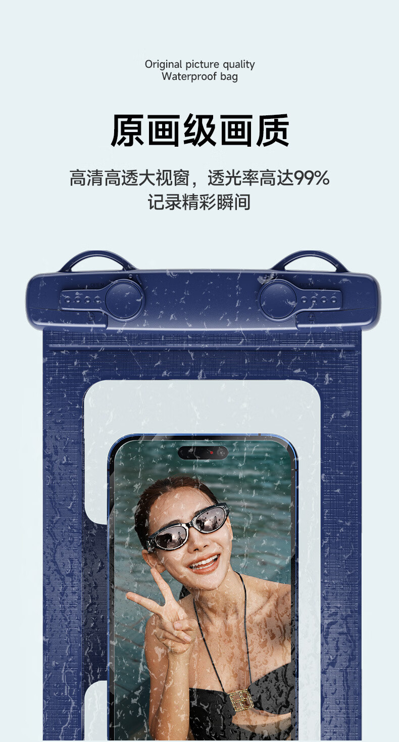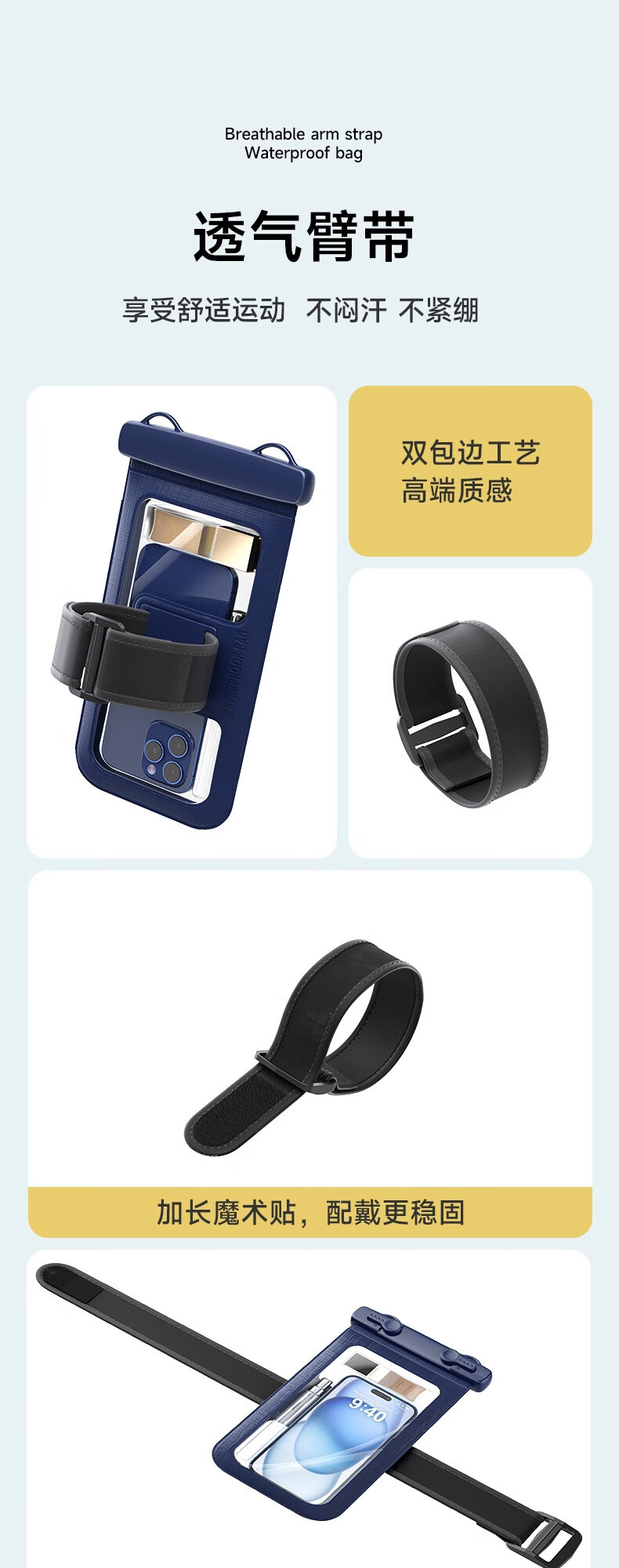 Swimming mobile phone waterproof bag arm hanging sealed protective cover arm bag arm wrist snorkeling special touch screen gray blue selfie style丨patented hand rest