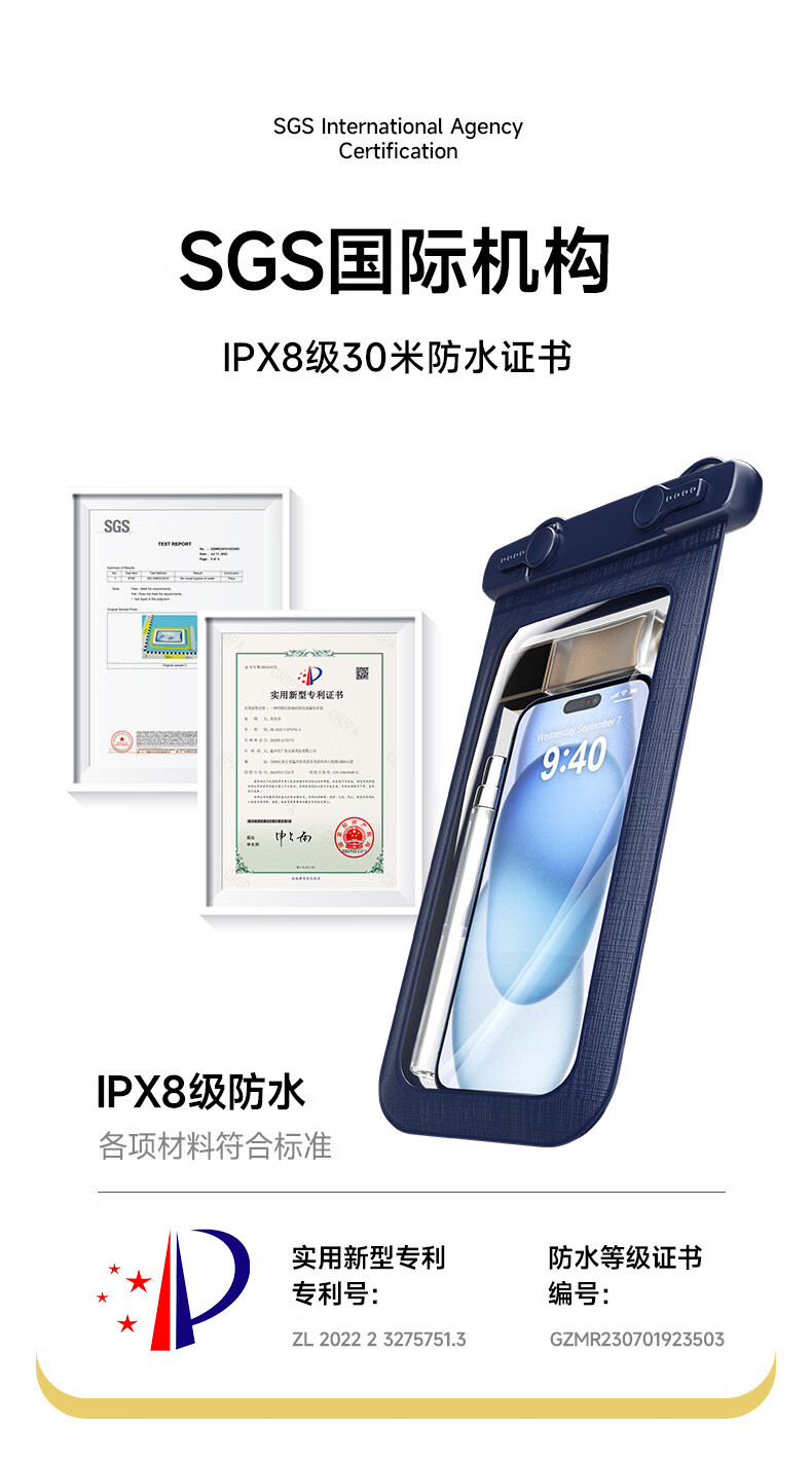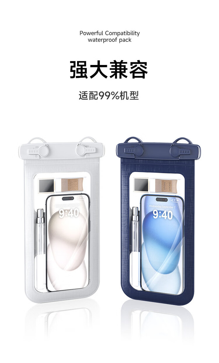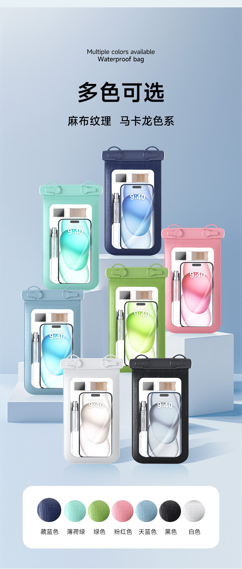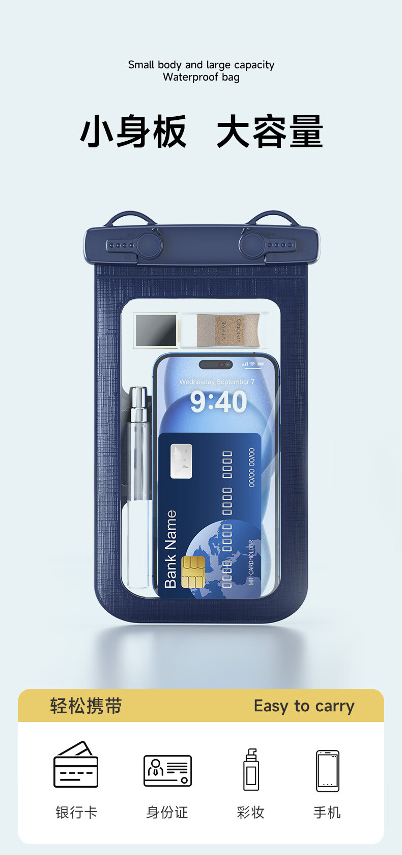 Swimming mobile phone waterproof bag arm hanging sealed protective cover arm bag arm wrist snorkeling special touch screen gray blue selfie style丨patented hand rest
