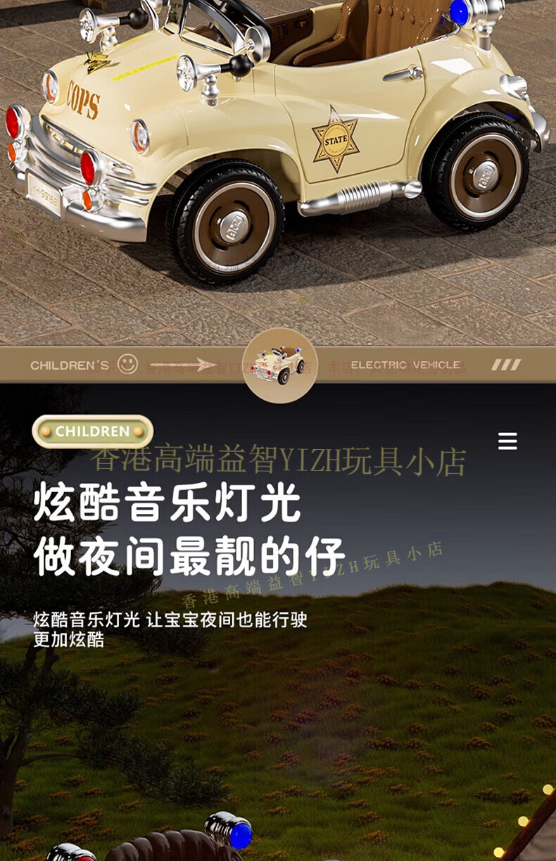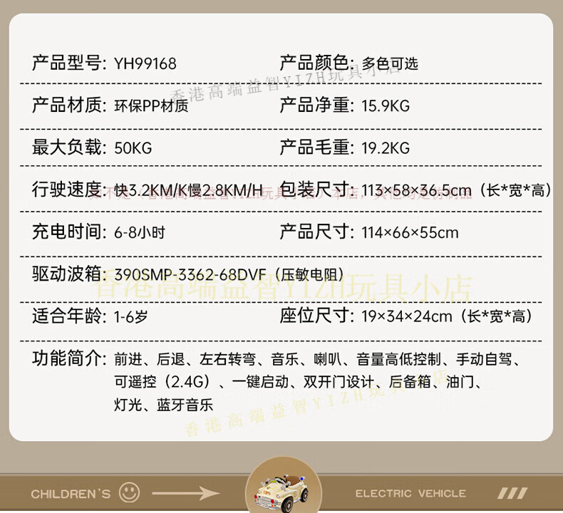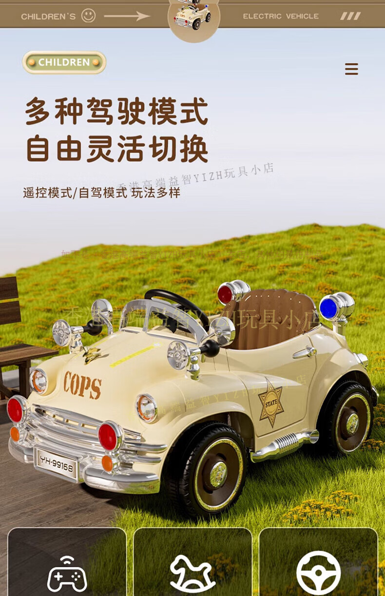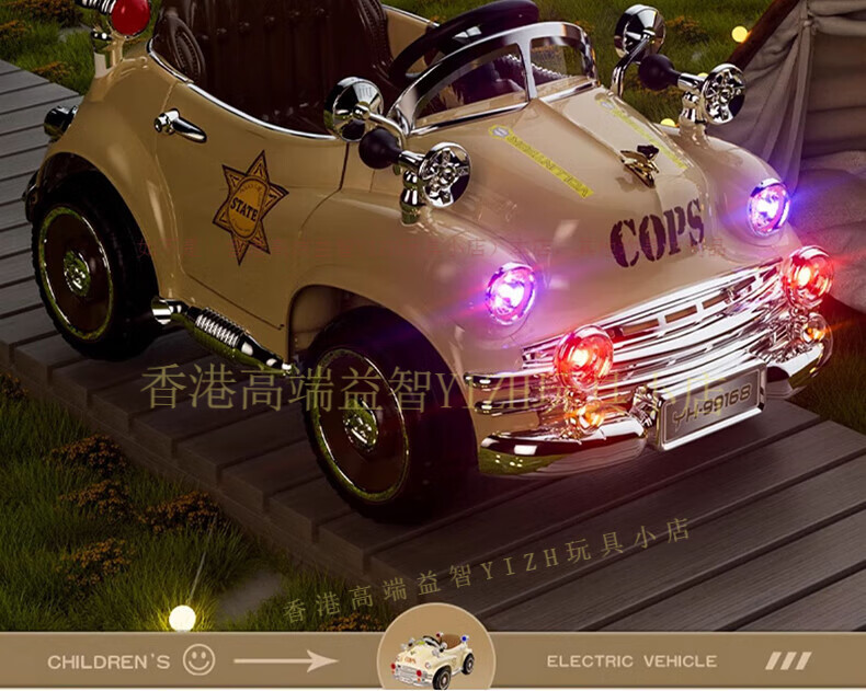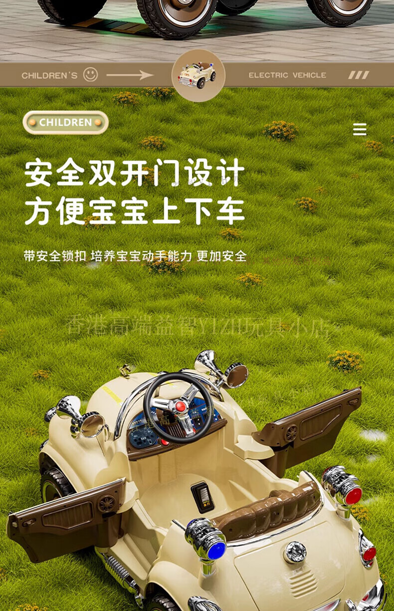 HTI children's electric car remote control car four-wheel drive can sit four-wheeled car children's classic car baby baby toy stroller milk white four-wheel drive