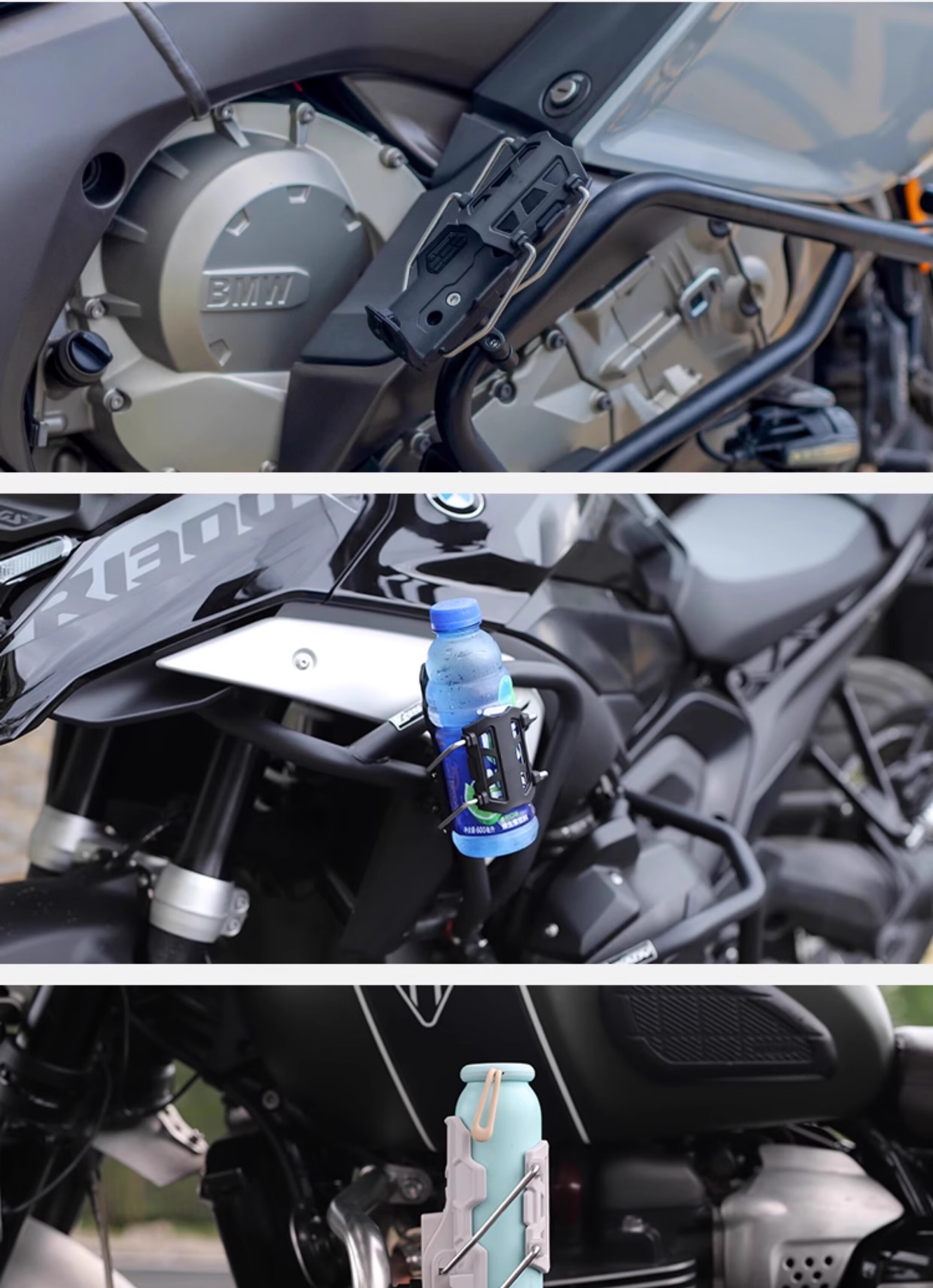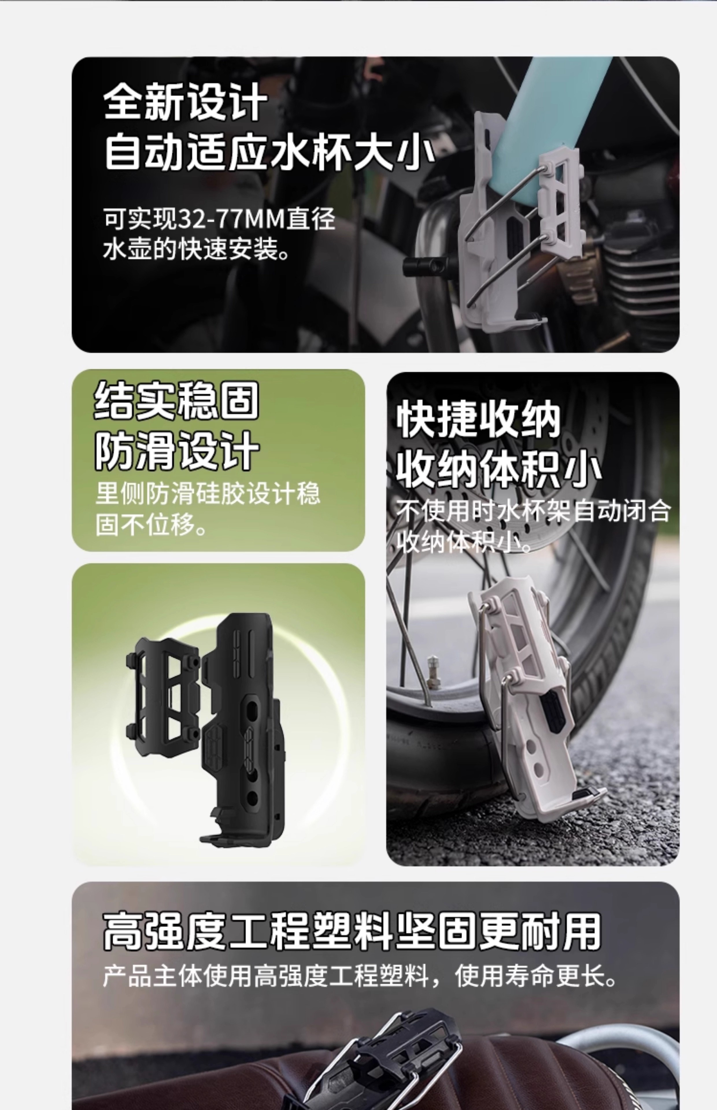 Adaptive water cup holder, motorcycle electric vehicle guard bar, universal water bottle holder, rotatable folding water cup holder, automatic adjustment water cup holder, dark night black, universal guard bar/handlebar/crossbar, etc.
