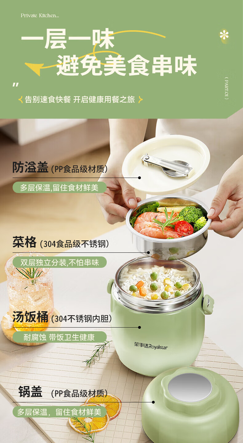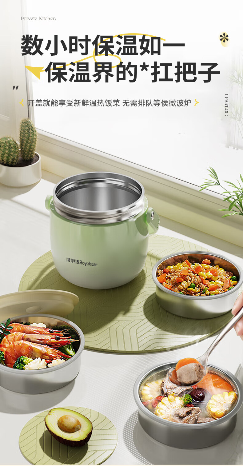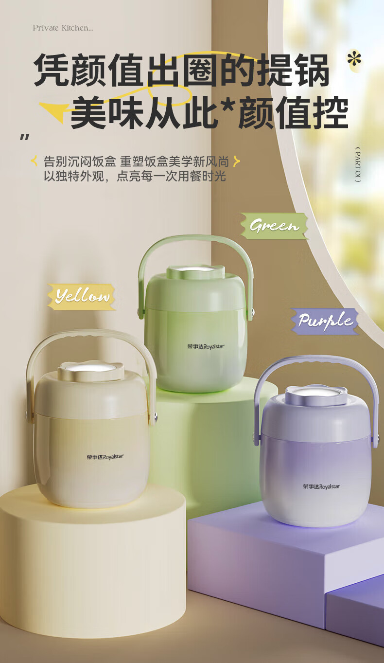 Royalstar Insulated Lunch Box 12 hours long thermal insulation 304 stainless steel vacuum insulated bucket portable lunch box for office workers and students with thermal bag, Sushu Purple 2 layers 1.5L