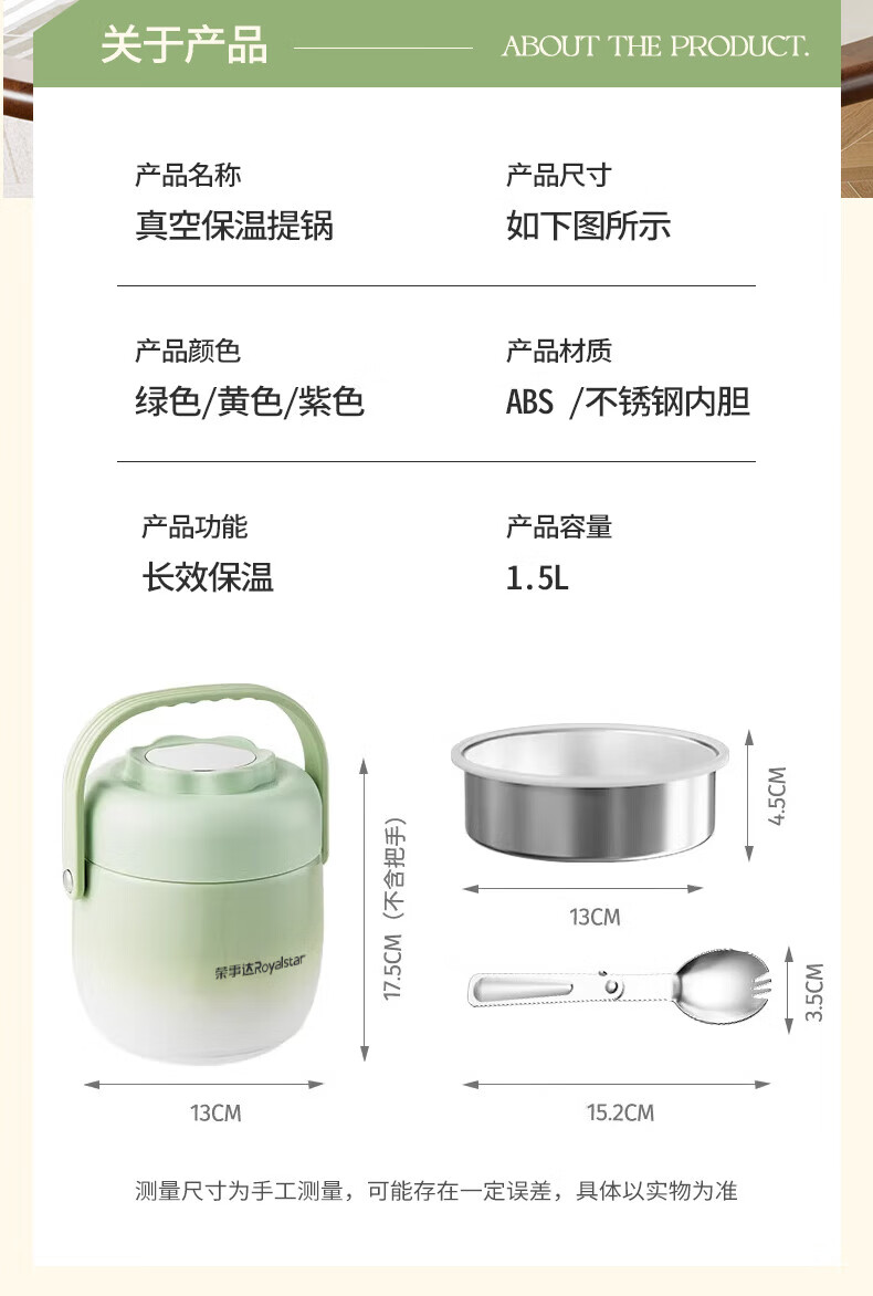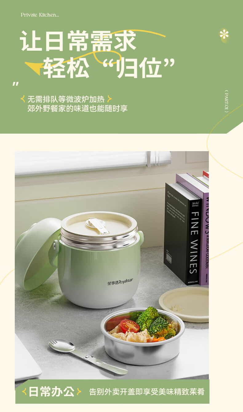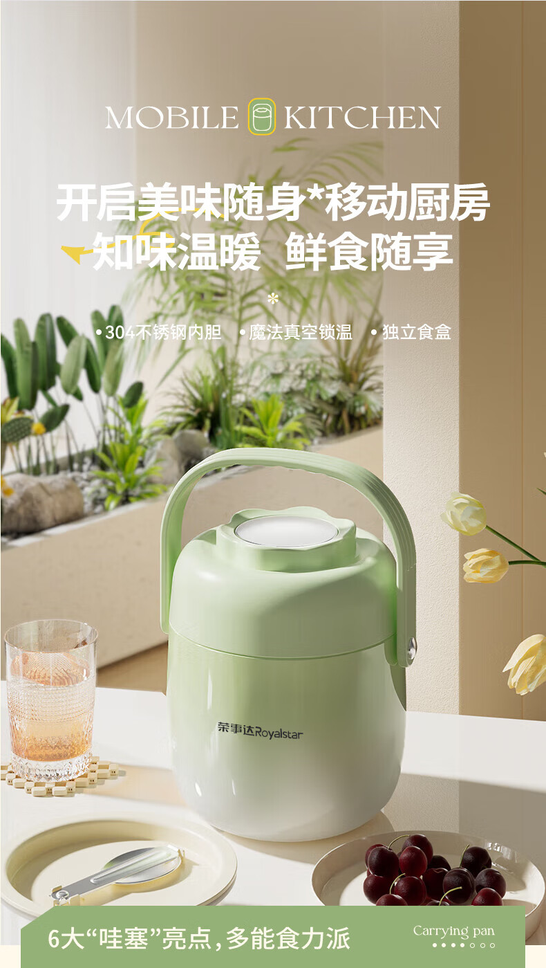 Royalstar Insulated Lunch Box 12 hours long thermal insulation 304 stainless steel vacuum insulated bucket portable lunch box for office workers and students with thermal bag, Sushu Purple 2 layers 1.5L