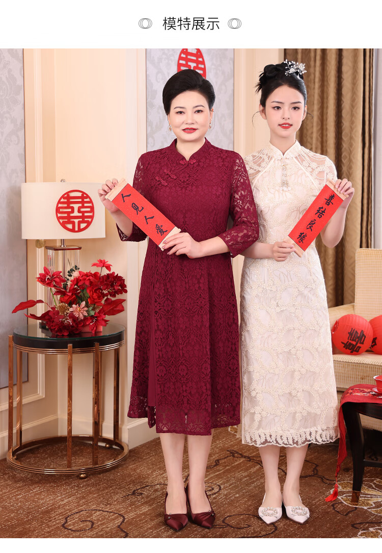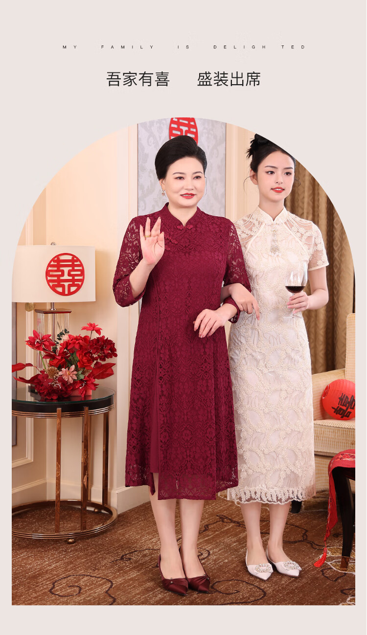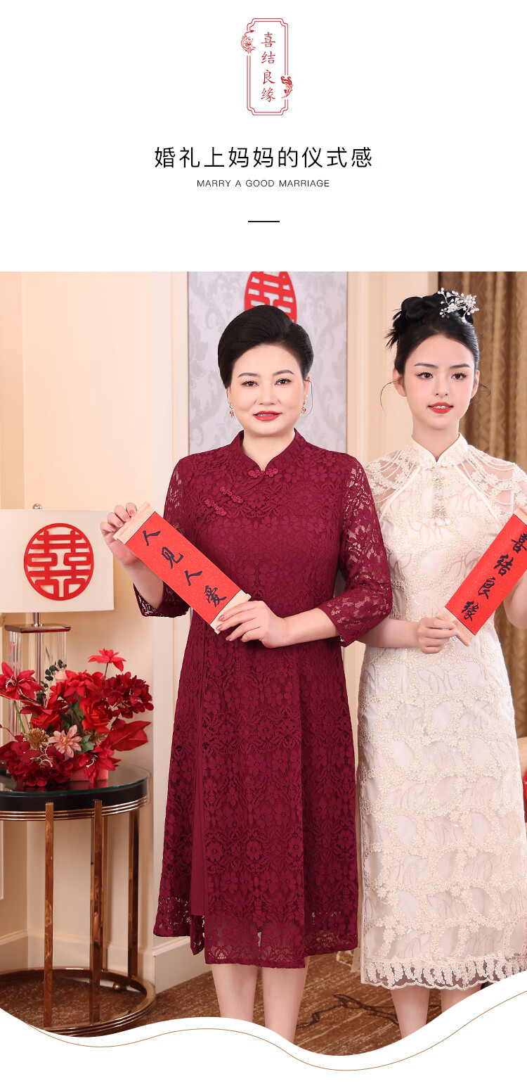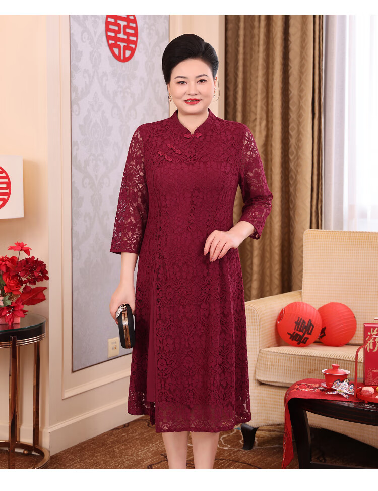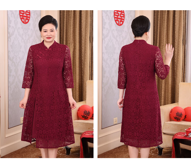 Saiman Die Fat Mom Extra Large Size Wedding Dress Little Xi Granny Spring and Autumn Dress Plus Fat Plus Size Improved Version Dress Maroon 2XL 135-150Jin Jin is equal to 0.5 kg
