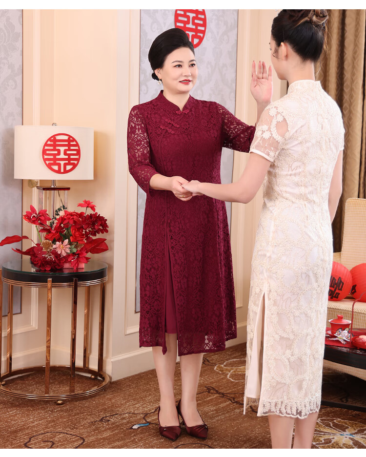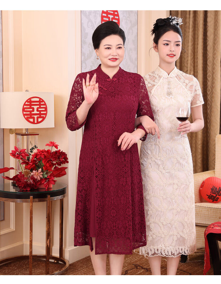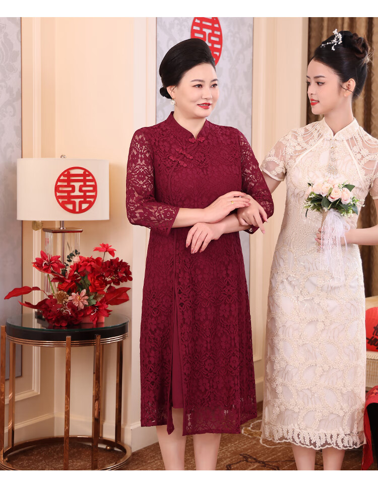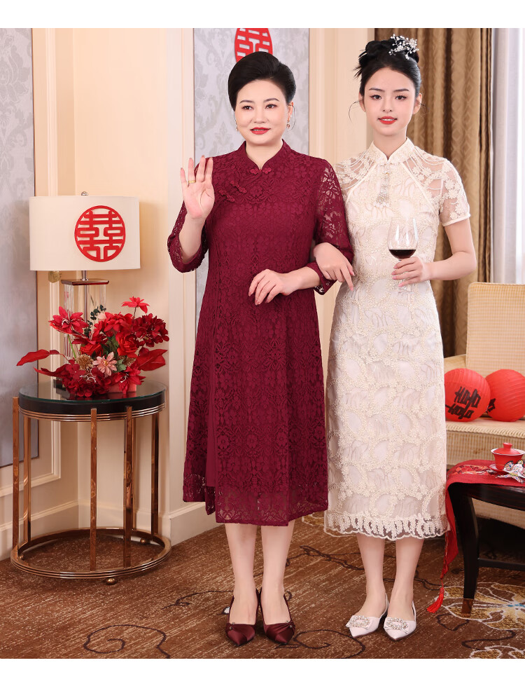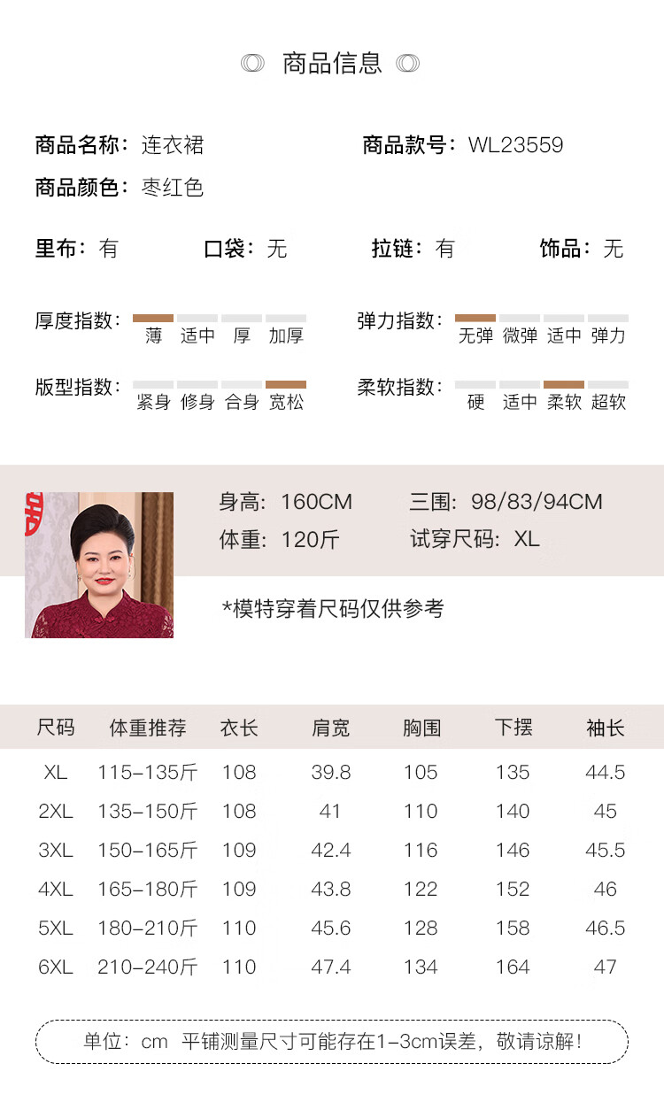 Saiman Die Fat Mom Extra Large Size Wedding Dress Little Xi Granny Spring and Autumn Dress Plus Fat Plus Size Improved Version Dress Maroon 2XL 135-150Jin Jin is equal to 0.5 kg