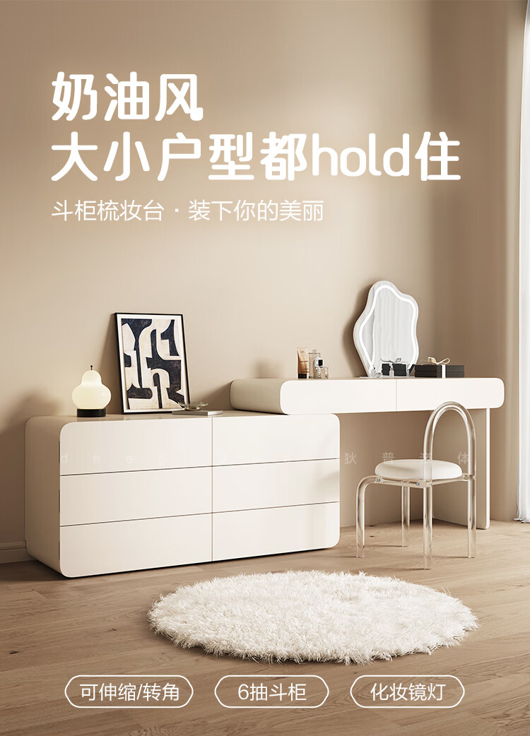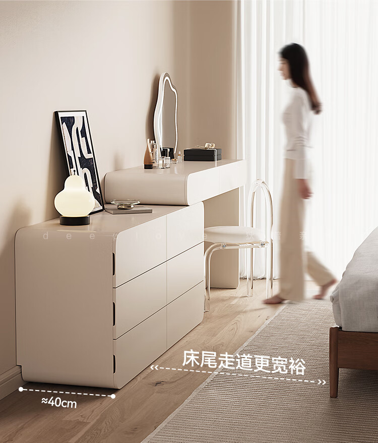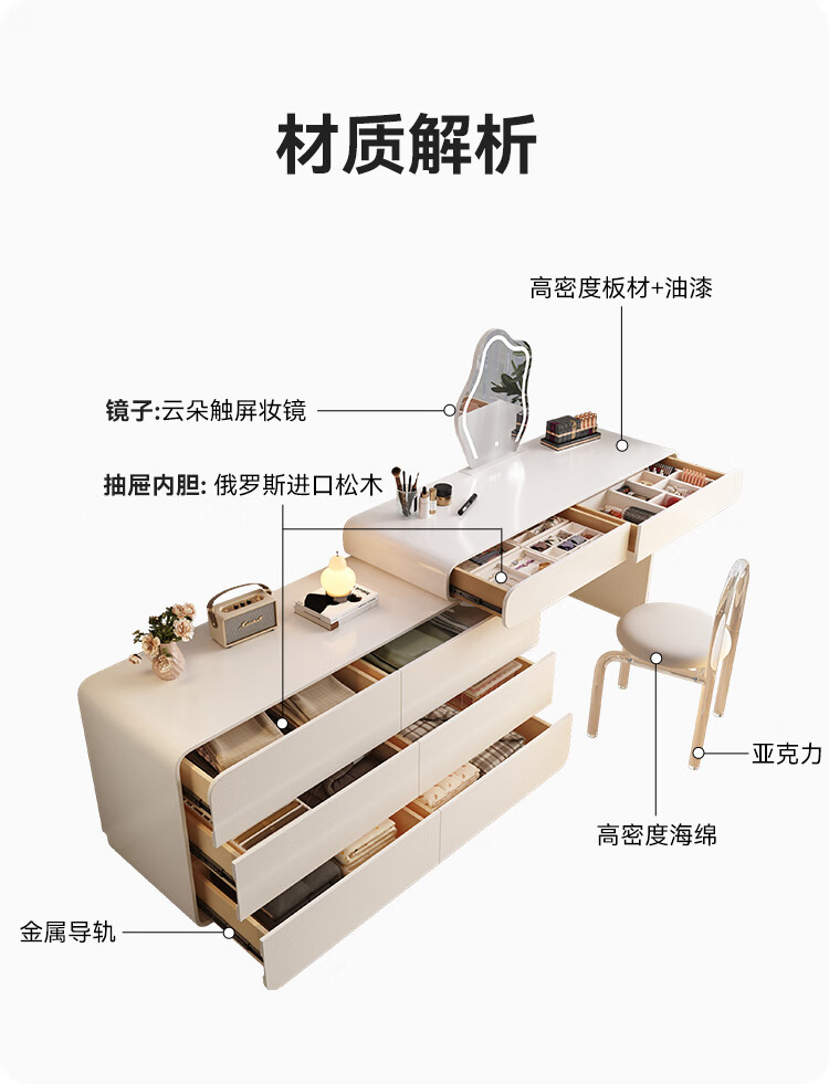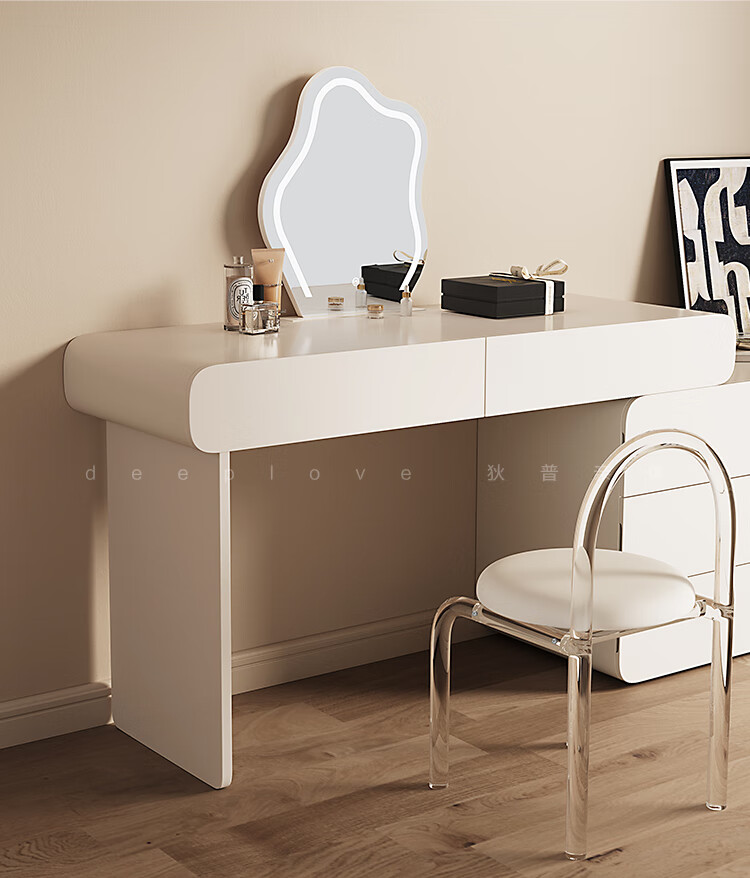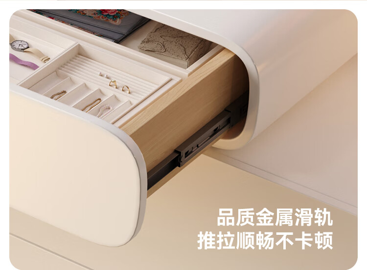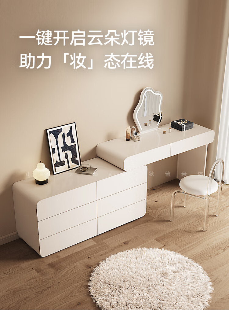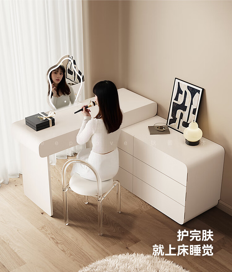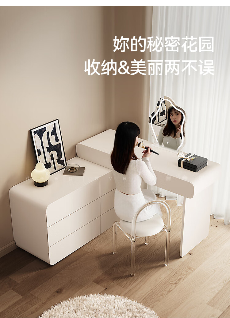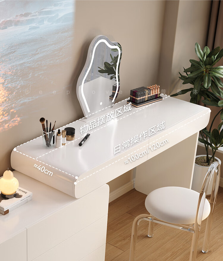 Dipu cream style one-piece dressing table bedroom small apartment storage cabinet light luxury Internet celebrity makeup table T12 bay window table 1m dressing table + 1.2m cupboard + acrylic makeup stool + mirror