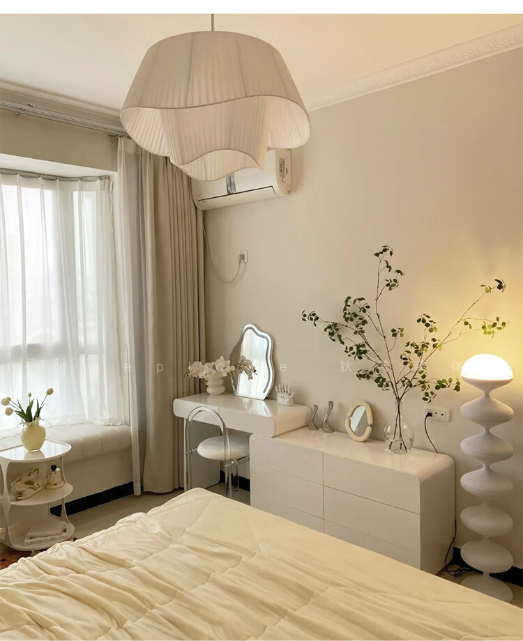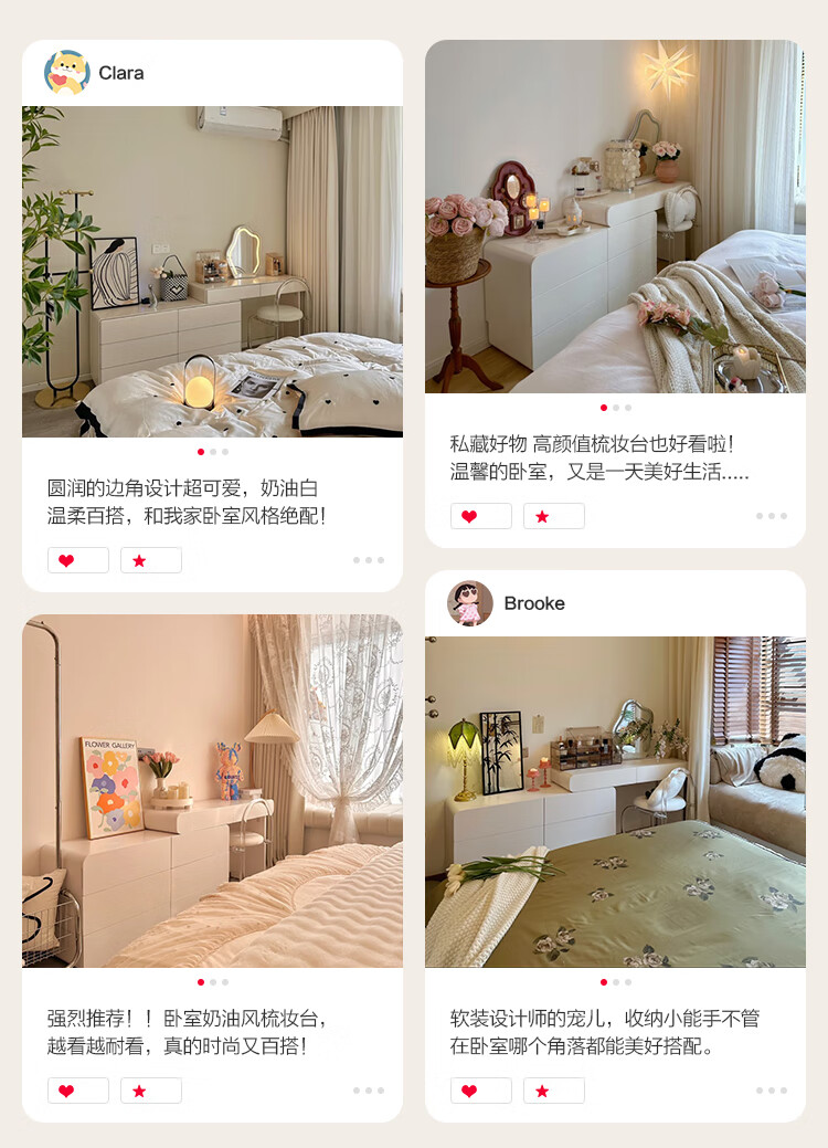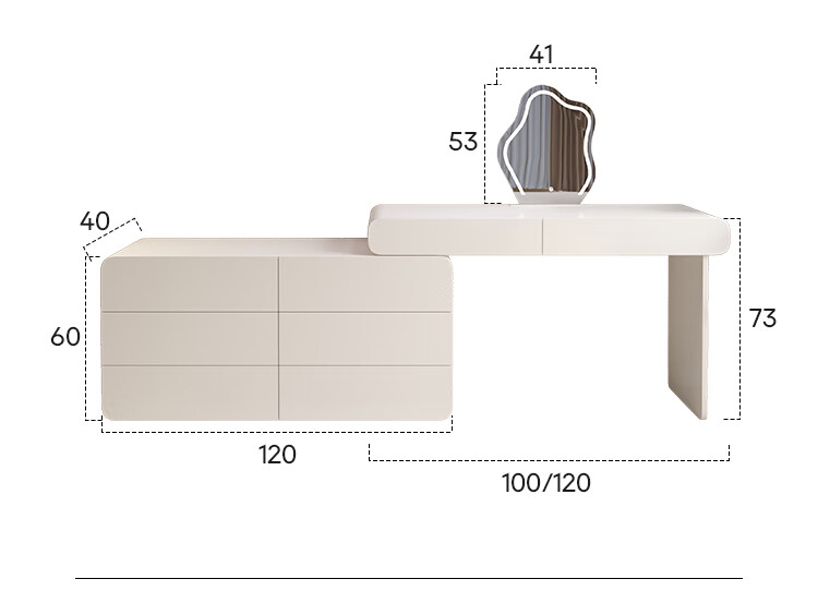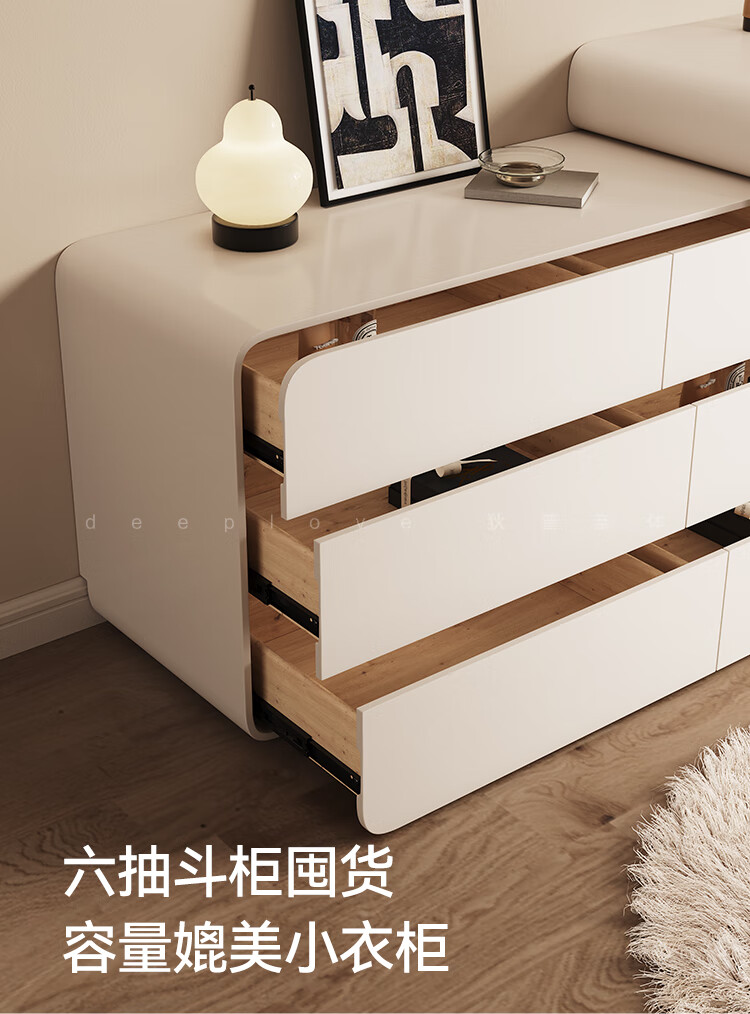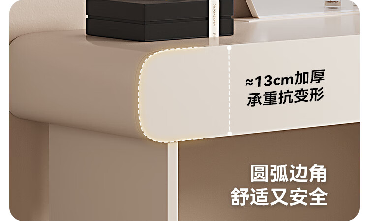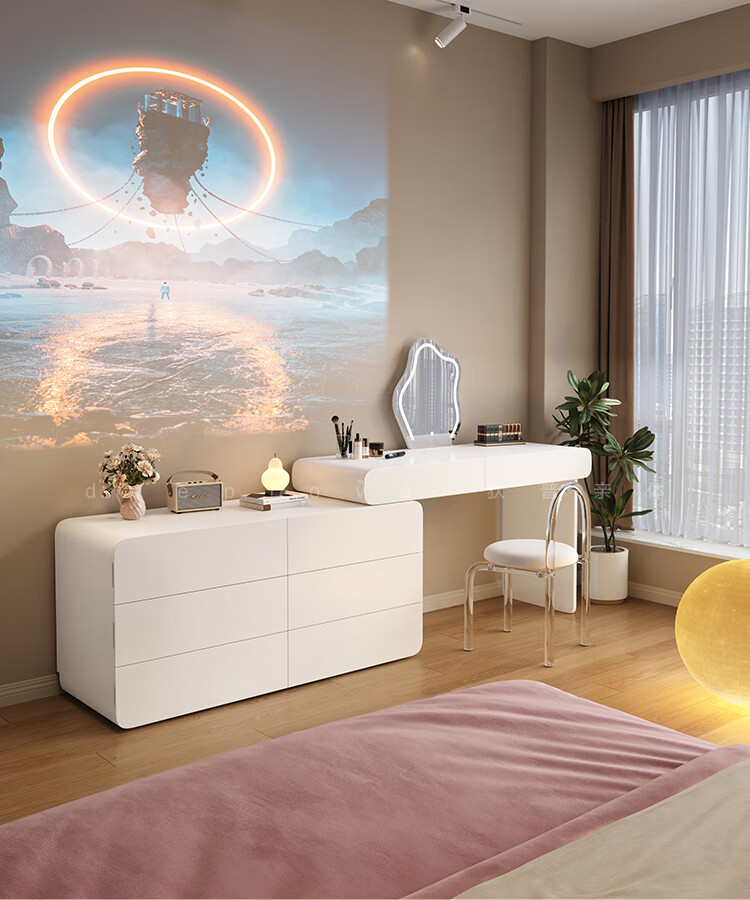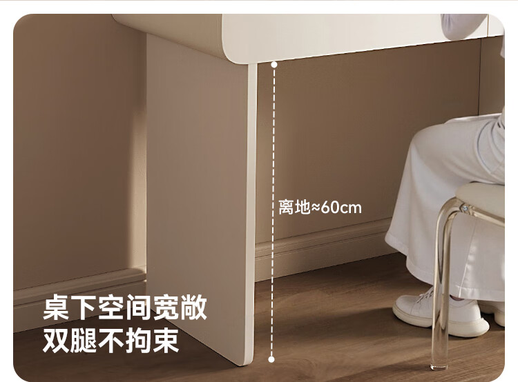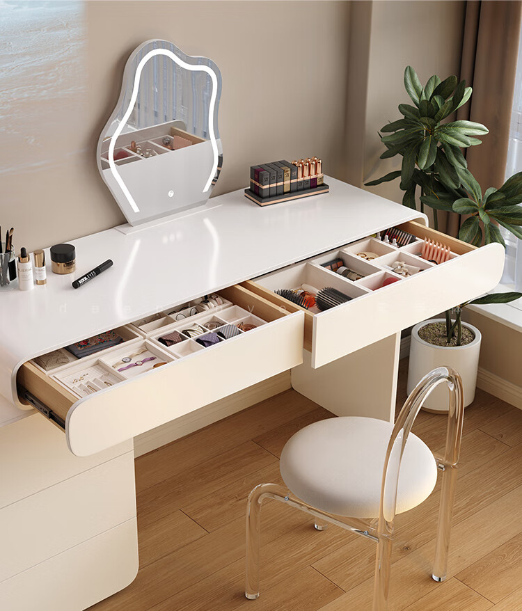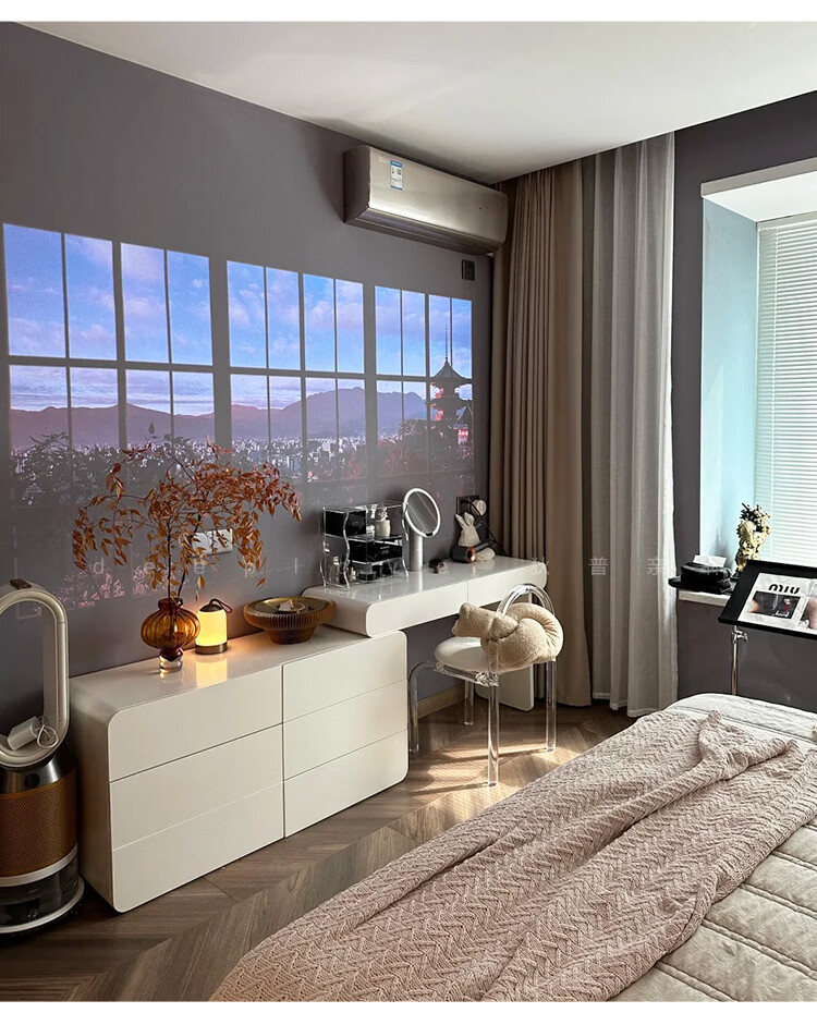 Dipu cream style one-piece dressing table bedroom small apartment storage cabinet light luxury Internet celebrity makeup table T12 bay window table 1m dressing table + 1.2m cupboard + acrylic makeup stool + mirror