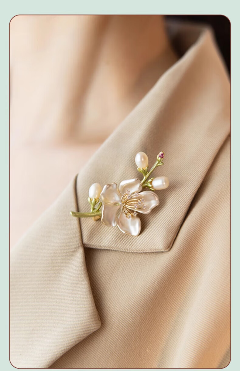 LANSILL magnolia brooch, high-end women's light luxury, freshwater pearl corsage, practical birthday gift for wife and girlfriend, freshwater pearl magnolia brooch, exquisite gift box