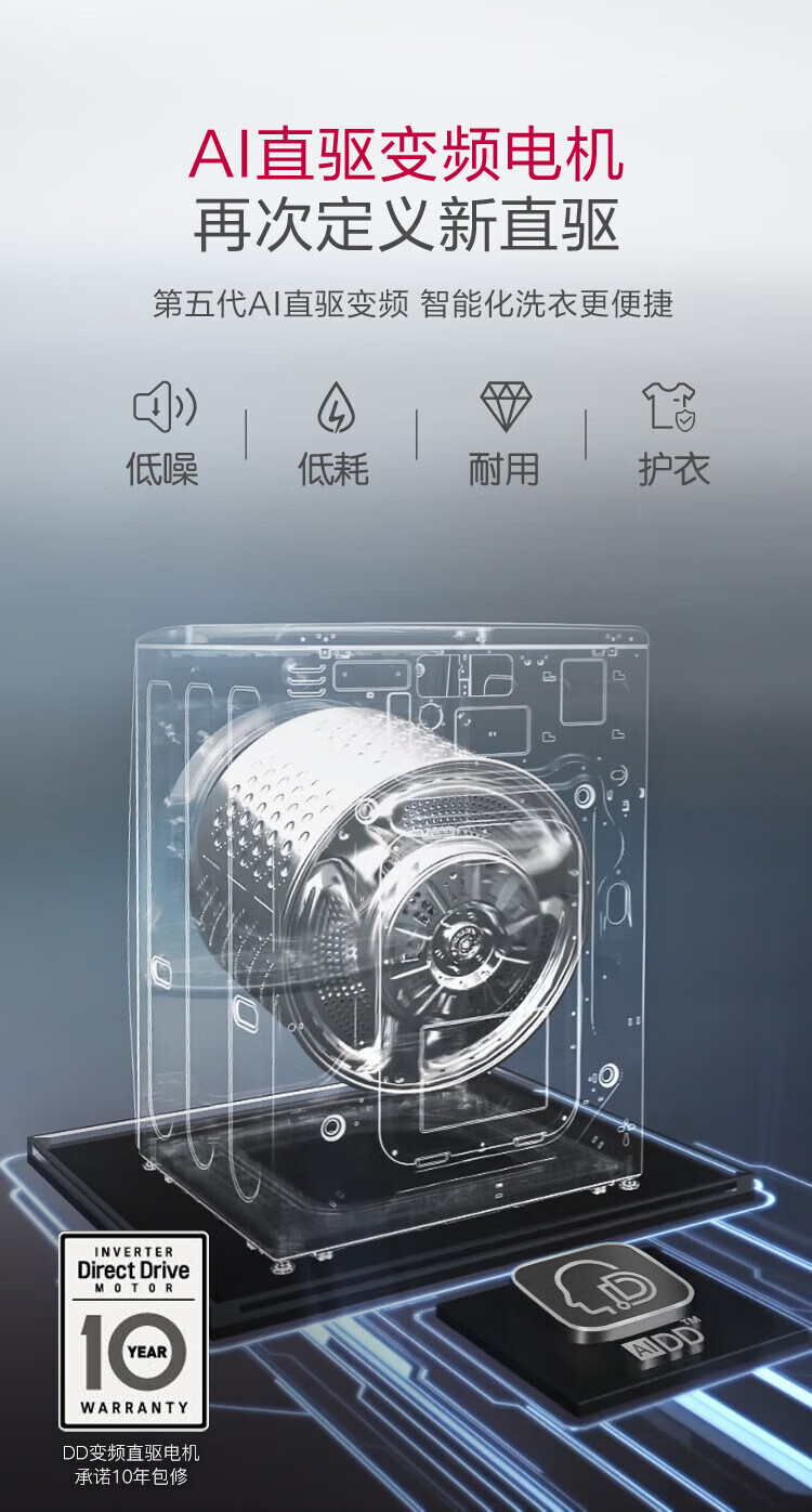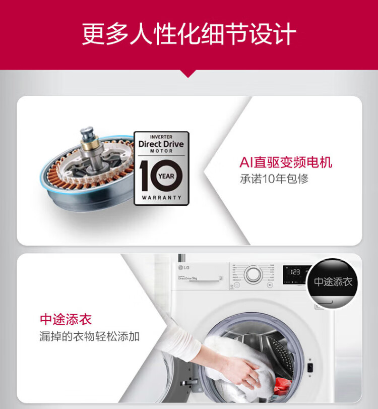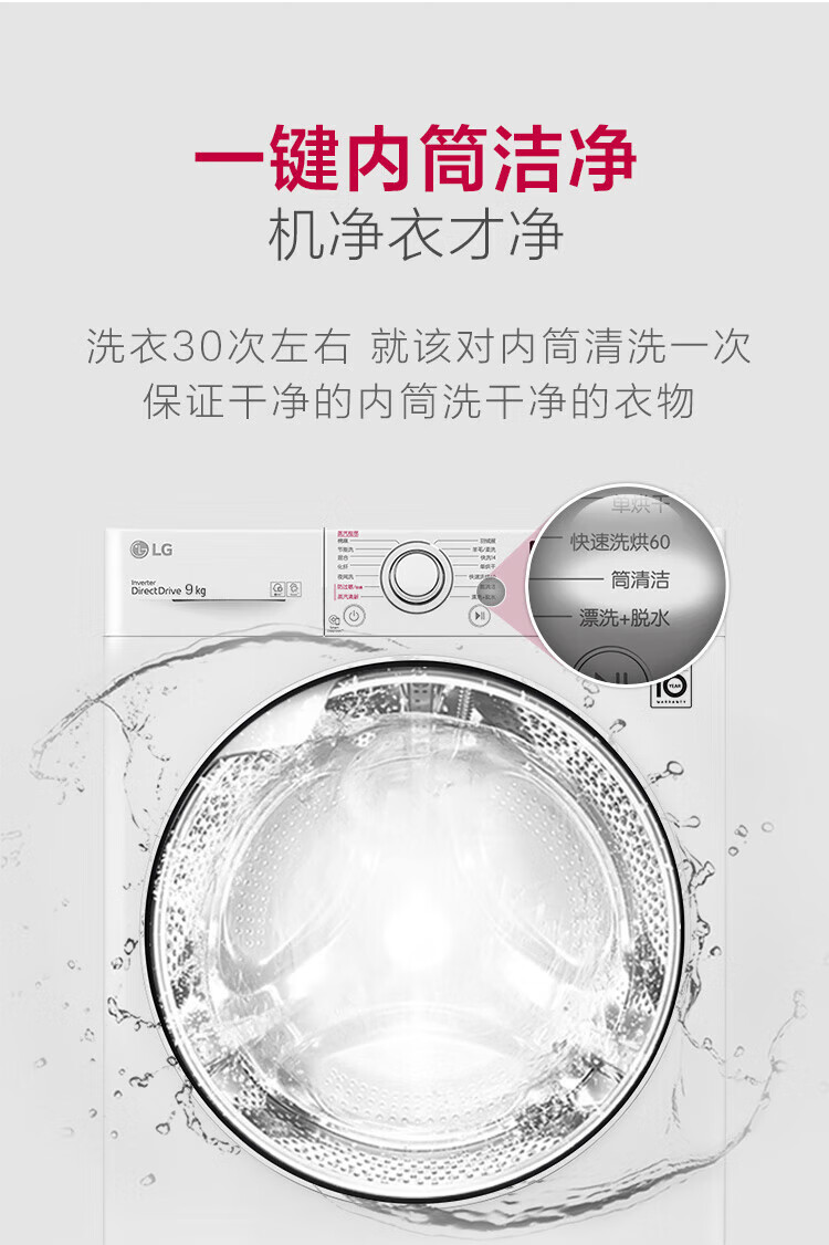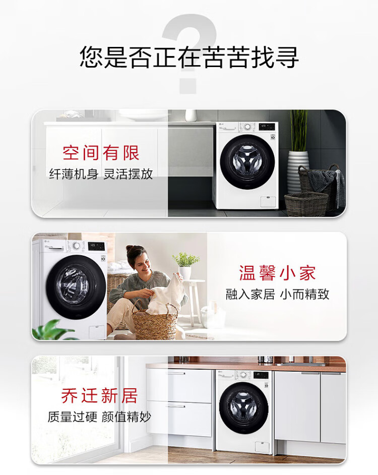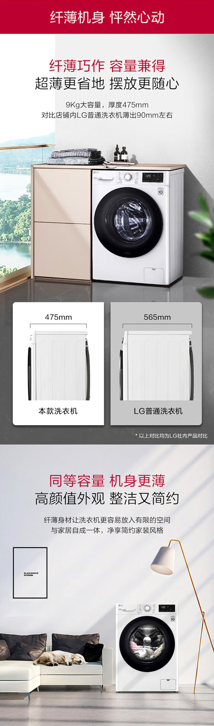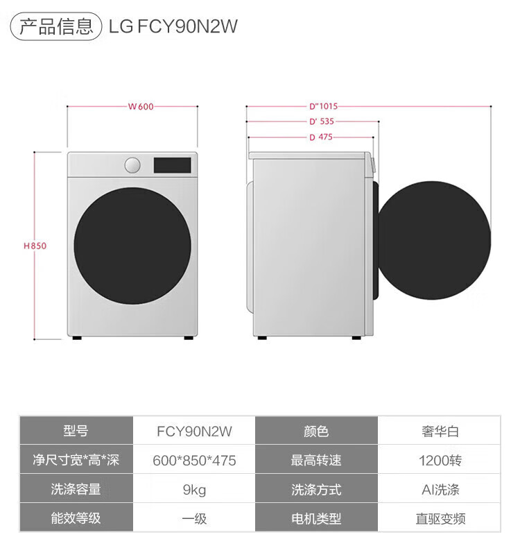 LG 9kg drum washing machine fully automatic 475mm ultra-thin body AI direct drive inverter washing machine for home small apartment white FCY90N2W luxury white