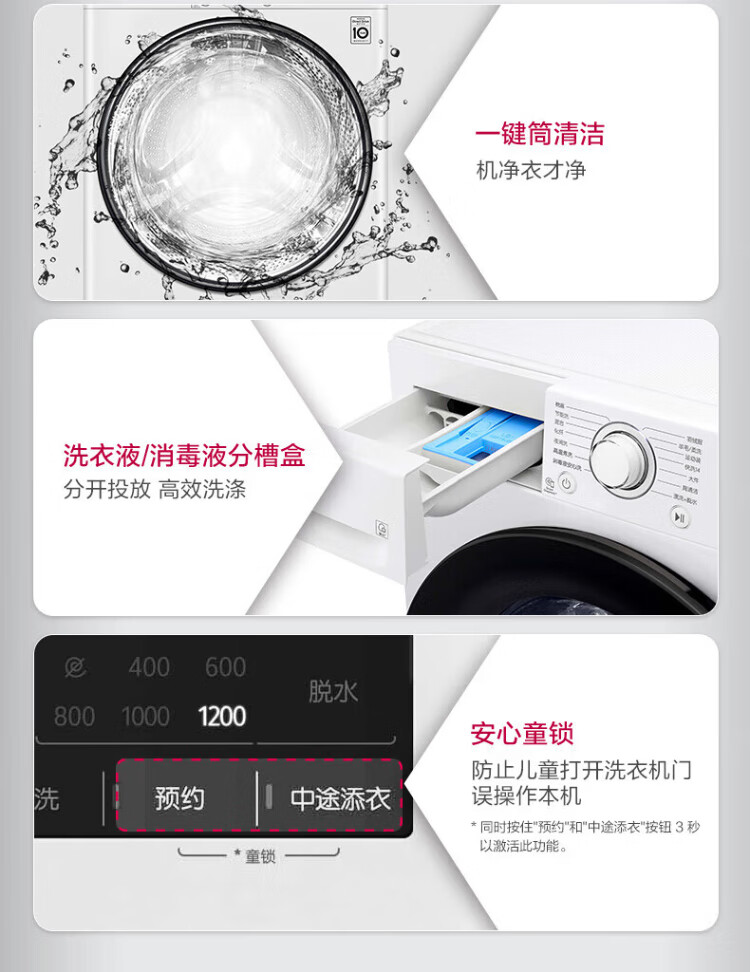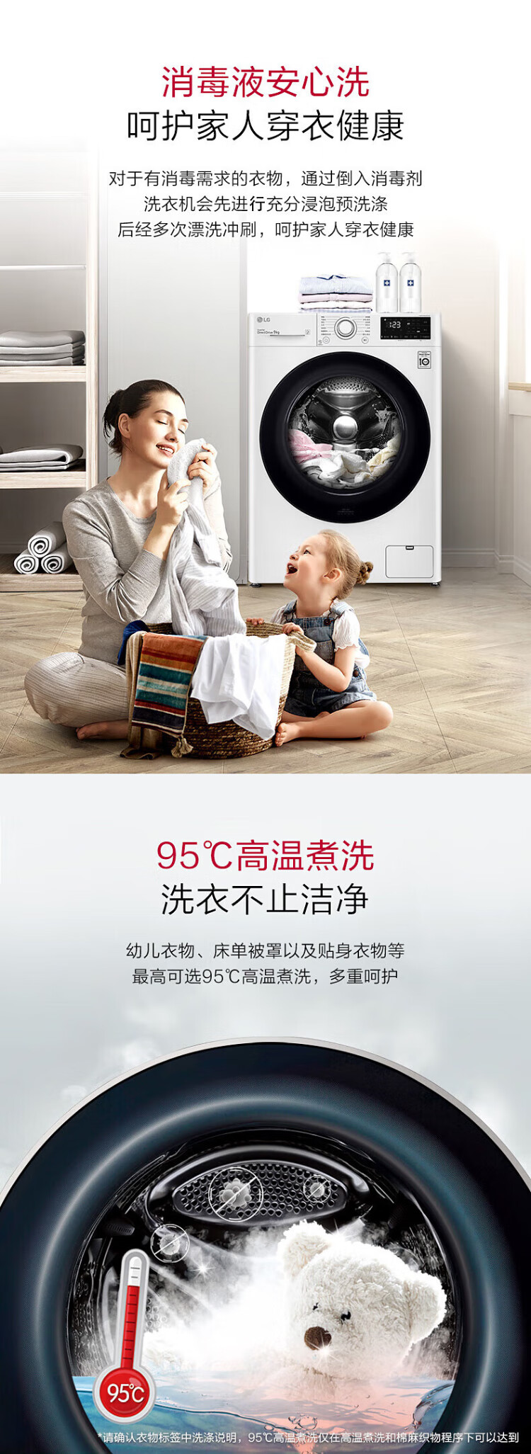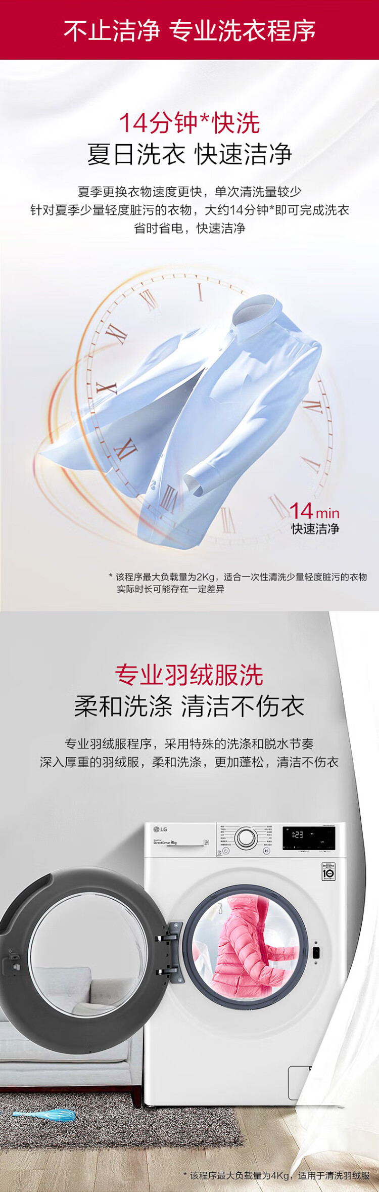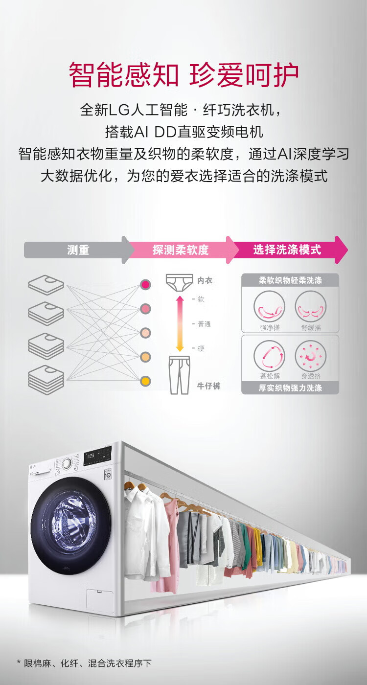 LG 9kg drum washing machine fully automatic 475mm ultra-thin body AI direct drive inverter washing machine for home small apartment white FCY90N2W luxury white