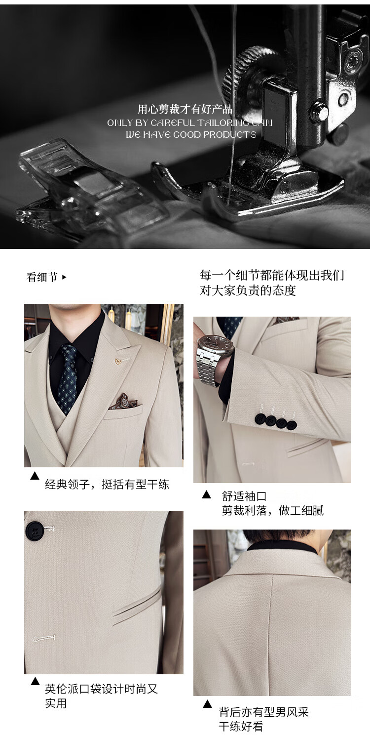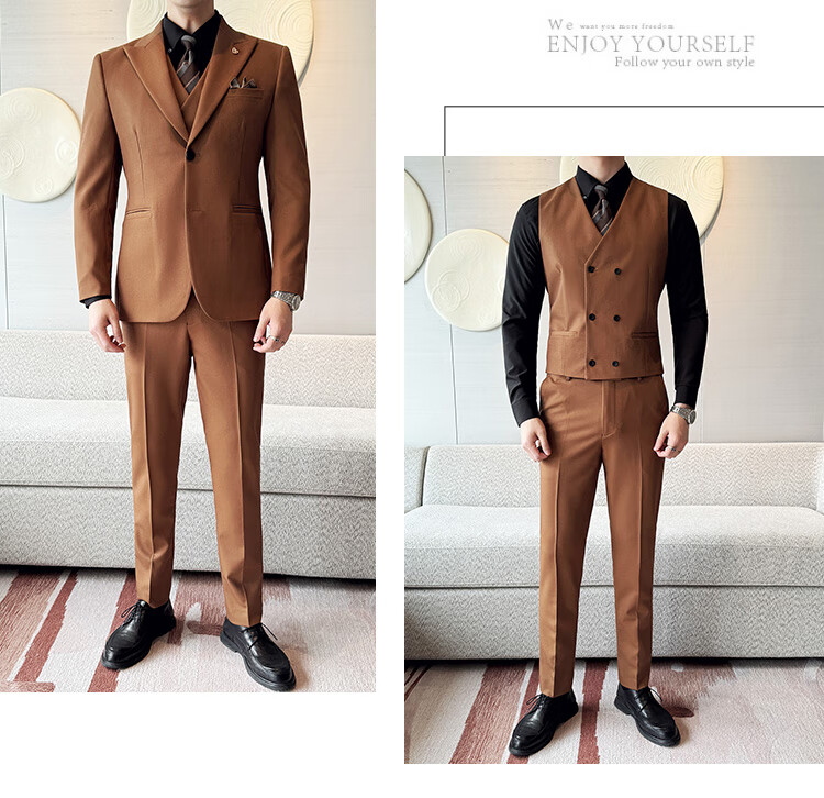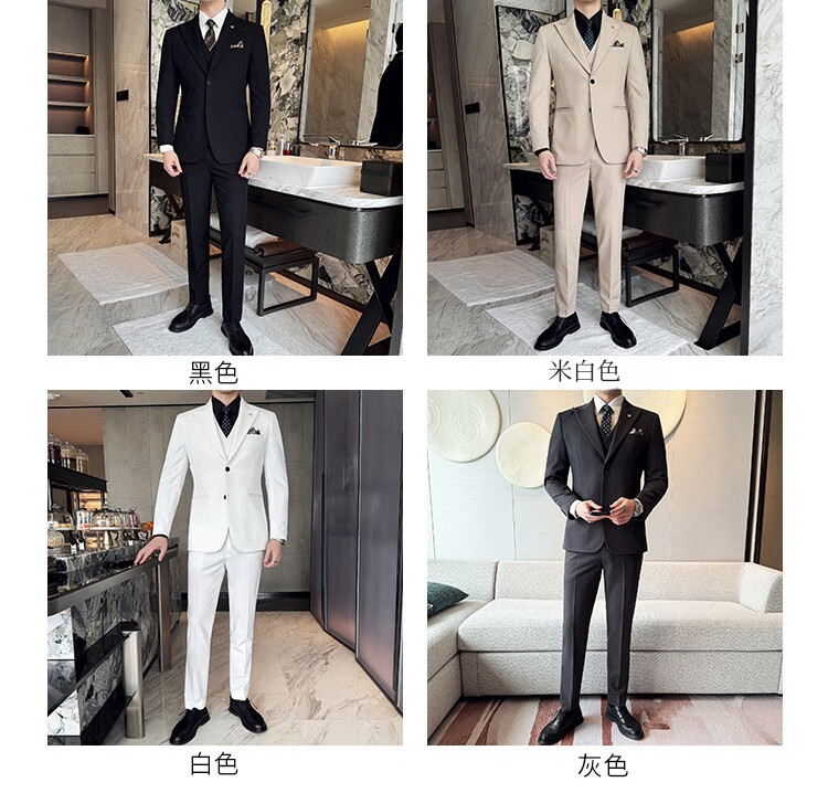 Hengyuanxiang men's lapel collar two-button suit three-piece handsome groom wedding dress host stage performance suit black XL 52