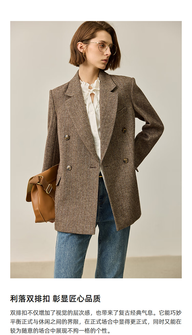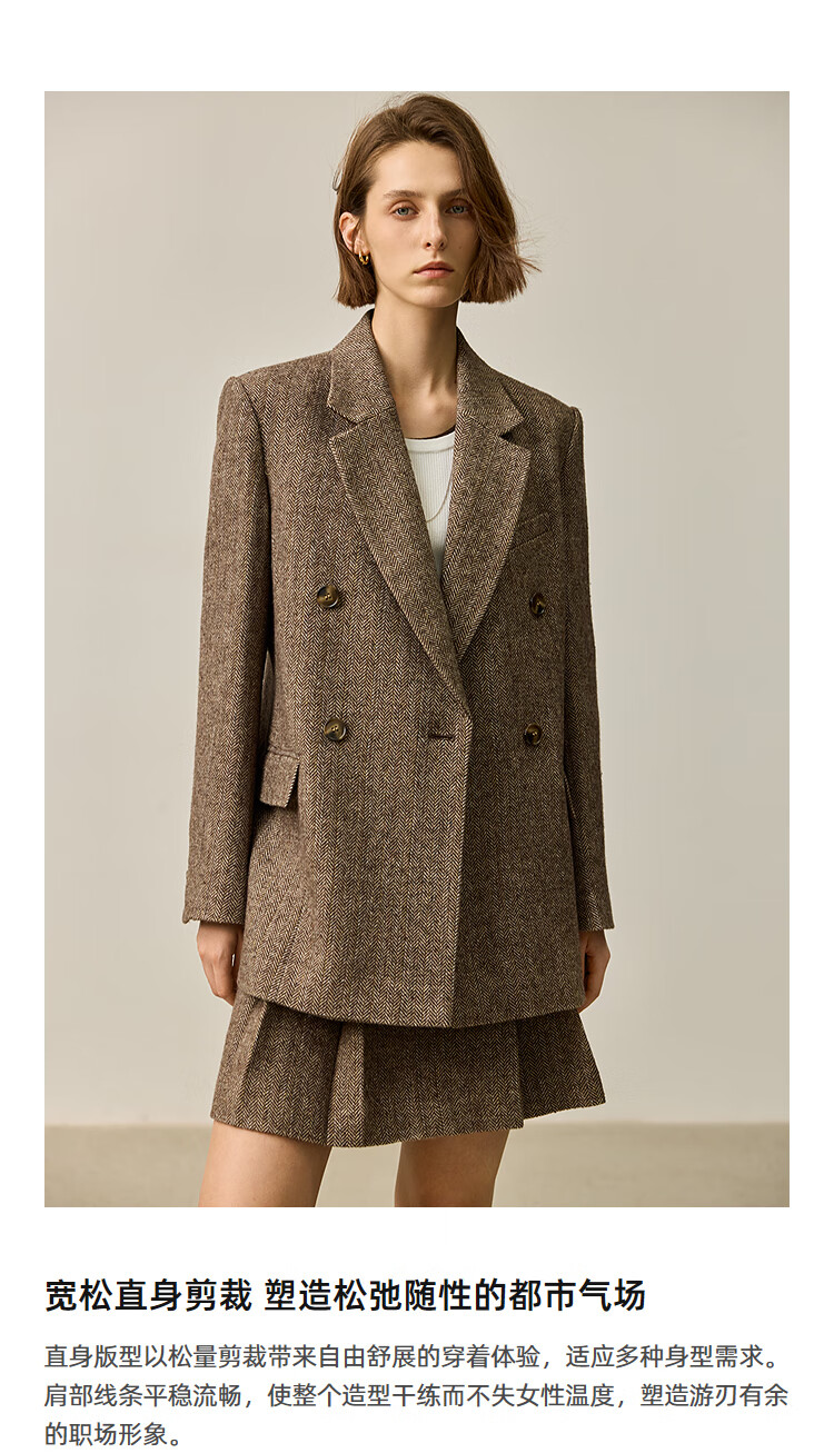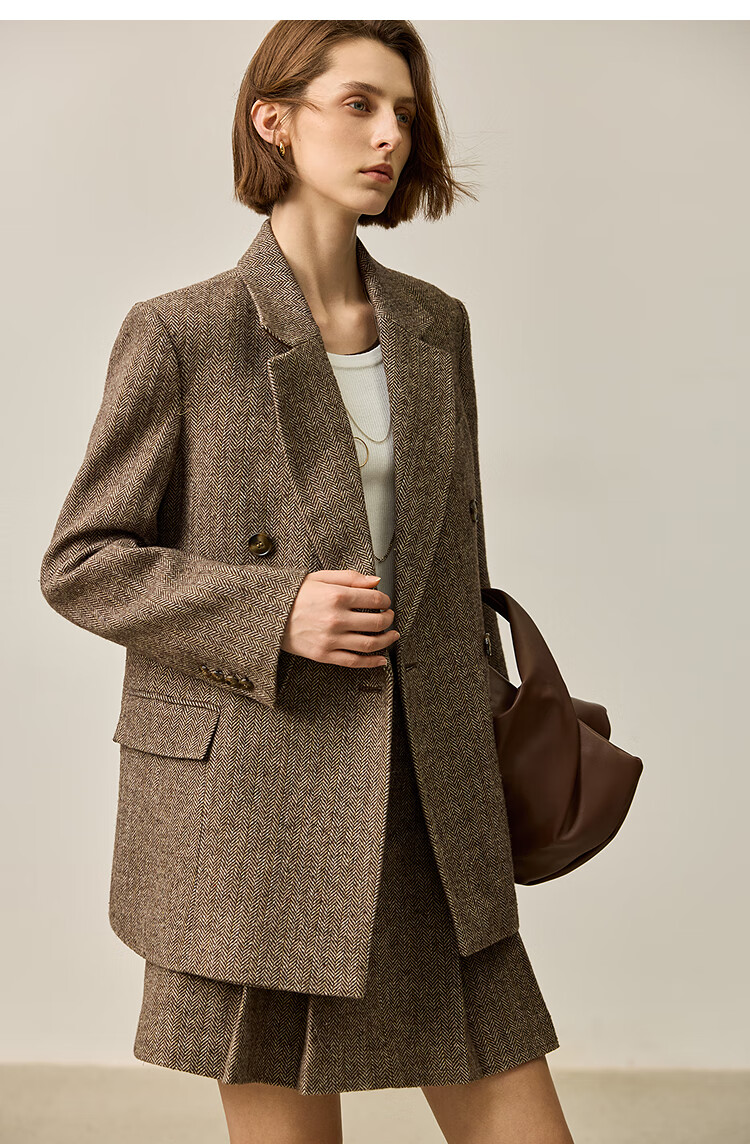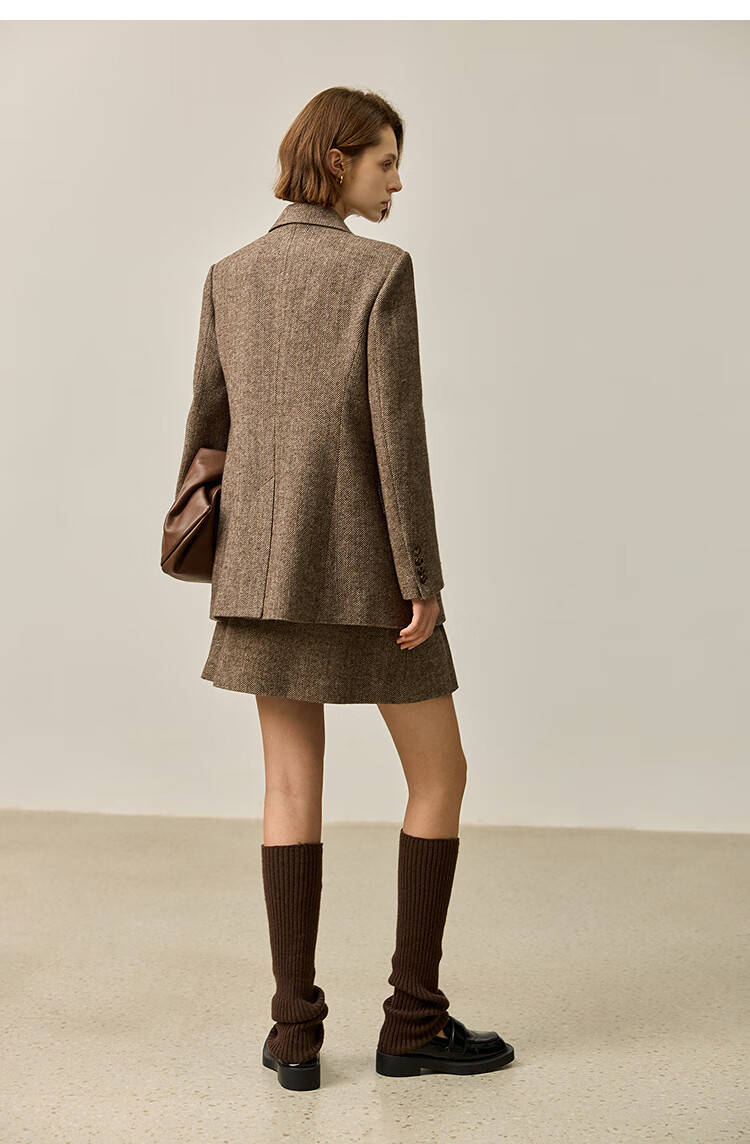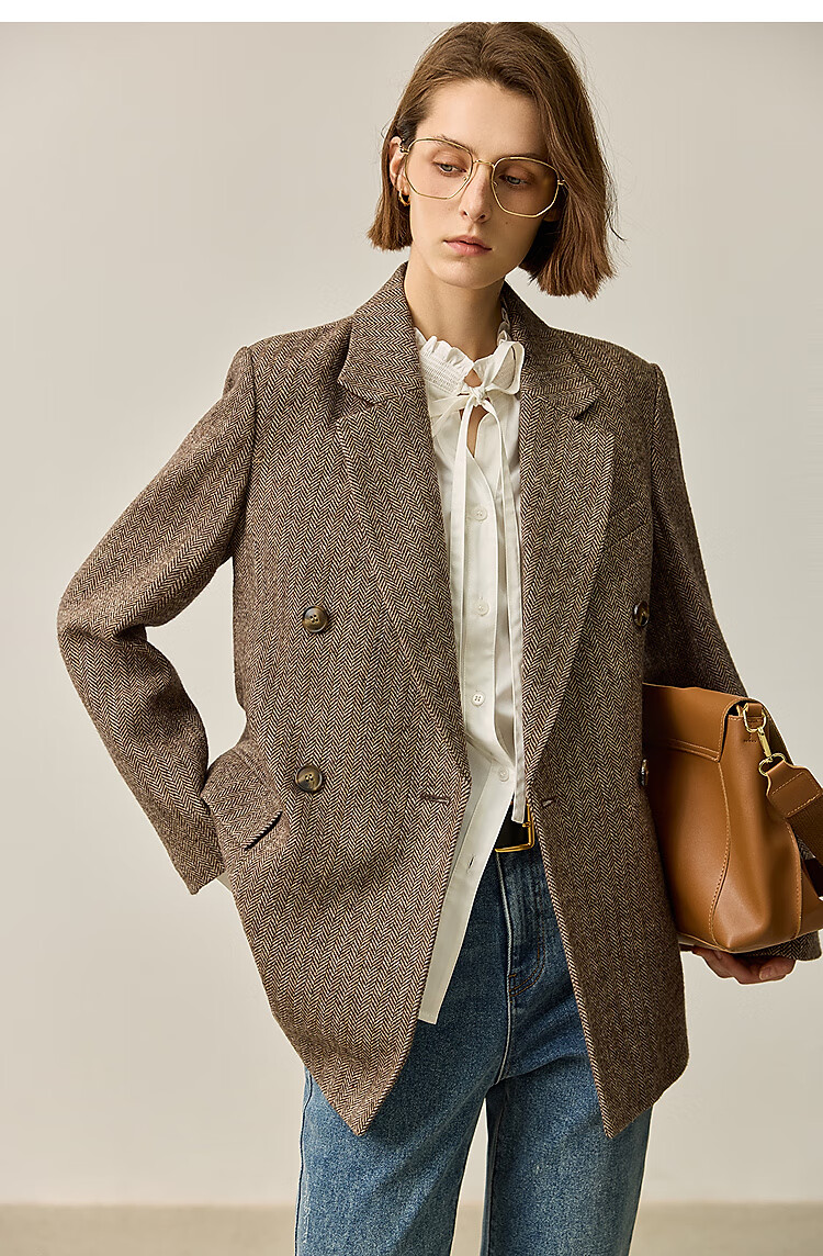 LILY2025 new autumn women's sheep wool blend old money style herringbone lapel silhouette commuter suit jacket 732 chocolate L