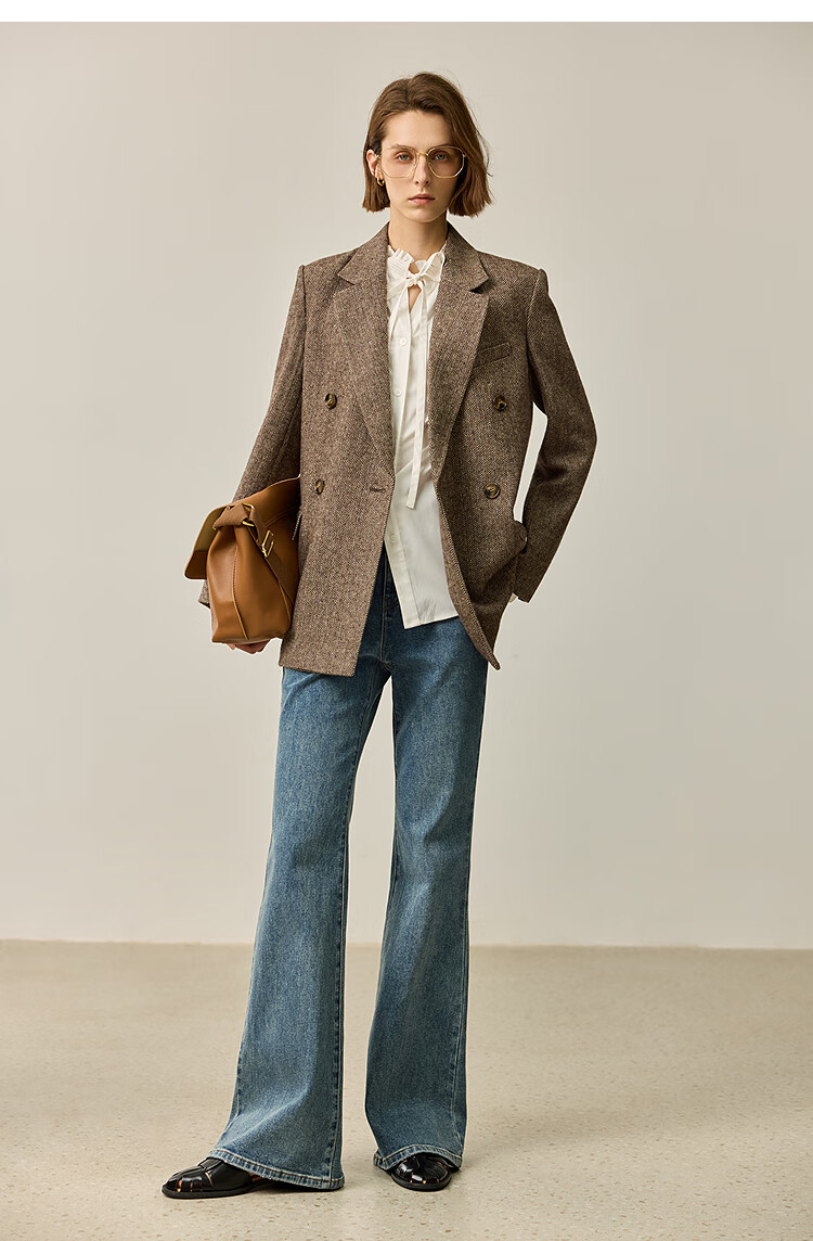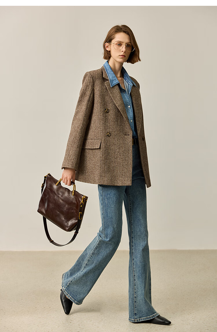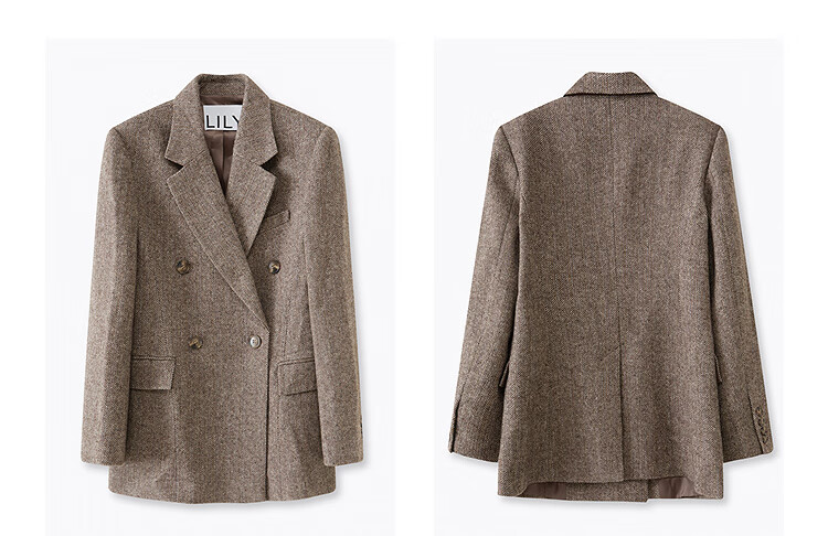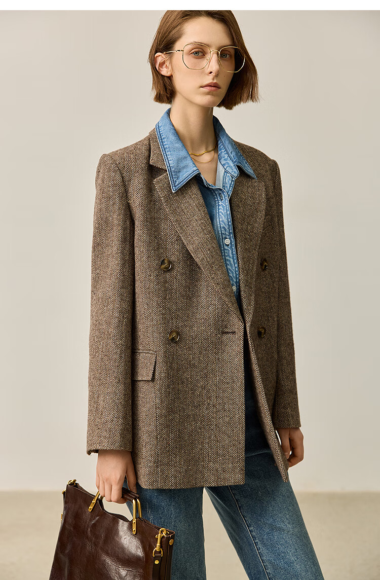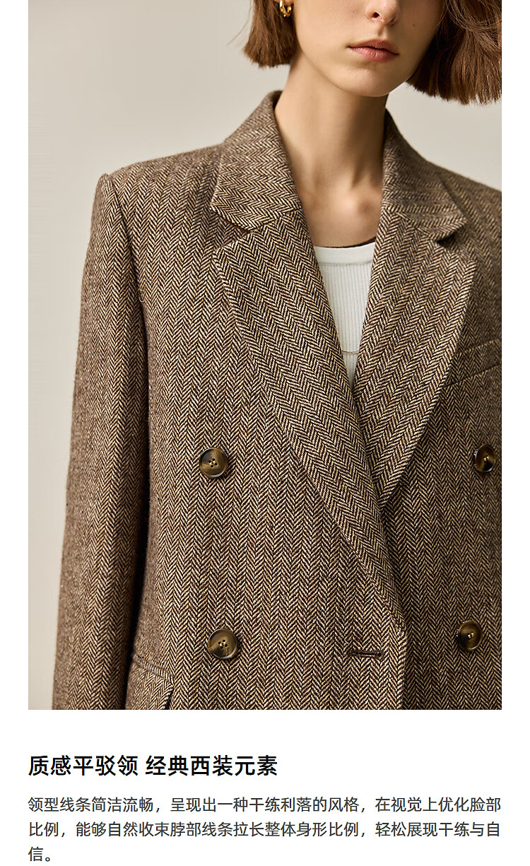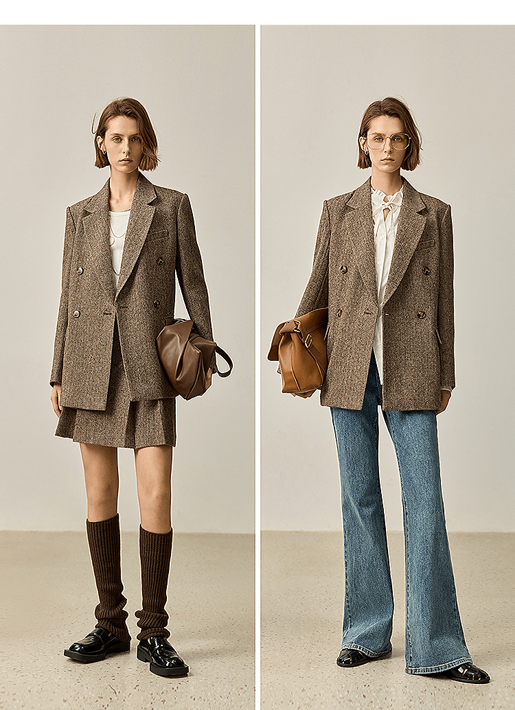 LILY2025 new autumn women's sheep wool blend old money style herringbone lapel silhouette commuter suit jacket 732 chocolate L
