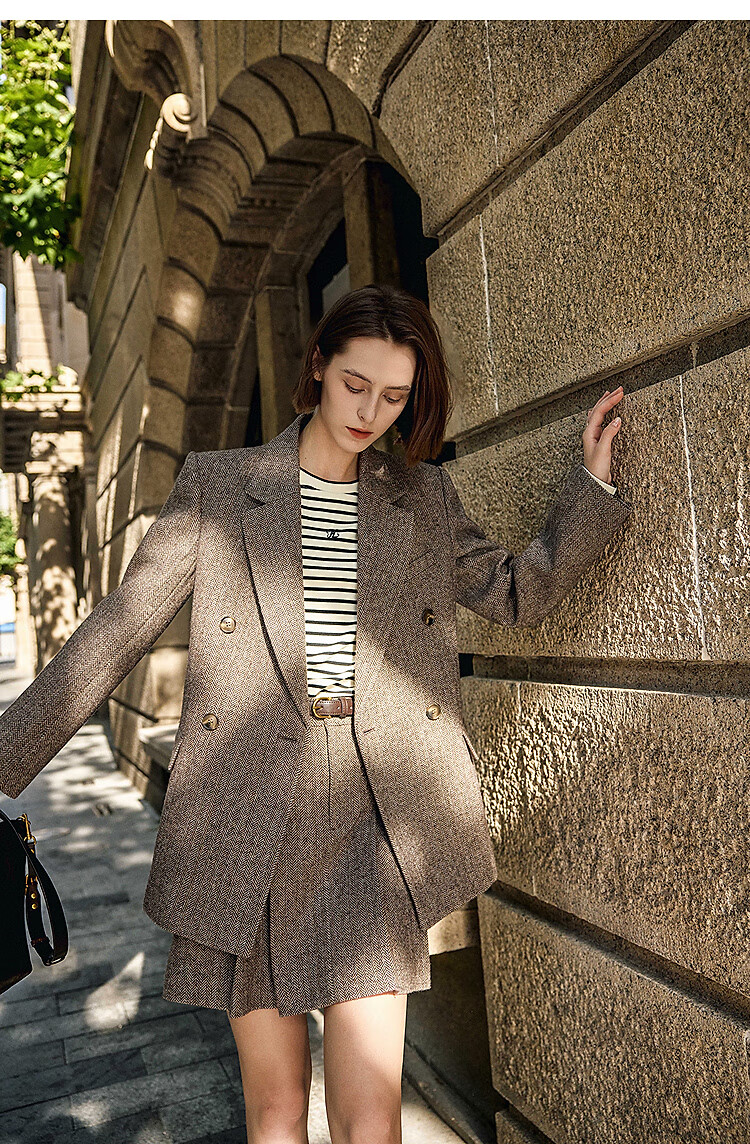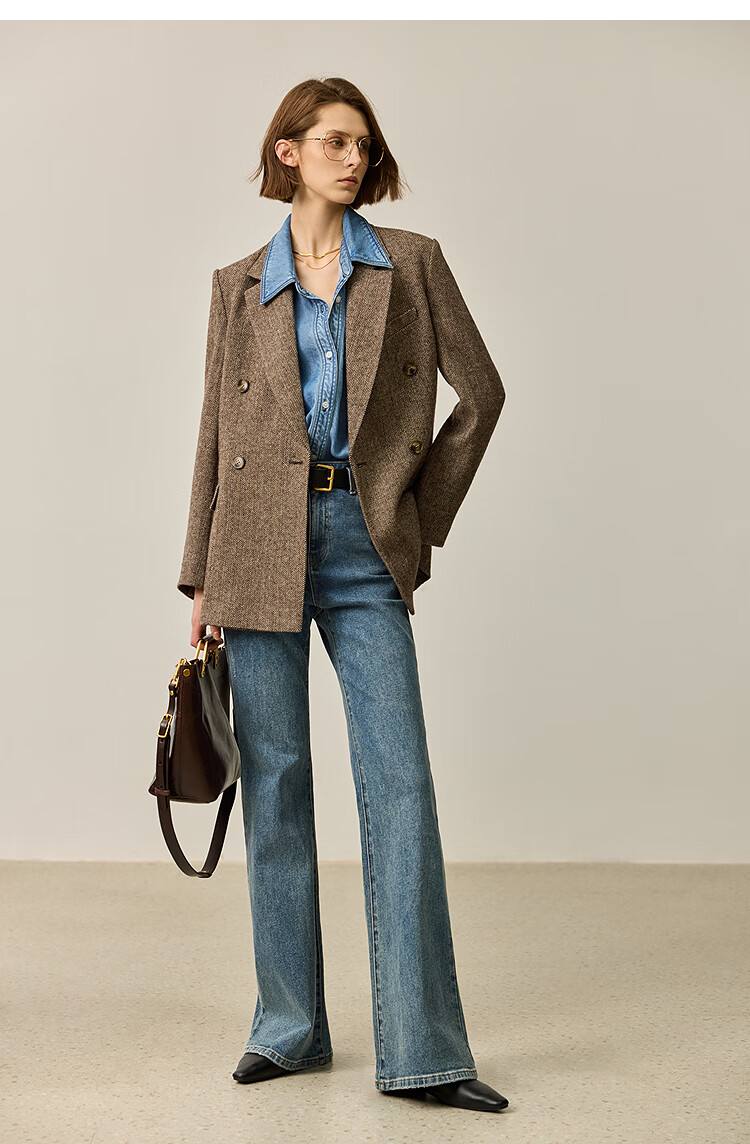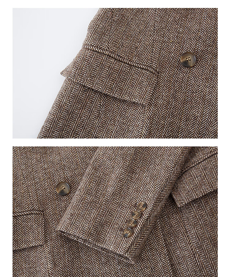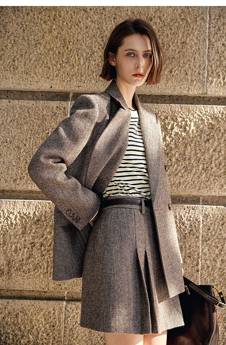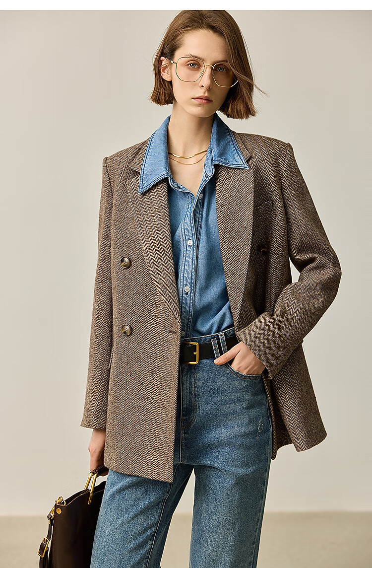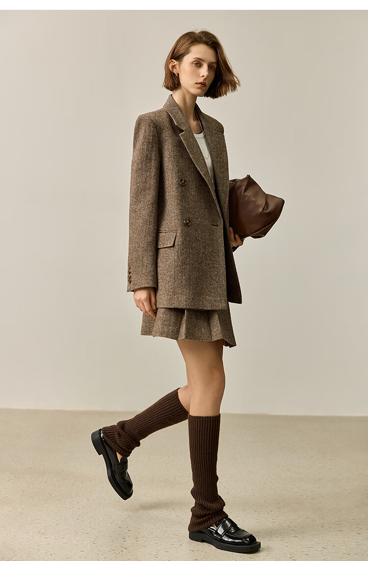 LILY2025 new autumn women's sheep wool blend old money style herringbone lapel silhouette commuter suit jacket 732 chocolate L