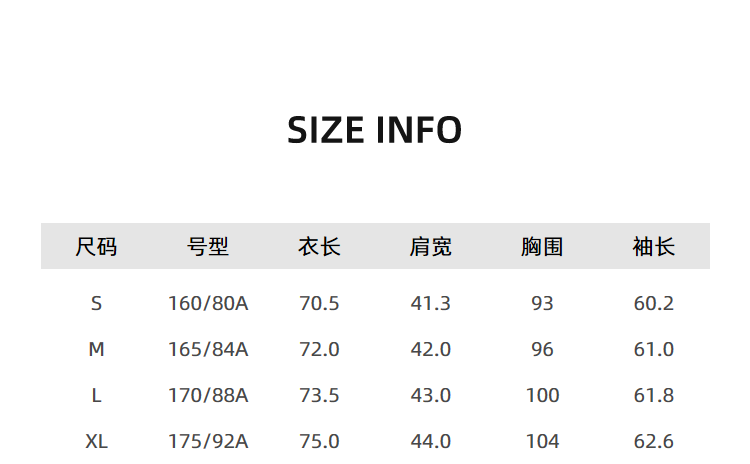 China(cm) 72-76 76-81 81-87 87-93 93-98