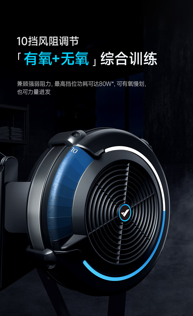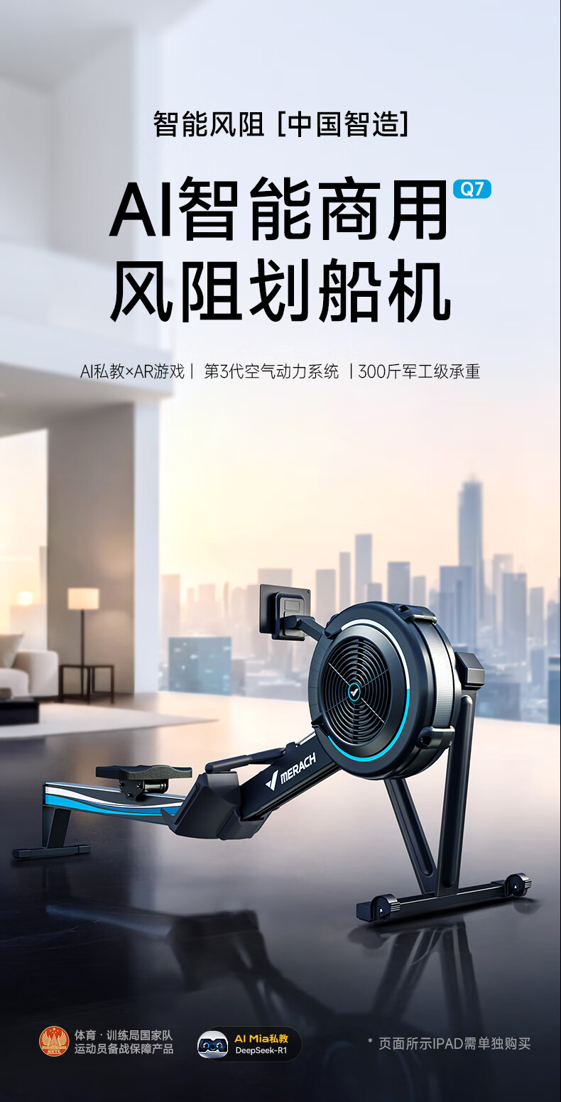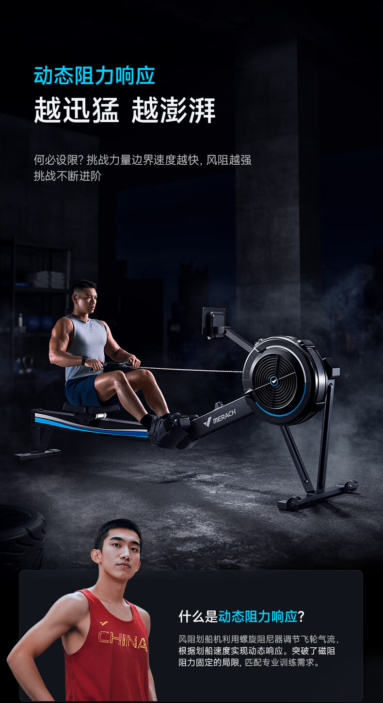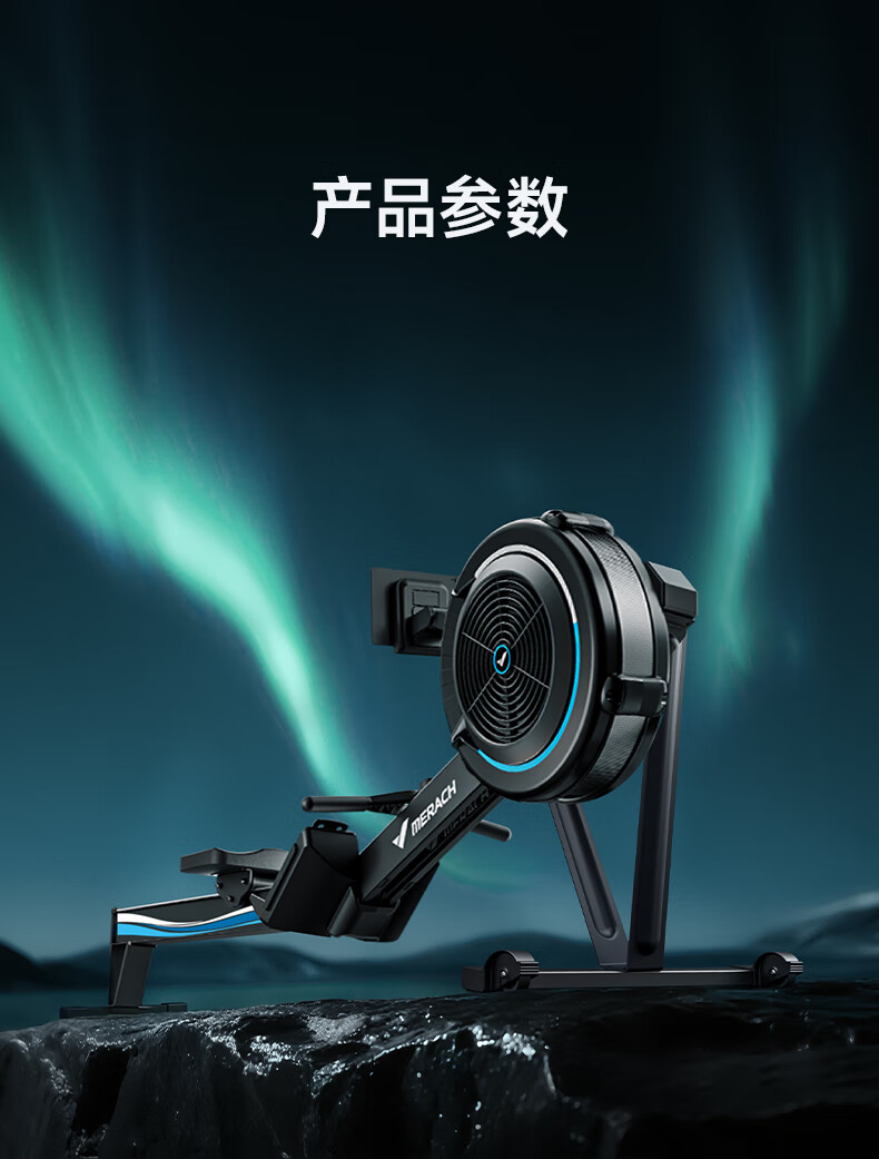 Merach (MERACH) wind resistance rowing machine home aerobic commercial grade rowing ergometer sports paddling fitness rowing black | 150KG load-bearing | fat burning live class | 32 paddles