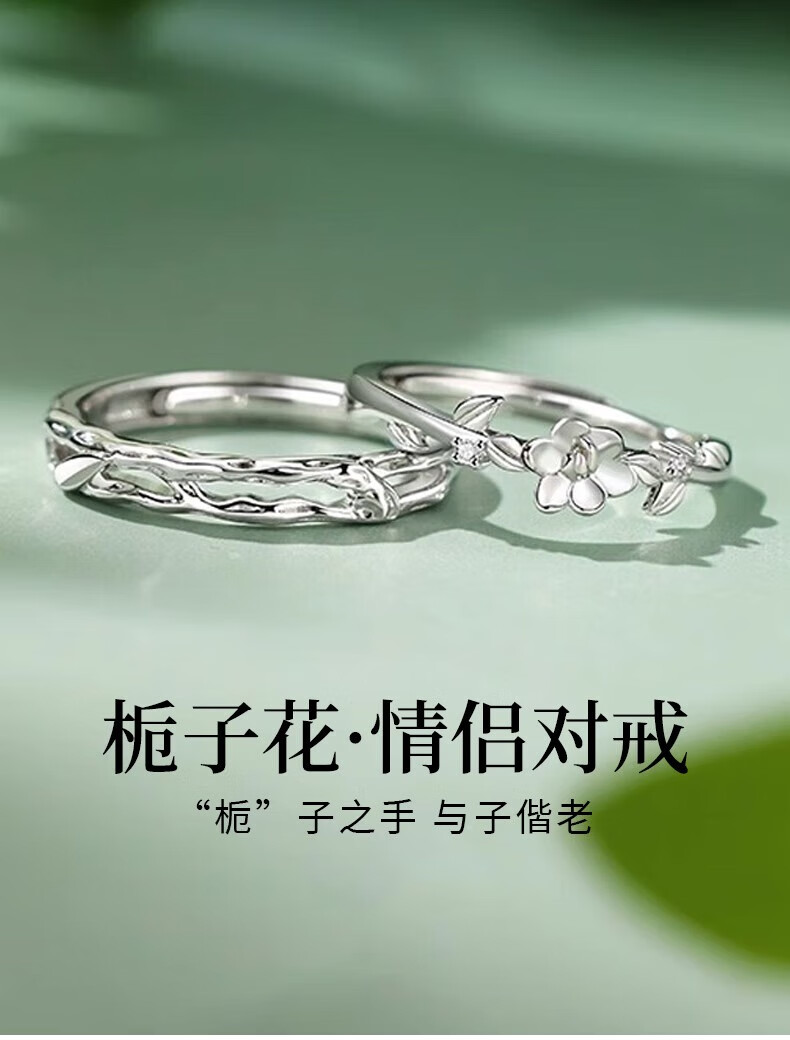 China Gold S925 Silver Gardenia Couple Ring Simple High-end Men's and Women's Pair of Rings Wedding Anniversary Gift for Girlfriend Classic Brand Gift Box *Shipping from Yakura*Same Day/Next Day Delivery